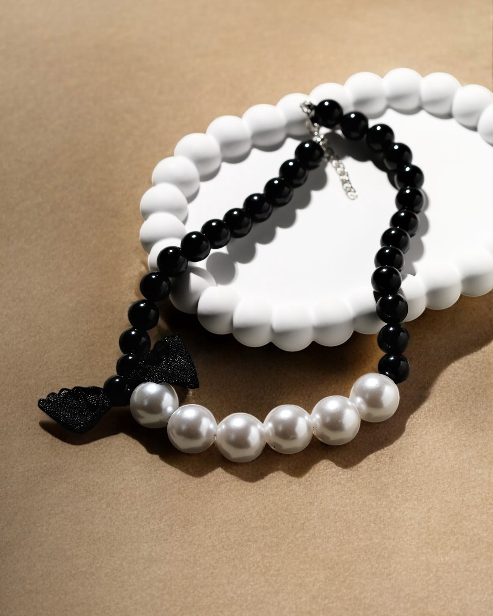 Бусы "Бантик", крупный жемчуг, шар №12-18, черно-белые, 41 см, 1.8x41x1.2 см., QF, Китай