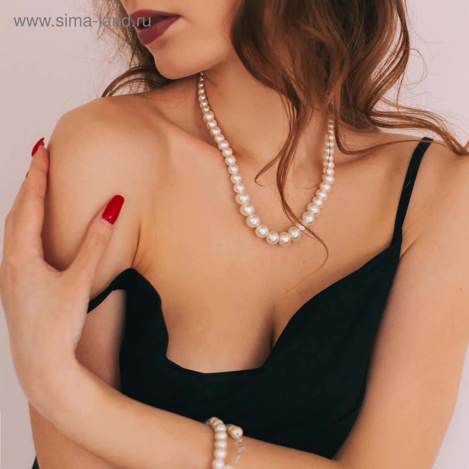 Бусы "Невеста" с жемчугом, шар №4.6.8, цвет молочный, 45 см, 0.5x45x1 см., QF, Китай