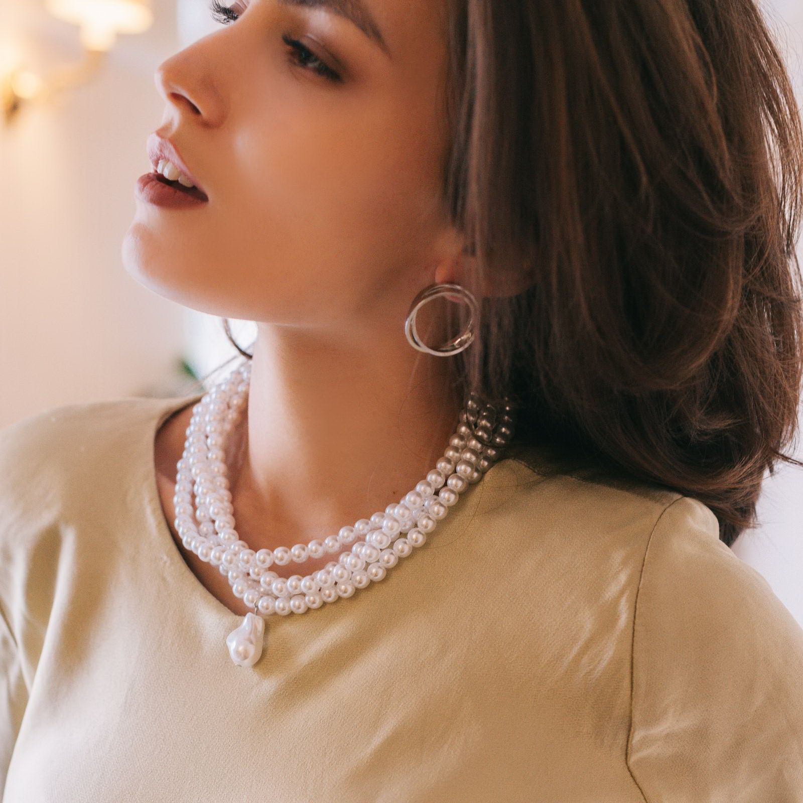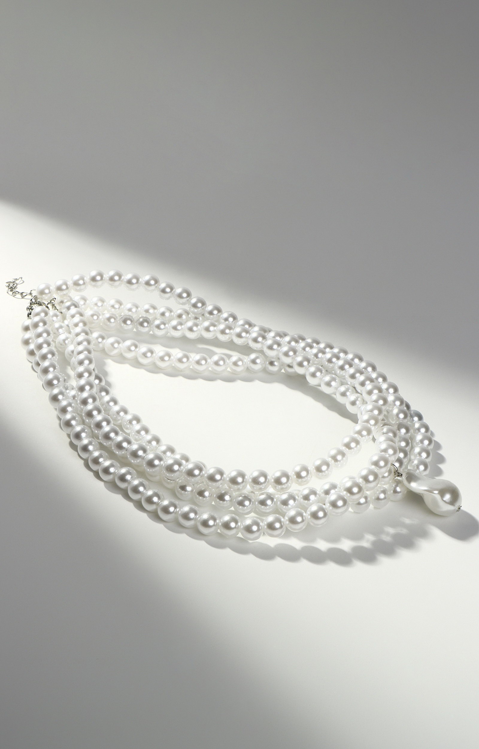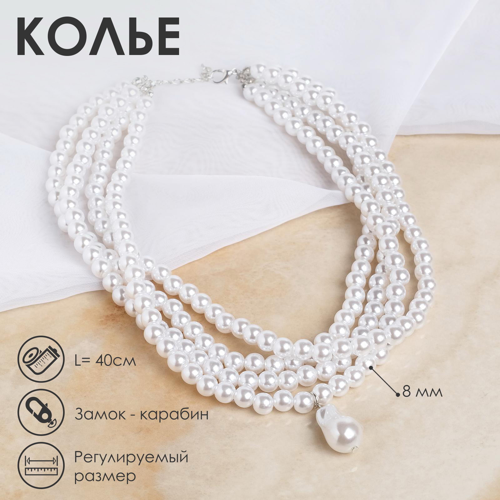 Бусы из жемчуга "Диана", 4 нити, d=0.8, 40 см, белые, 0.8x40x3 см., QF, Китай