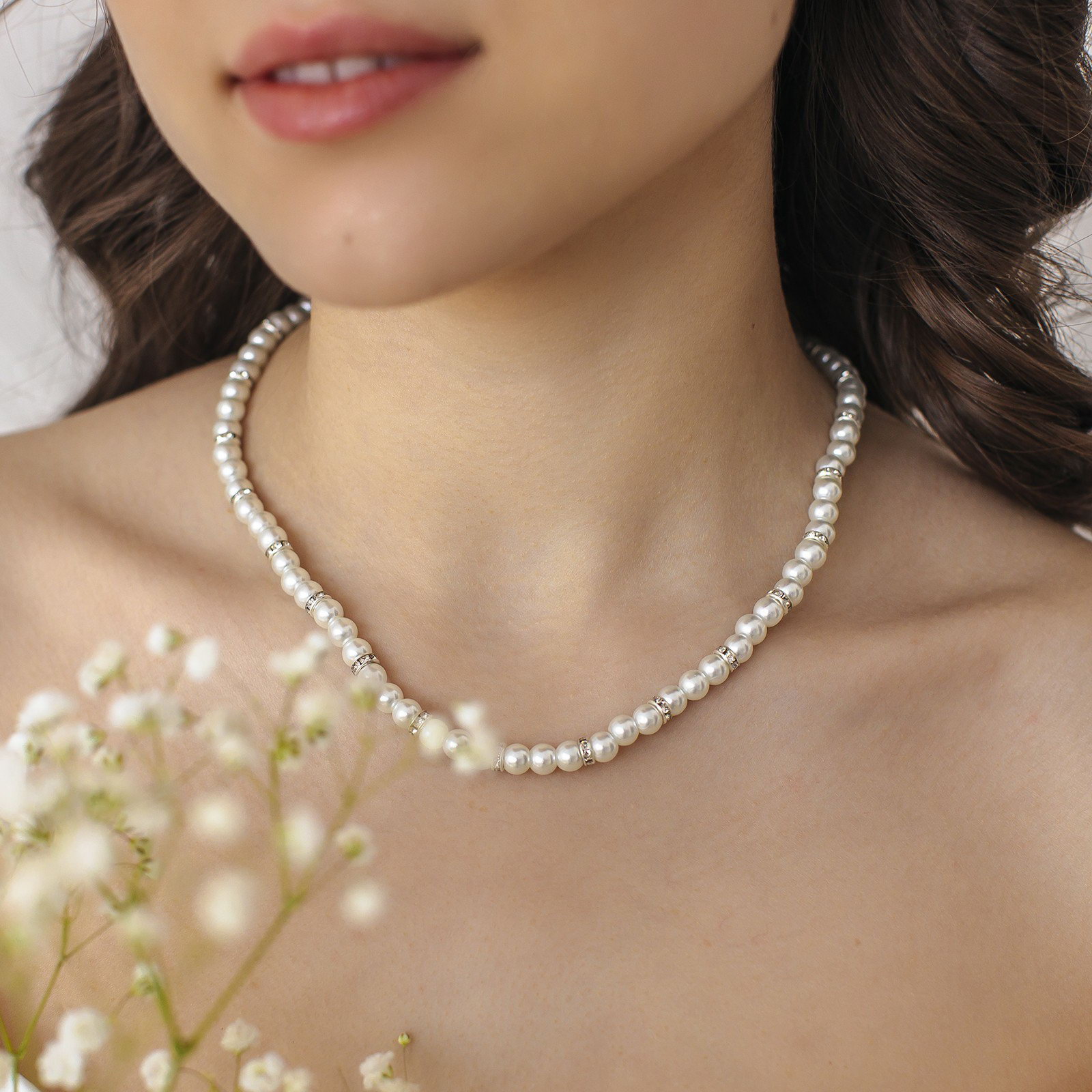 Бусы "Невеста" с жемчугом, со стразами, шар №4, белые, 43.5 см, 0.5x43.5x0.5 см., QF, Китай