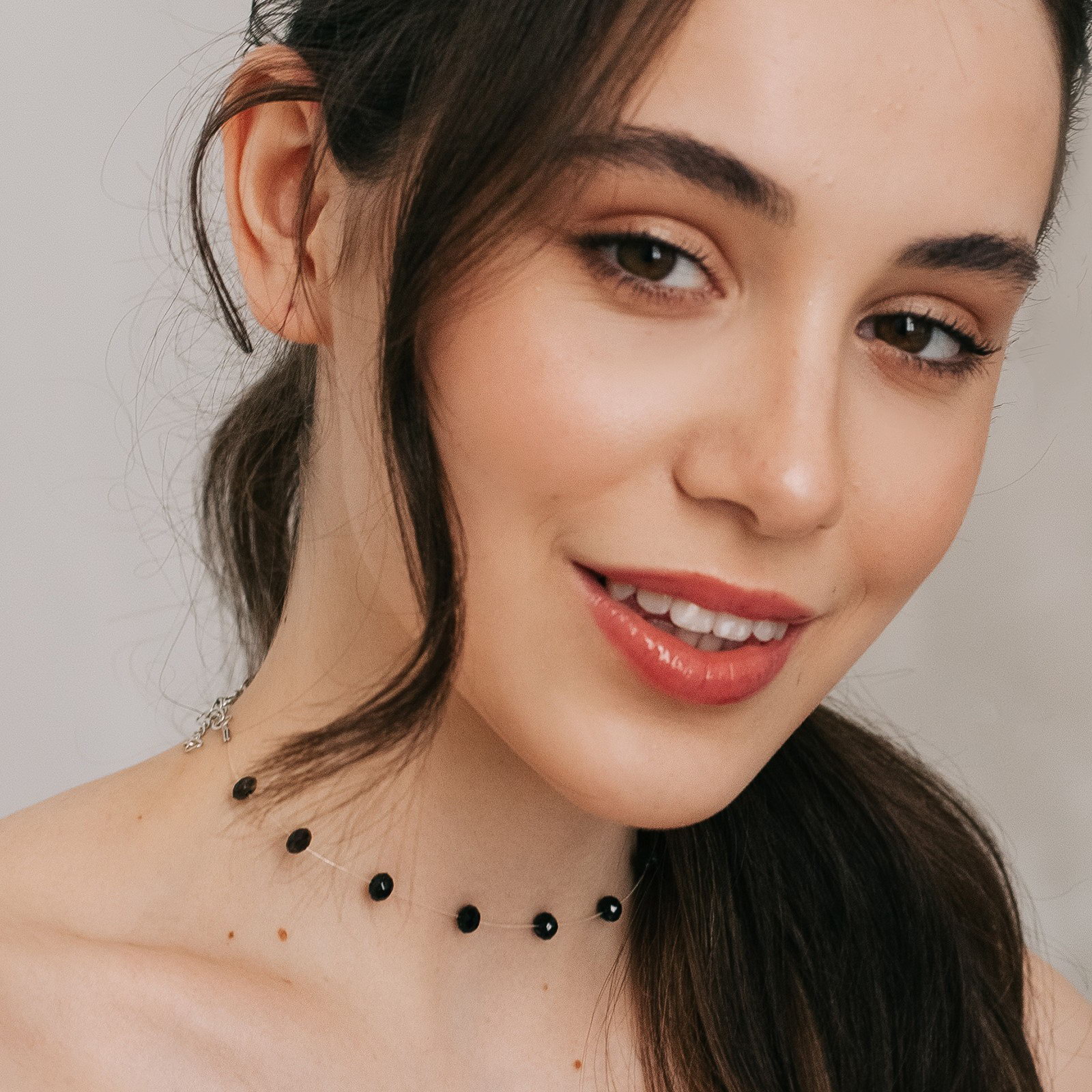 Бусы на леске "Утончённость" огранённые бусины, шар №4, цвет чёрный, 29 см, 0.4x29x0.4 см., QF, Китай