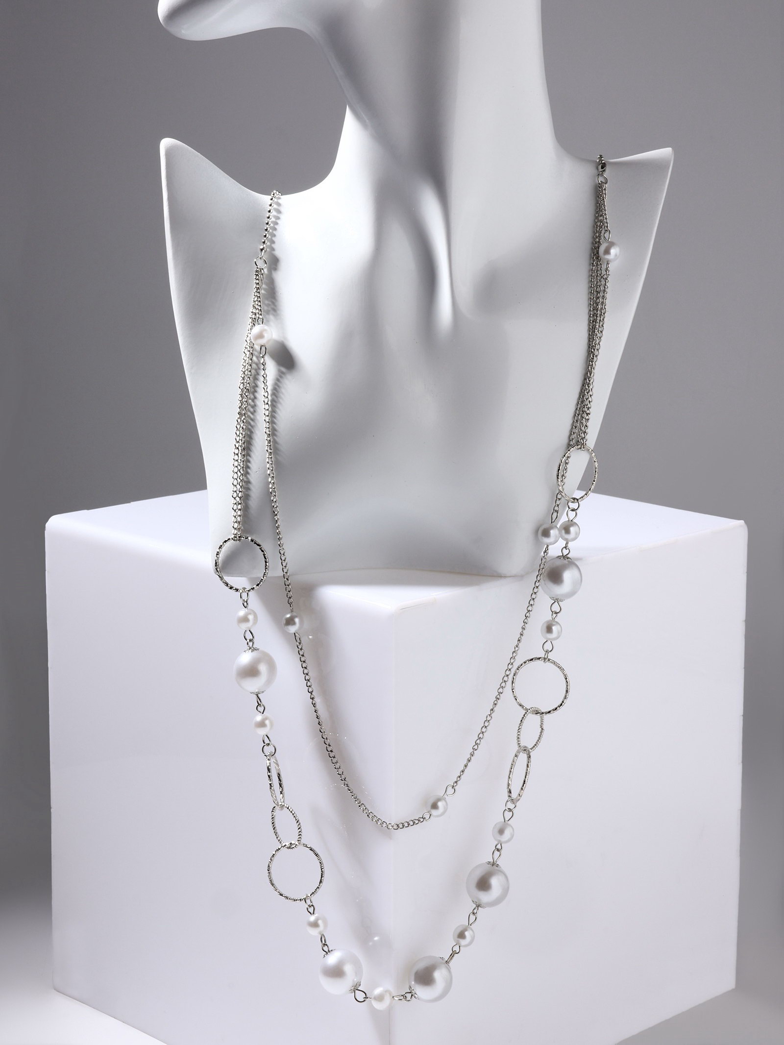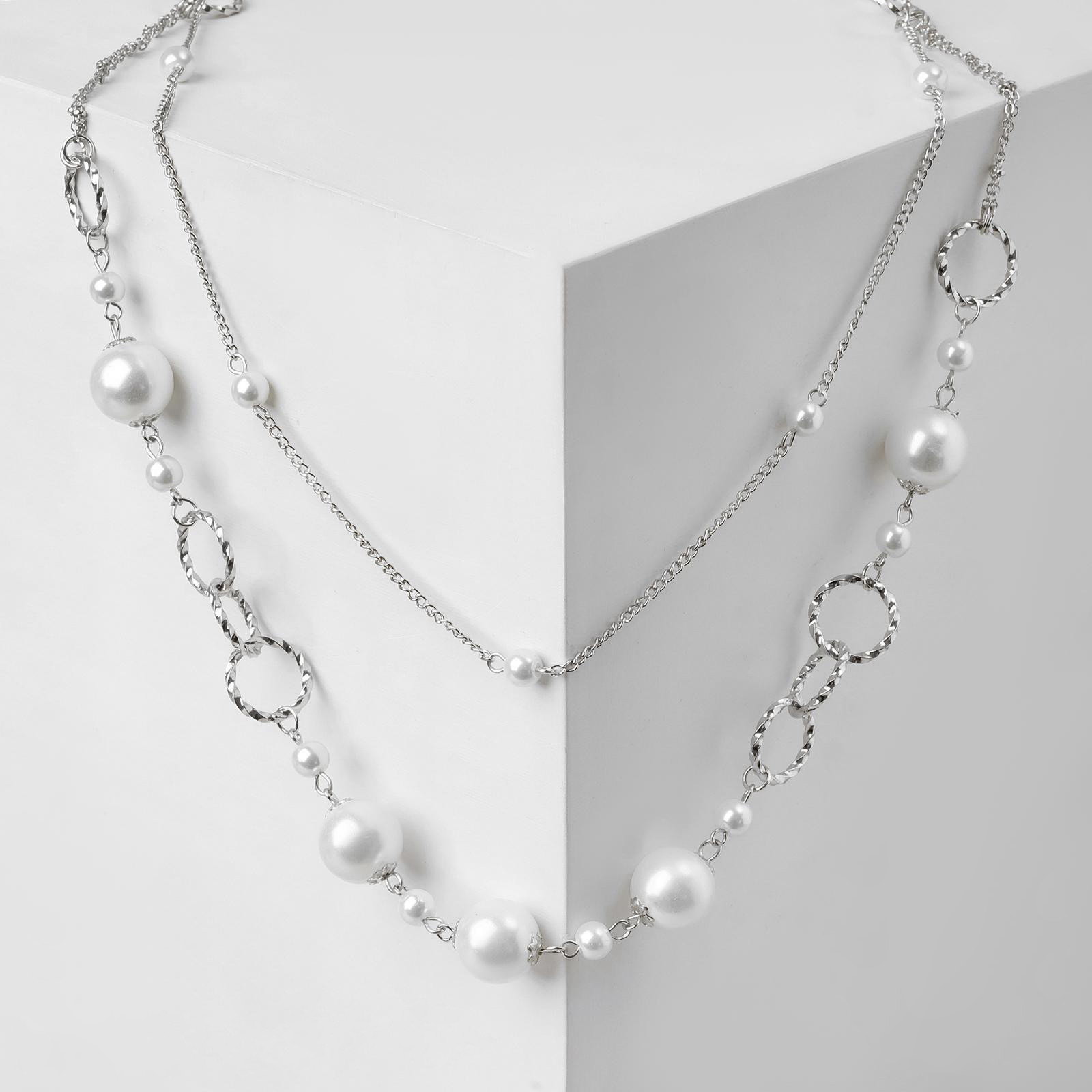 Бусы "Жемчужный мир" кольца с бусинами, белые в серебре, 90 см, 1.5x90x1.5 см., QF, Китай