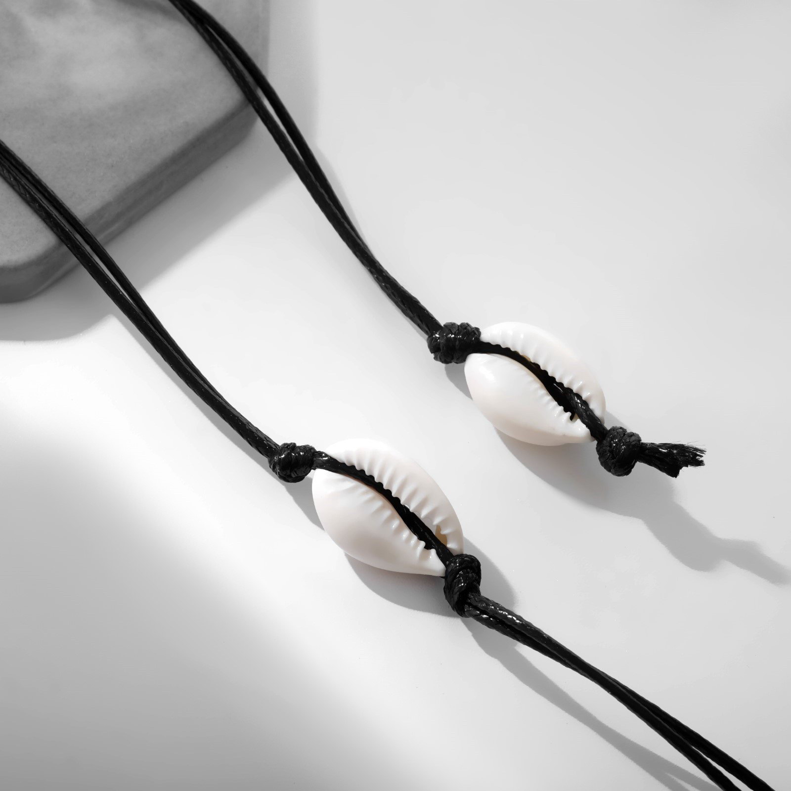 Чокер из ракушек "Морской", чёрно-бежевый, 75 см, 1.6x75x1 см., QF, Китай