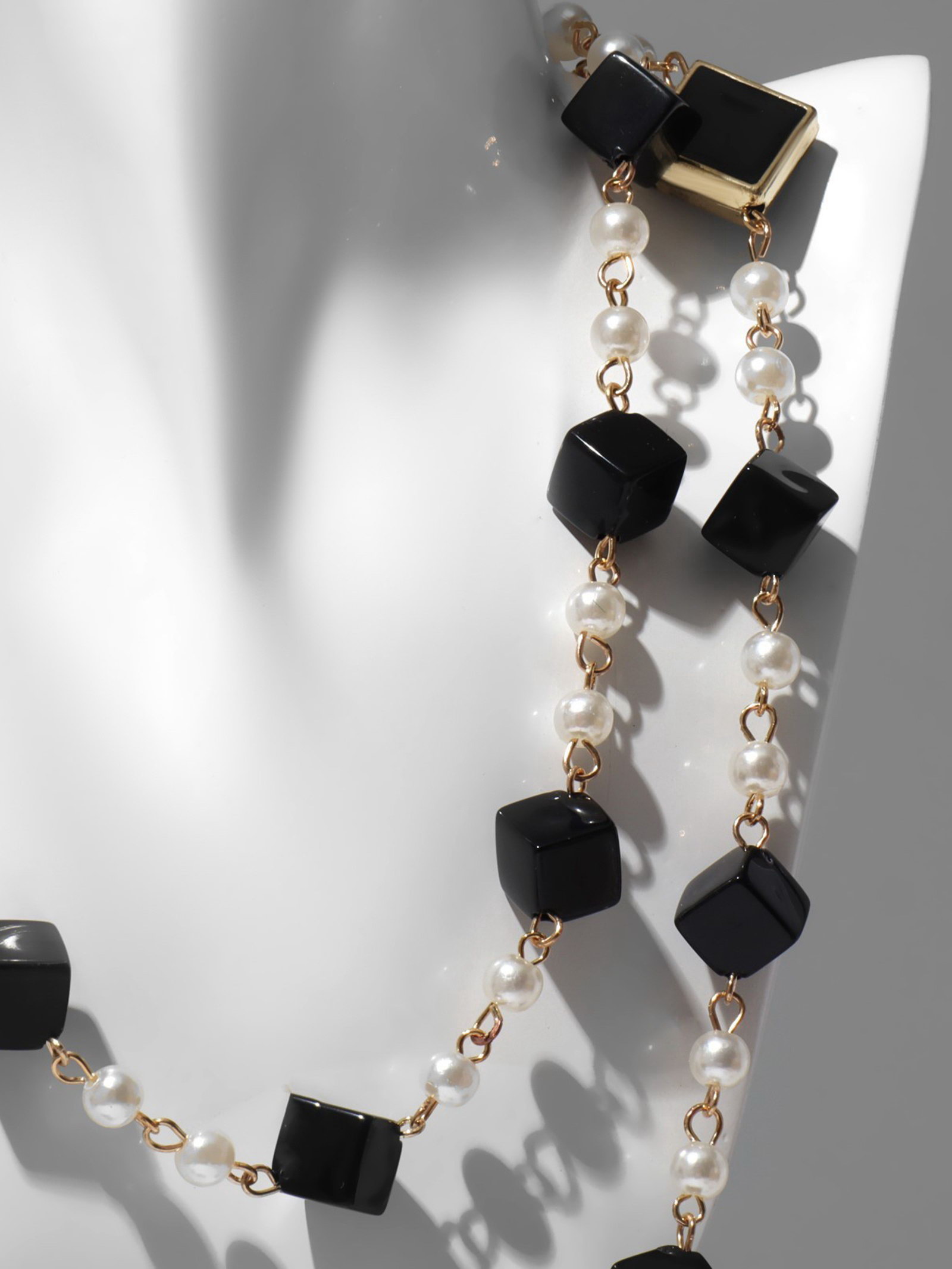 Бусы с жемчугом "Галантность", 90-110 см, чёрно-белые в золоте, 1.8x90x0.5 см., QF, Китай