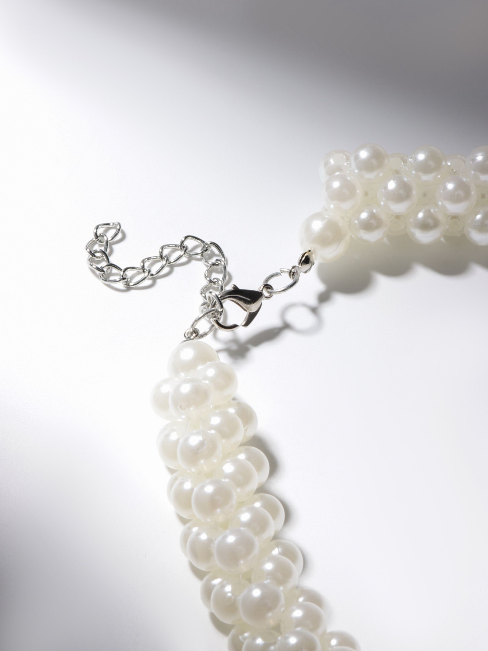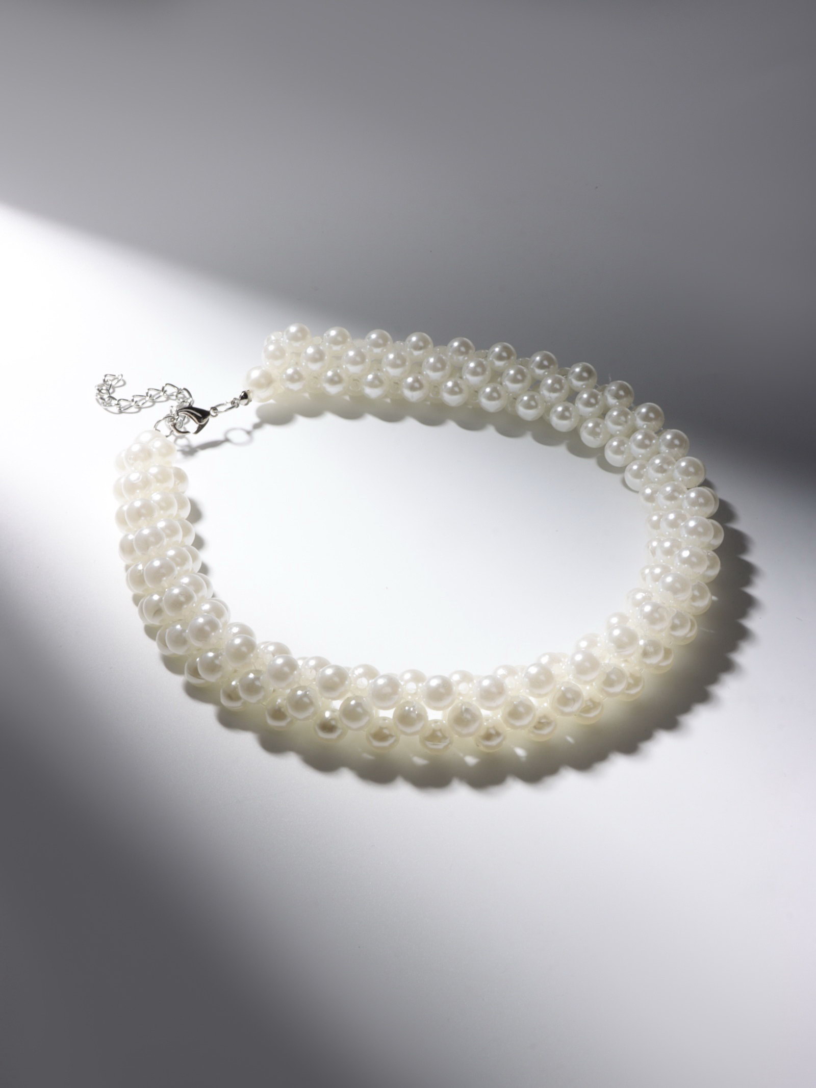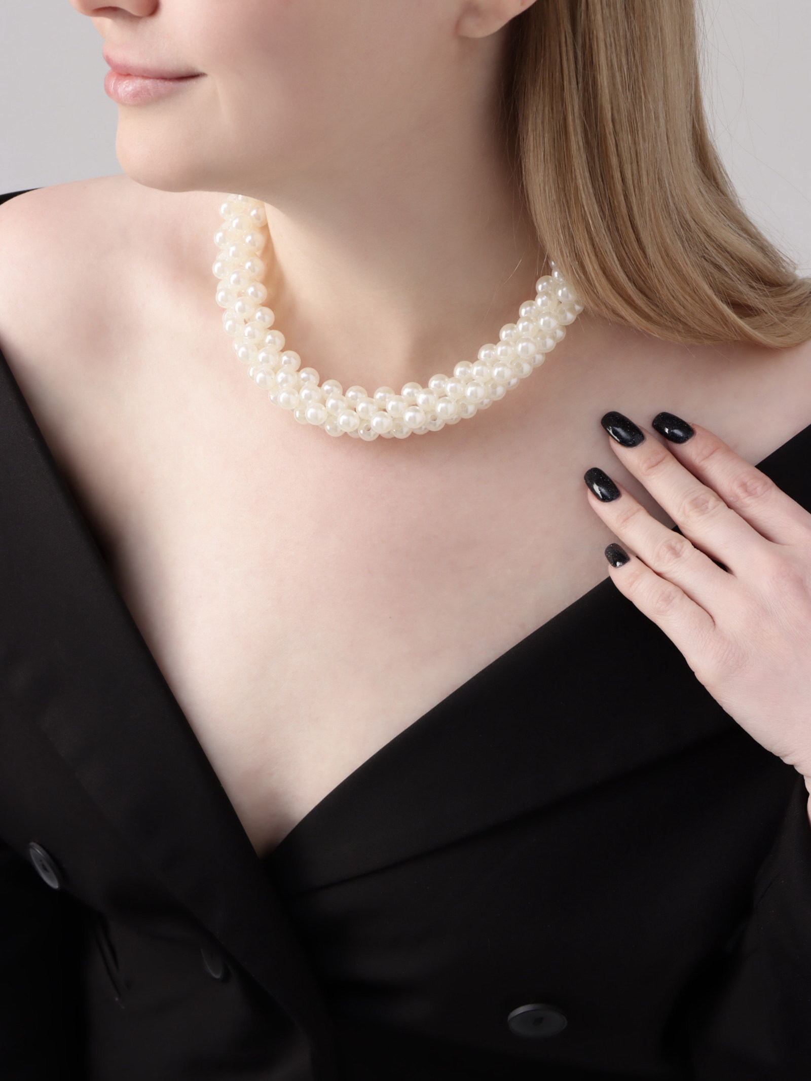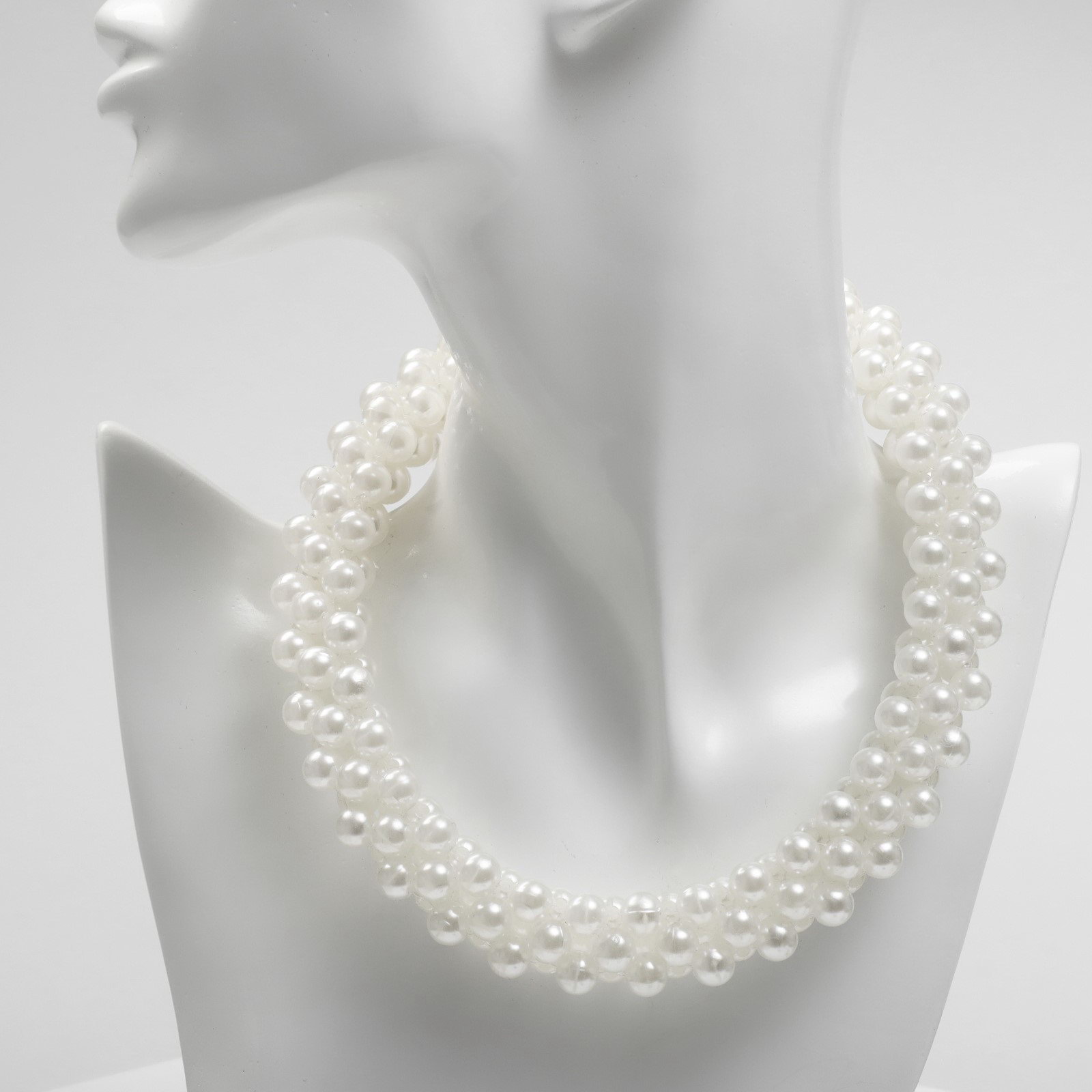 Бусы "Жгут" с жемчугом, плотный, бусин №8, цвет молочный в серебре, 40 см, 1.4x46.6x1.4 см., QF, Китай