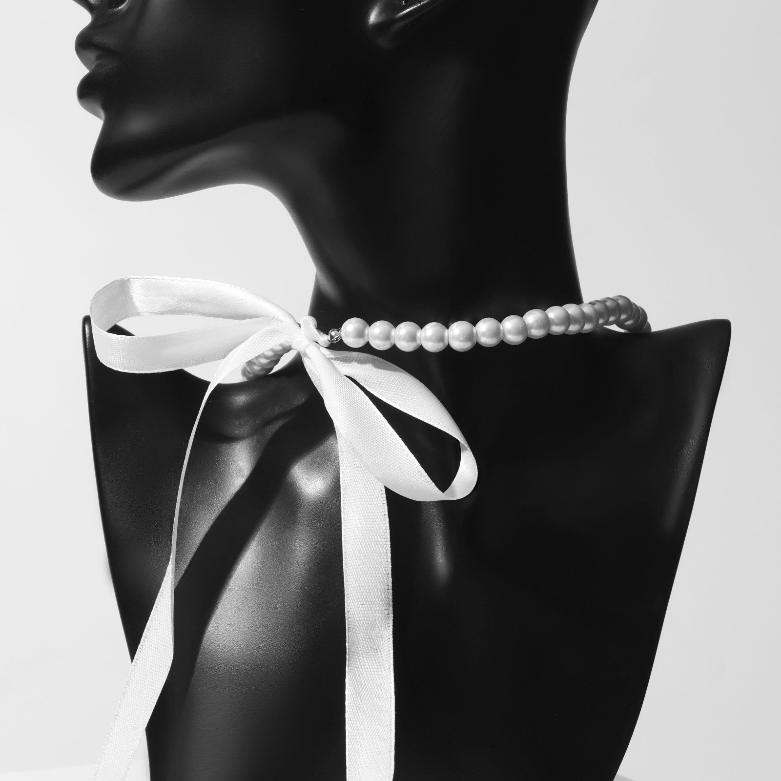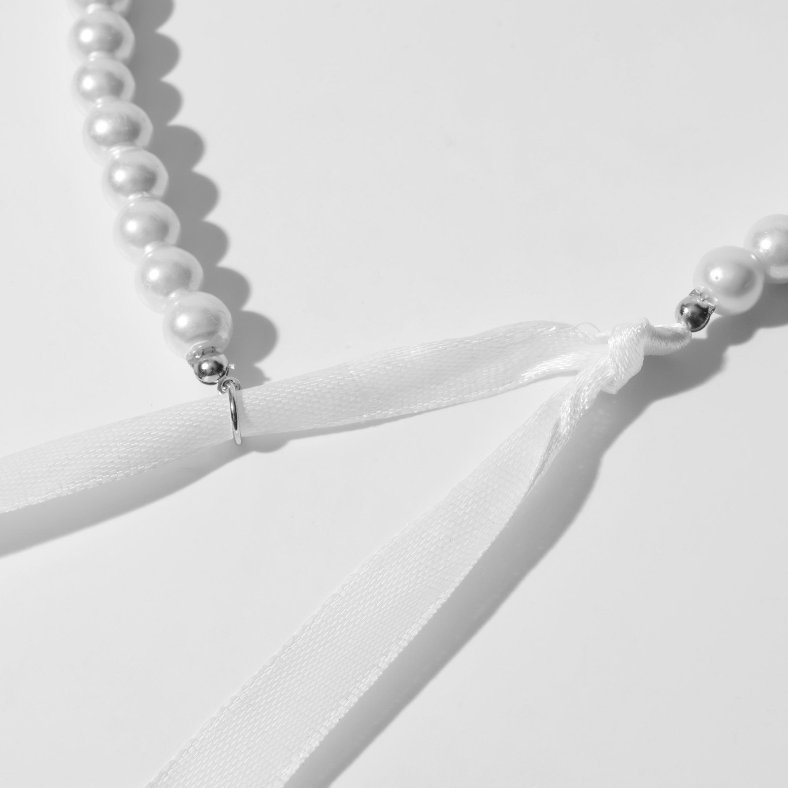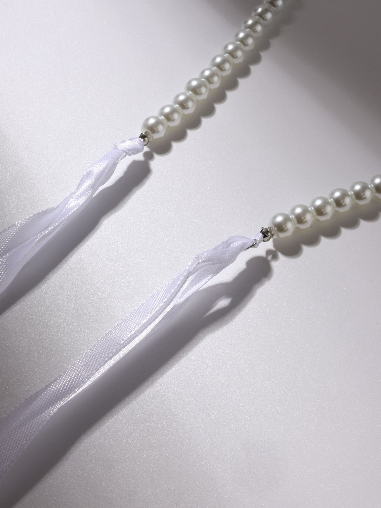 Бусы "Бантик" жемчужины с завязкой, белые, 40 см, 1.2x40x1.2 см., QF, Китай