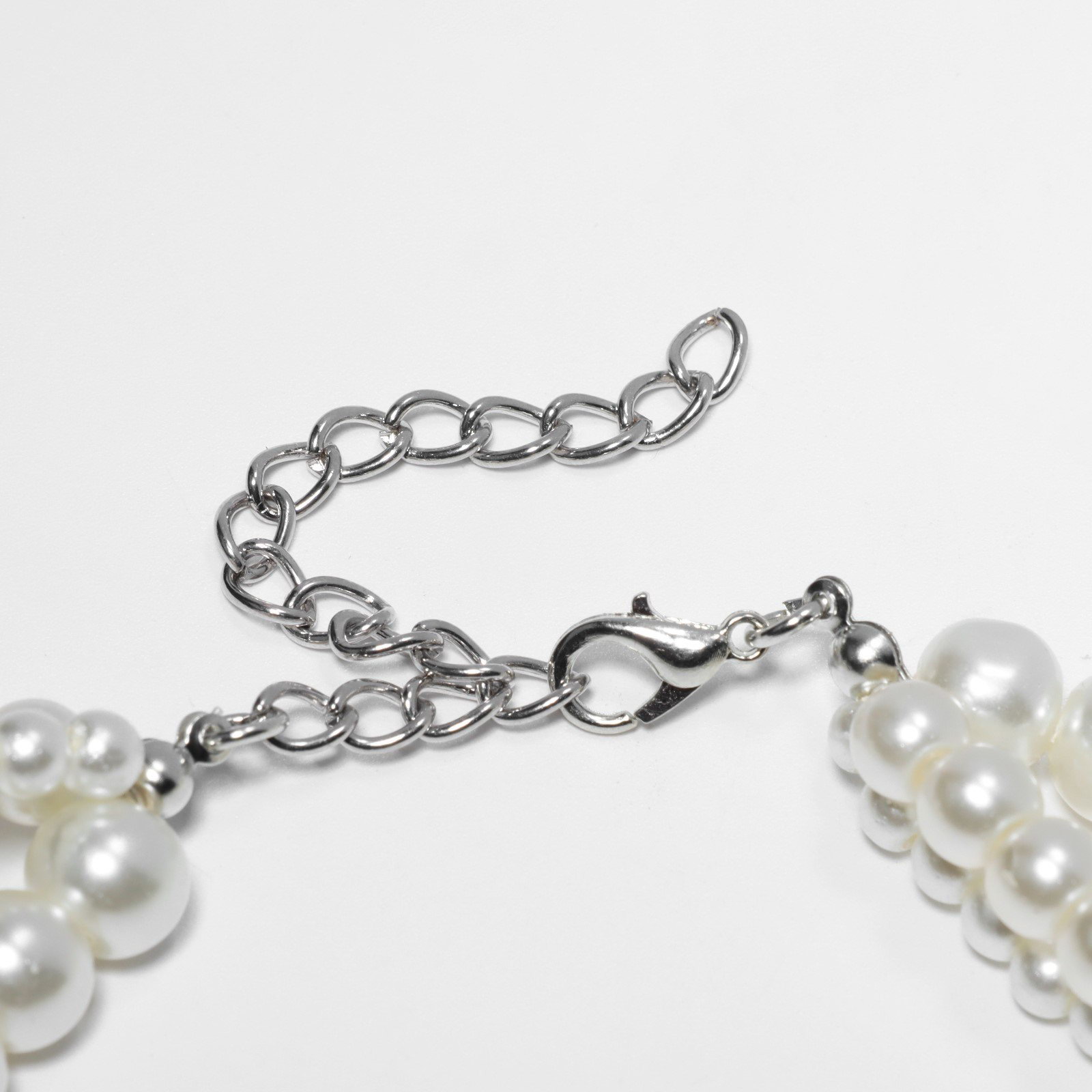Бусы "Жгут" с жемчугом, 3 нити, бусины №4, 6, 8, цвет молочный в серебре, 38 см, 1.2x38x1 см., QF, Китай