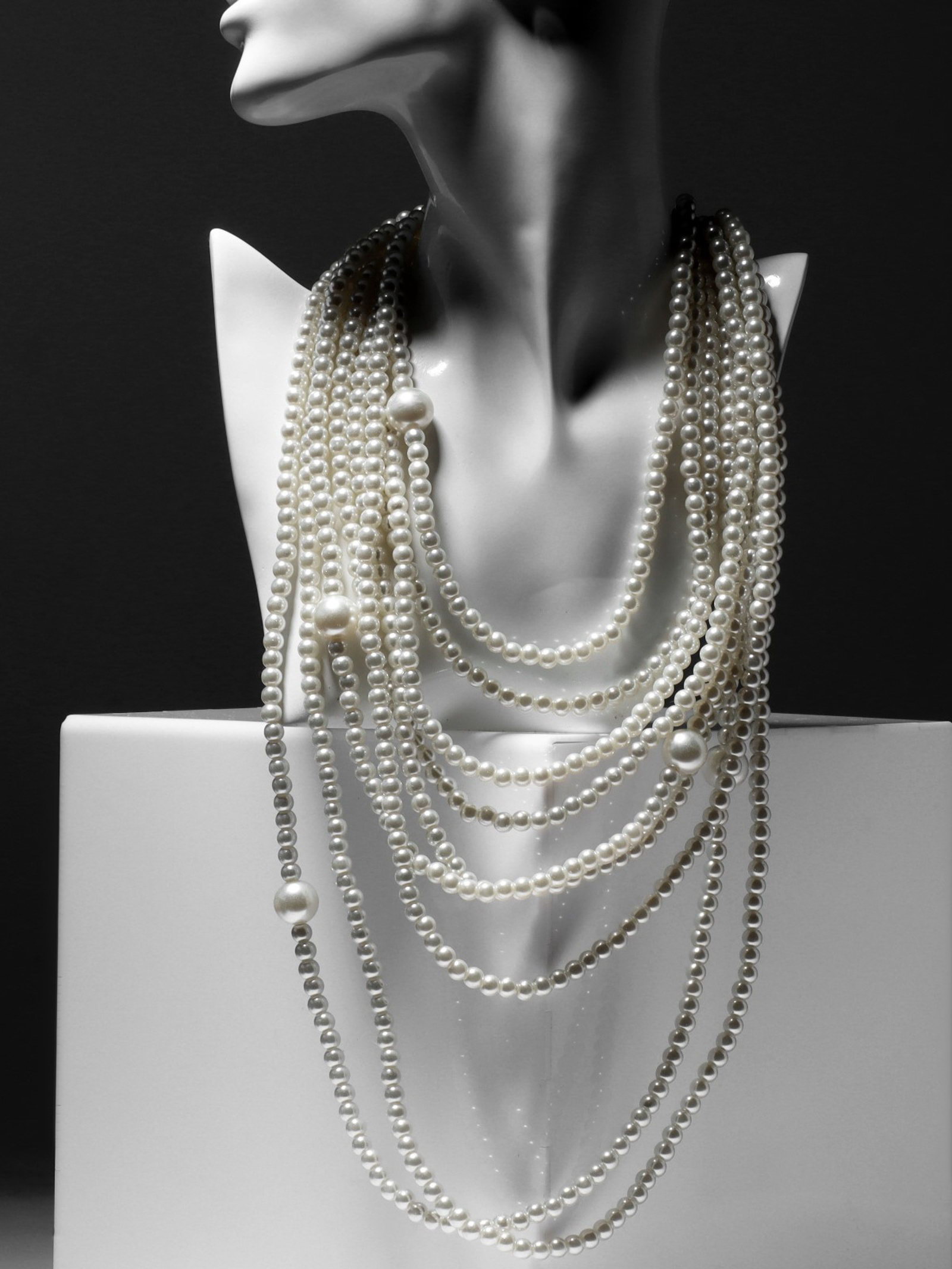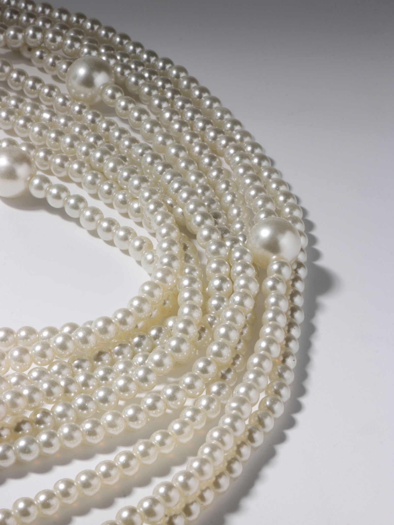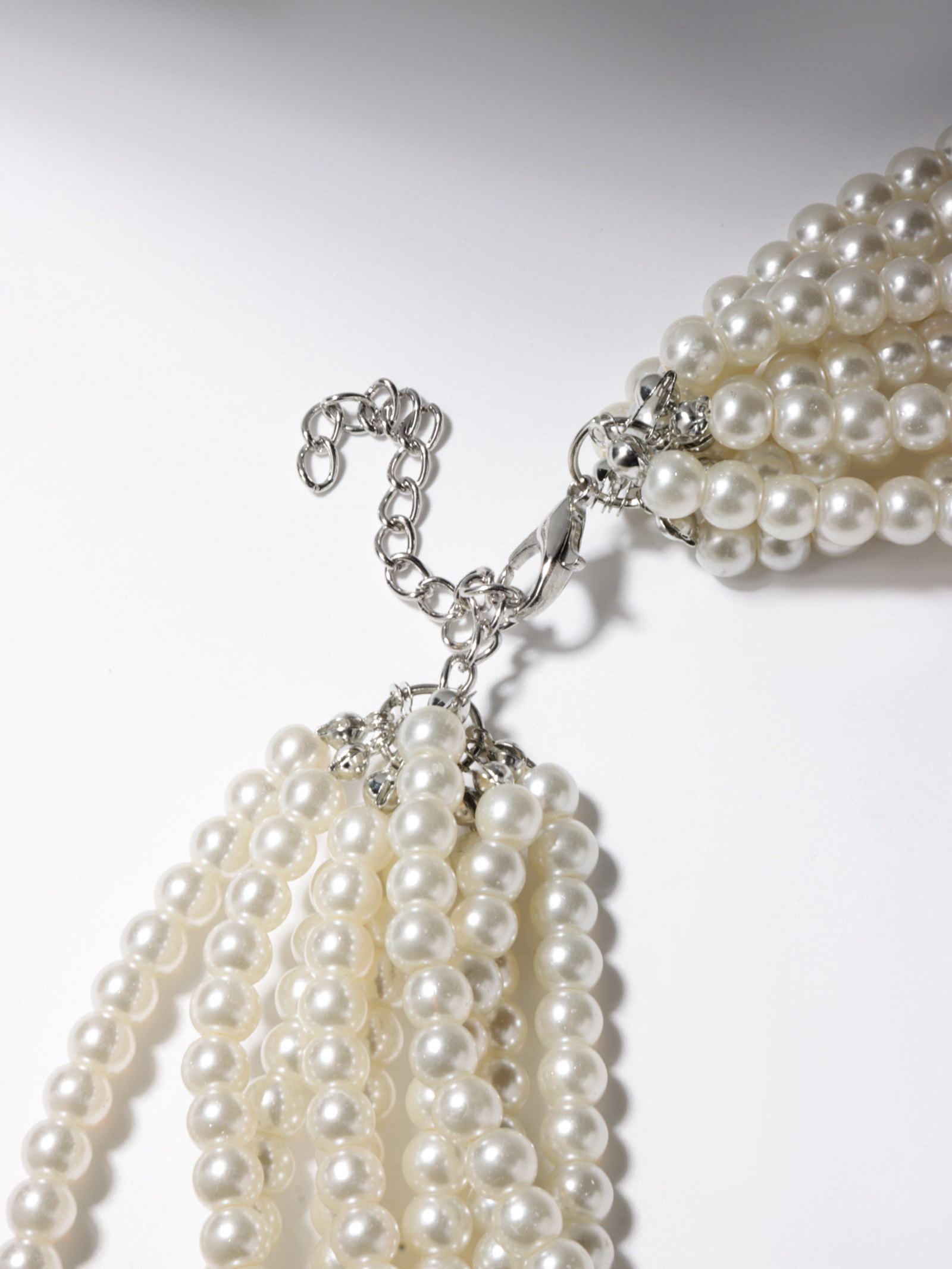 Бусы "Жемчуг" многоярусный 9 нитей, бусины №6, 14, цвет молочный в серебре, 70 см, 1.4x70x1.4 см., QF, Китай