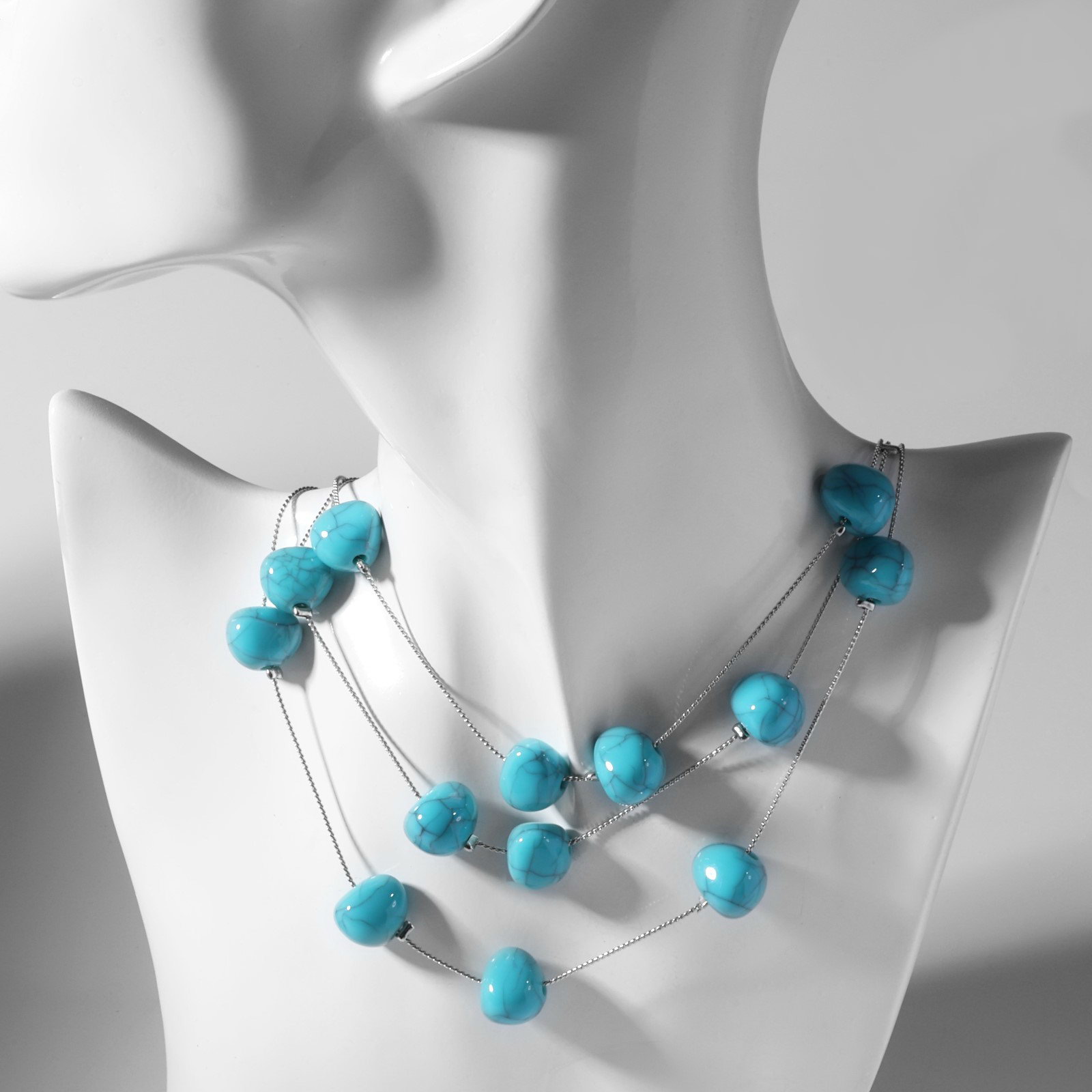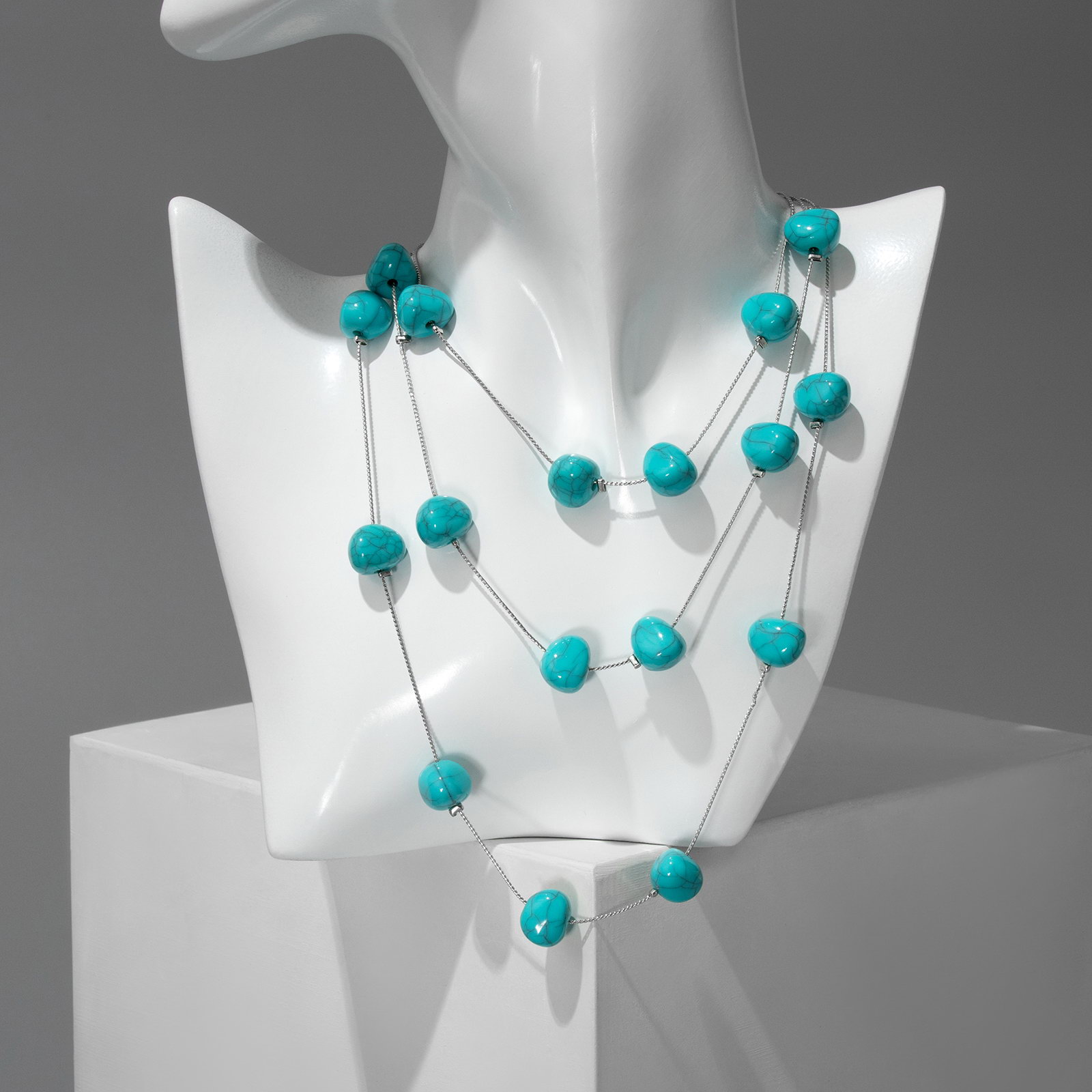 Бусы "Натурель" стиль, под бирюзу, голубые в серебре, 140 см, 1.2x140x1.2 см., QF, Китай
