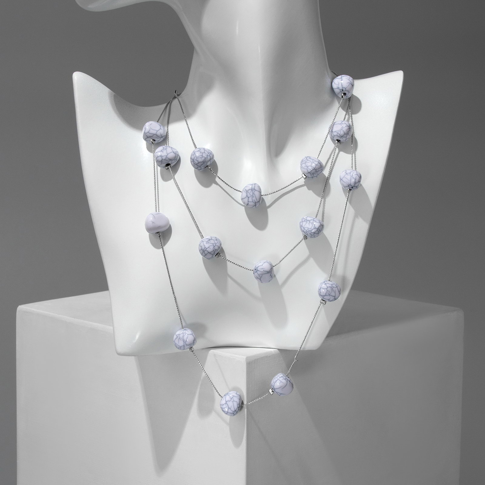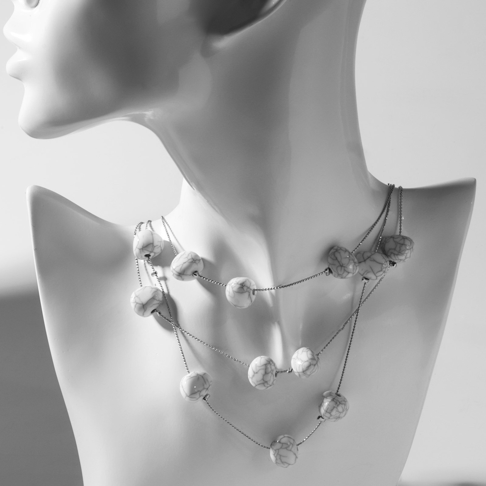 Бусы "Натурель" стиль, под Кахолонг, белые в серебре, 140 см, 1.2x140x1.2 см., QF, Китай