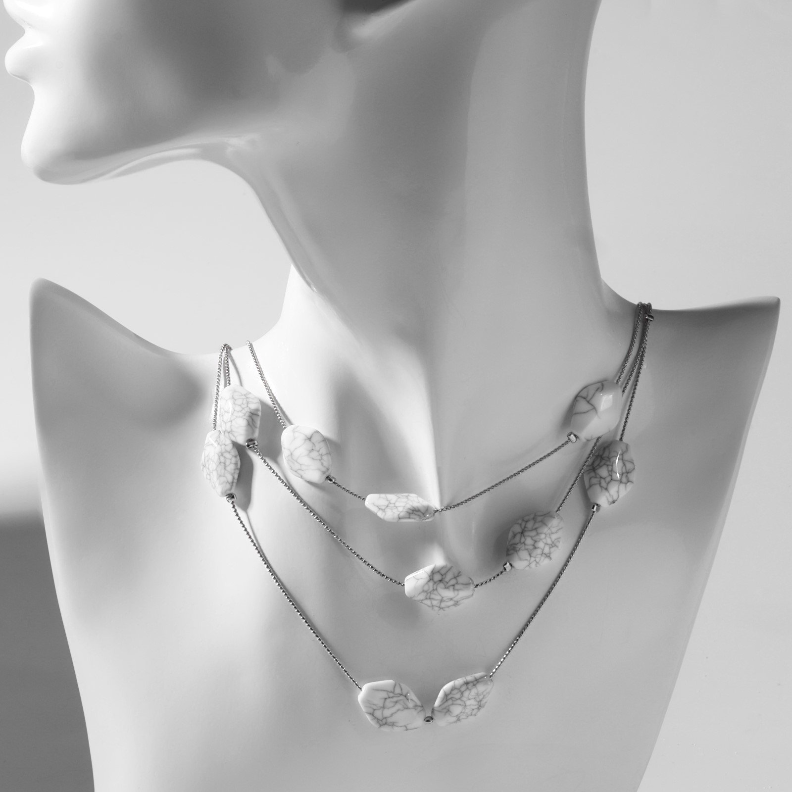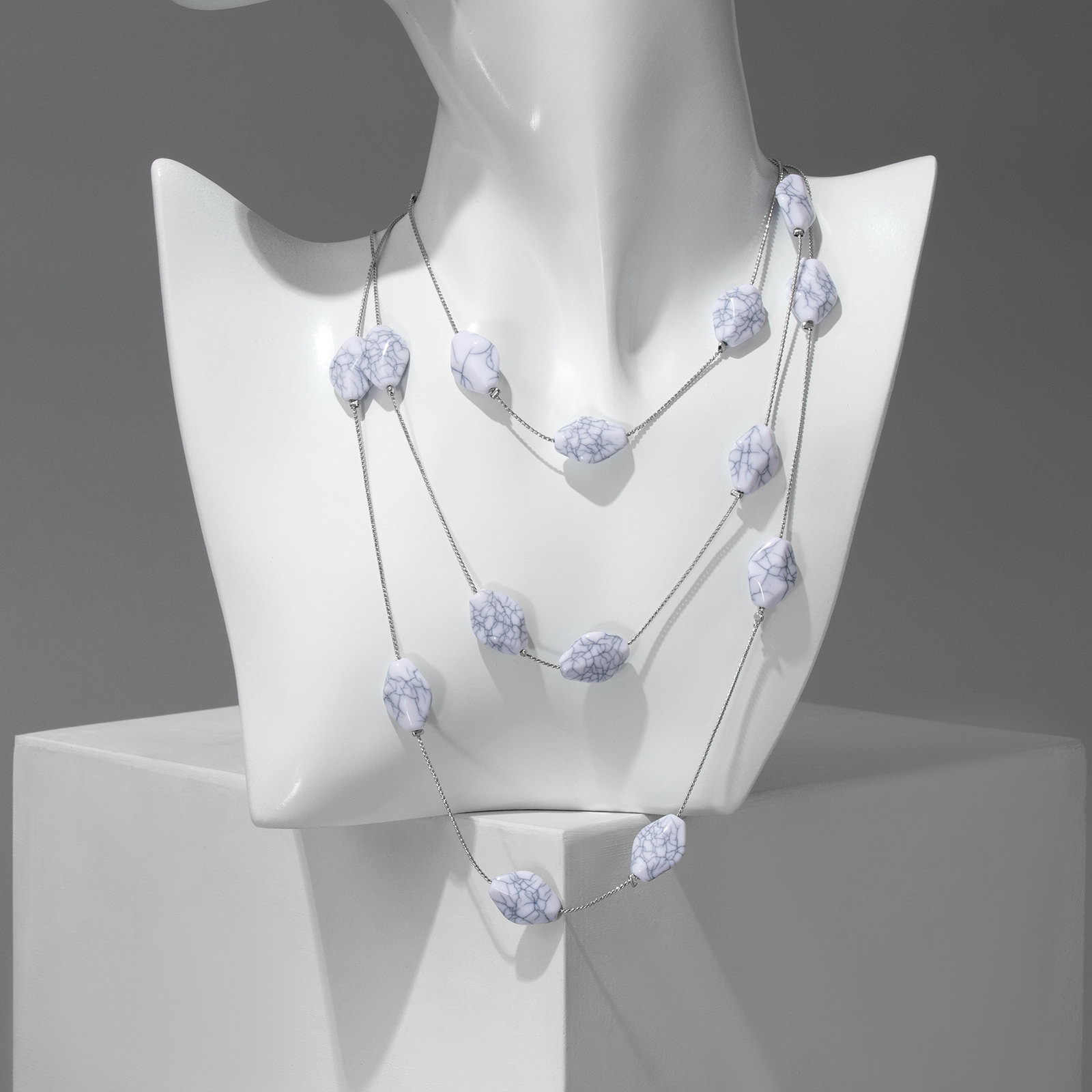 Бусы "Натурель" настроение, под Кахолонг, белые в серебре, 140 см, 1.5x140x1 см., QF, Китай