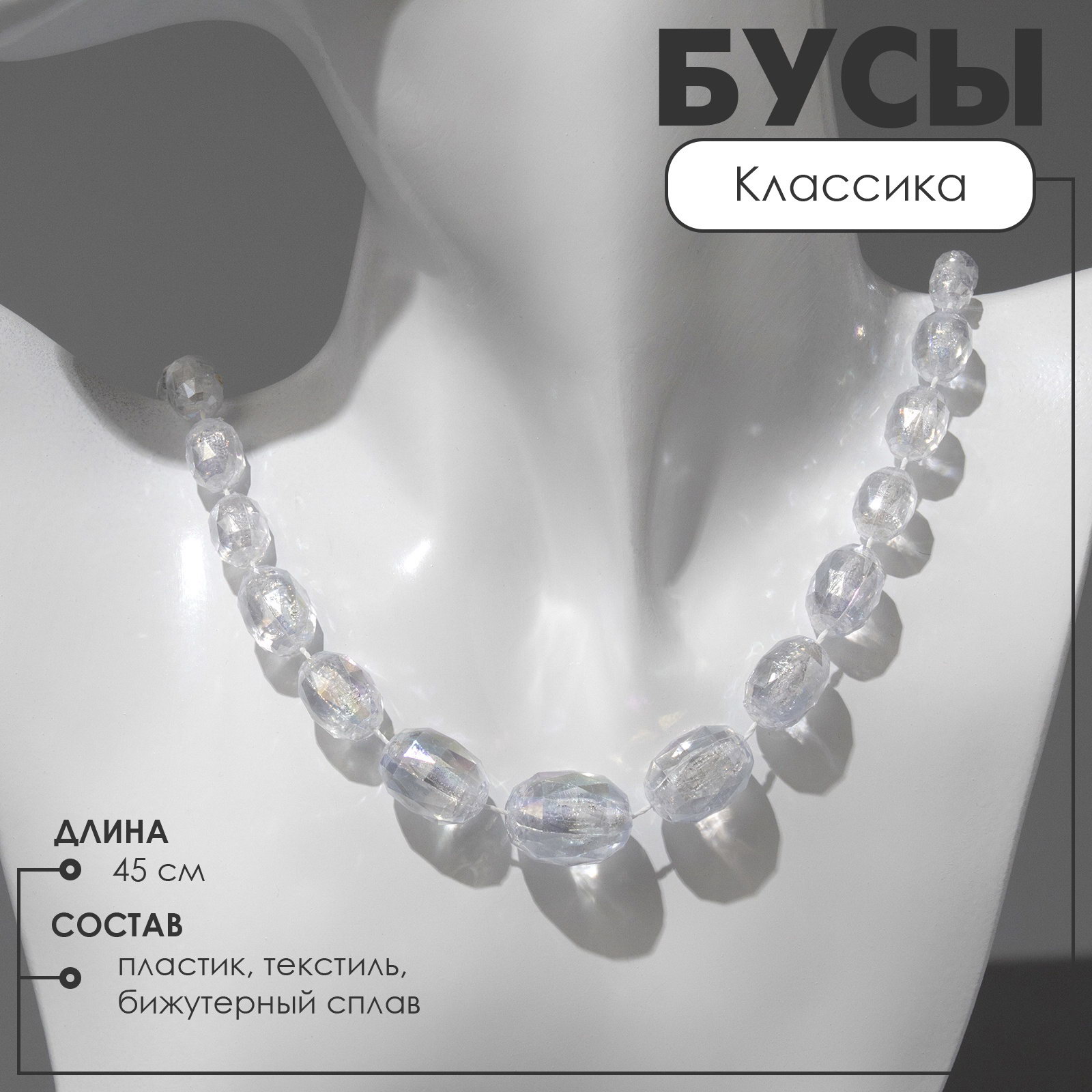 Бусы "Классика" овалы на увеличение, радужно-белые, 45 см, 1.5x45x1.5 см., QF, Китай