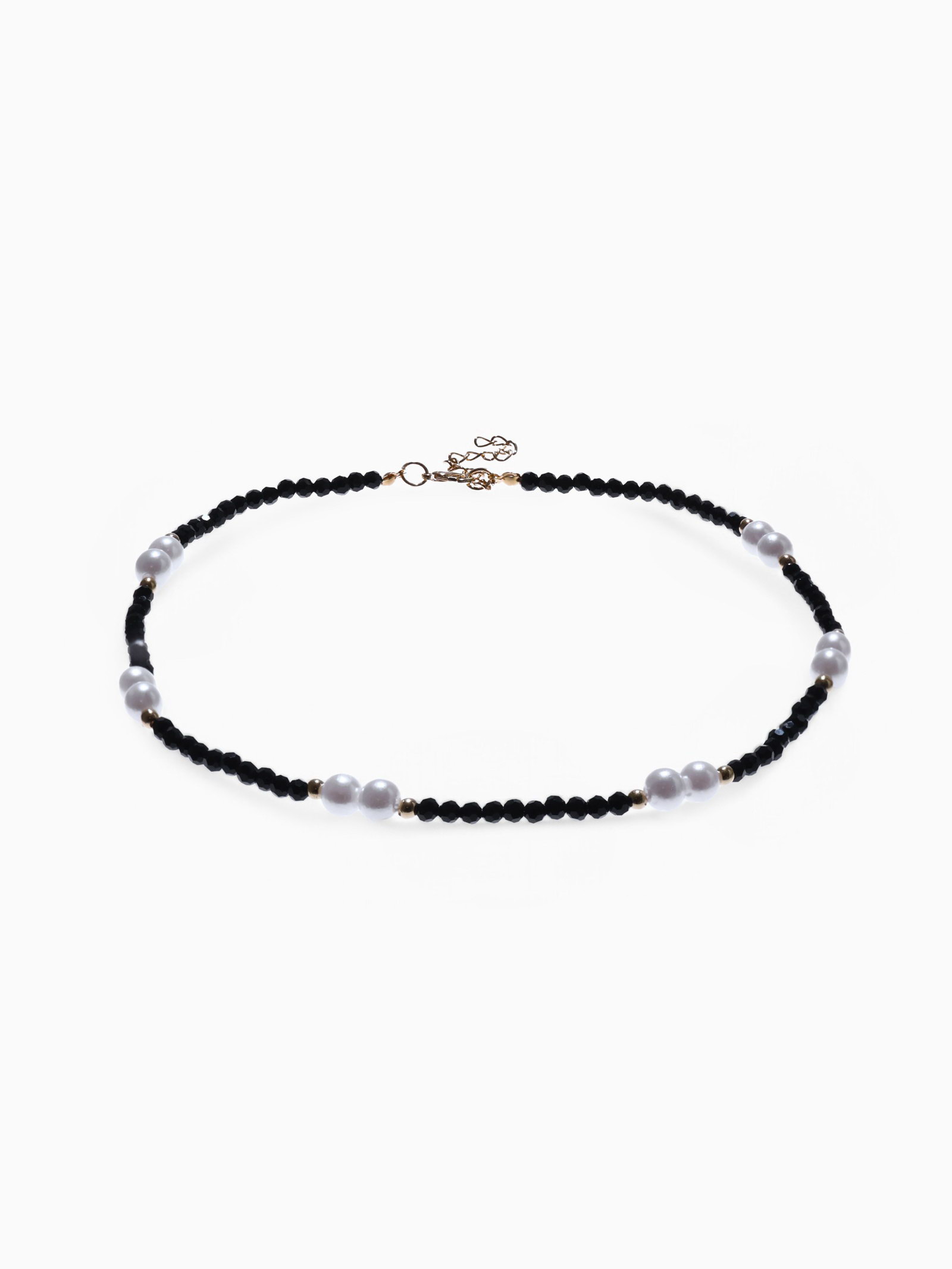 Бусы "Бисер", бусина №8, чёрно-белый в золоте, 40 см, 0.8x20x0.4 см., QF, Китай