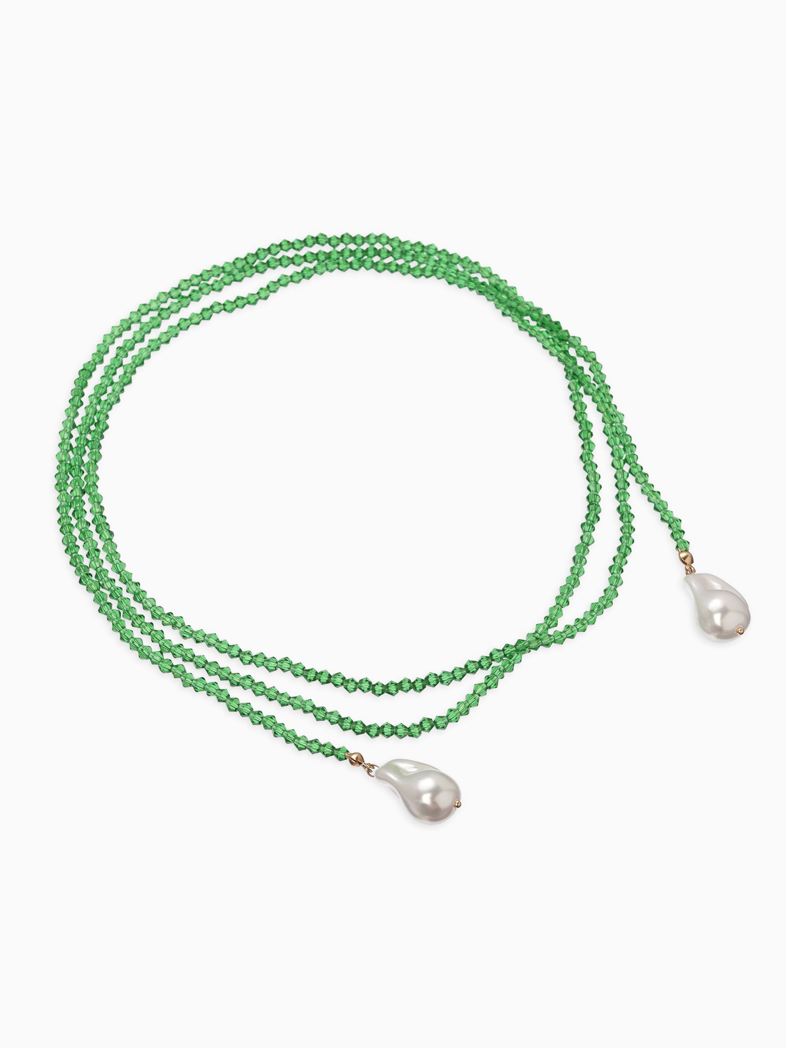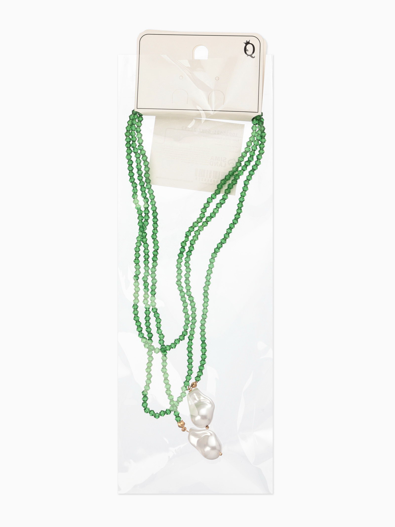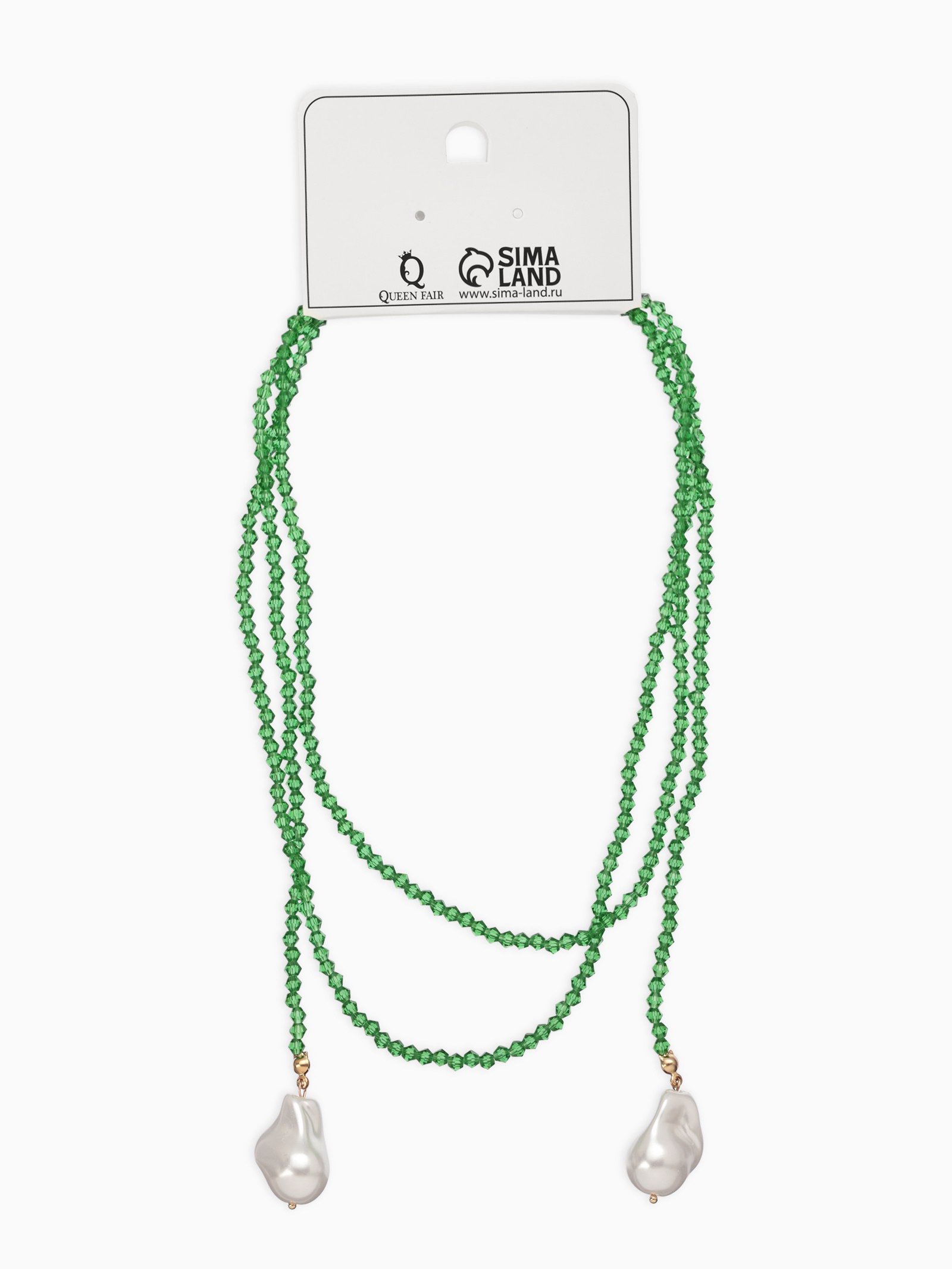 Бусы "Нить стекла" с подвесами жемчуг, L=120см №2, цвет бело-зелёный, 2x120x1.5 см., QF, Китай