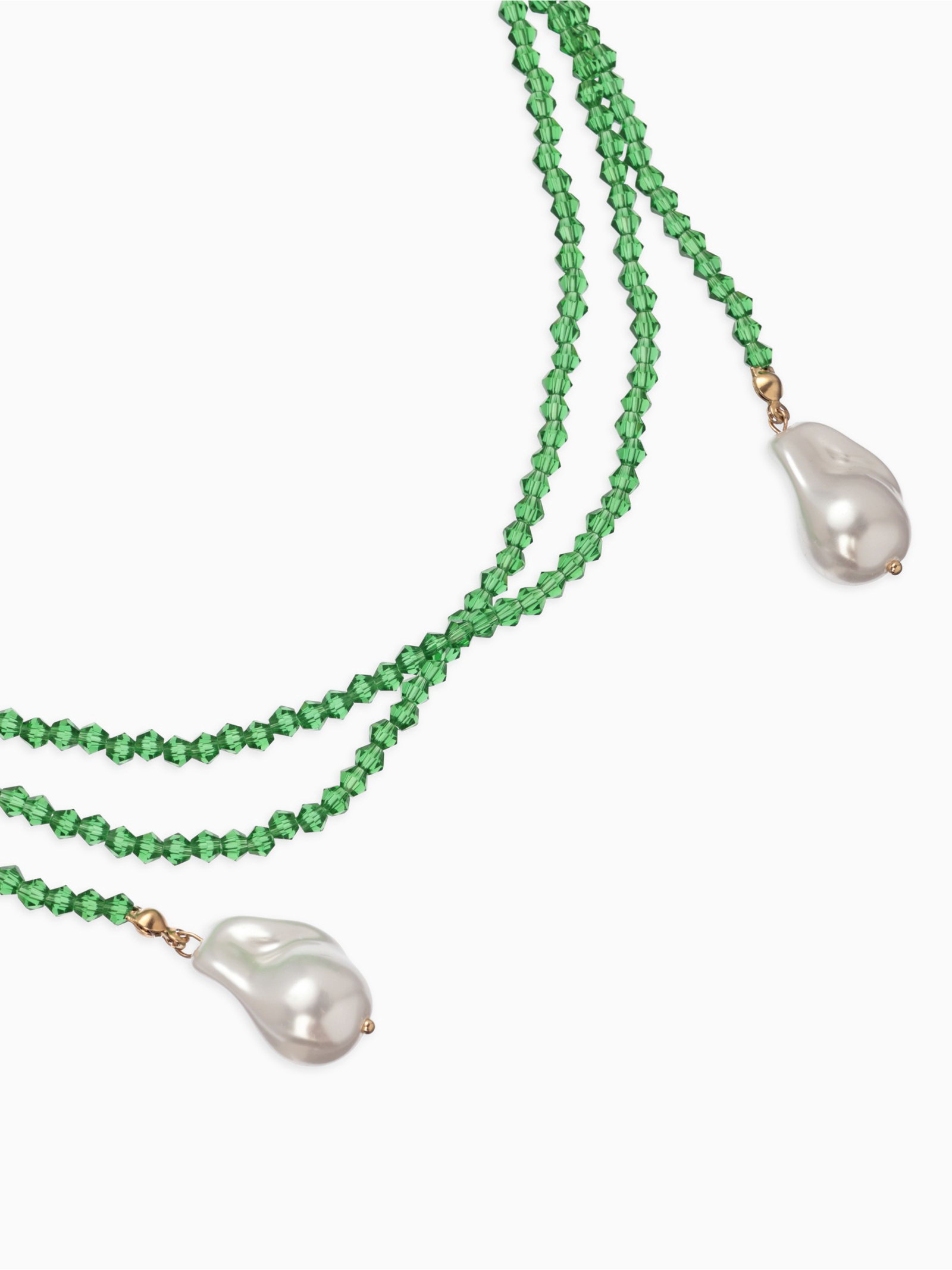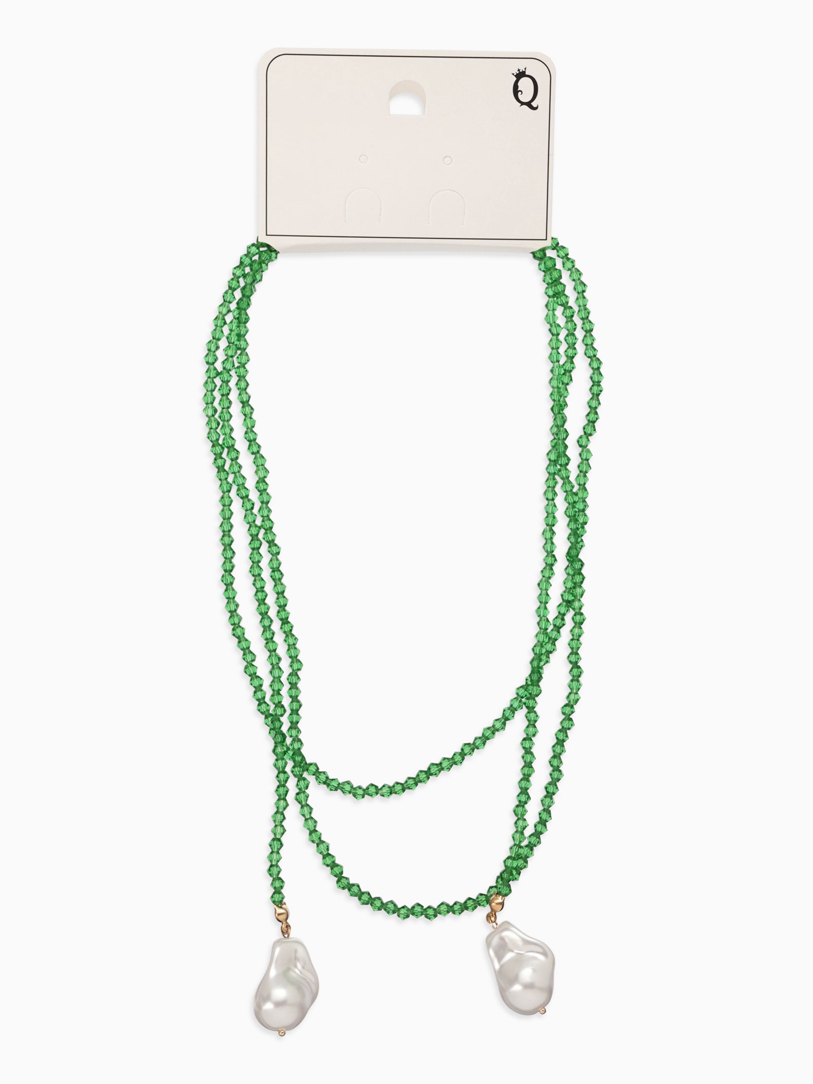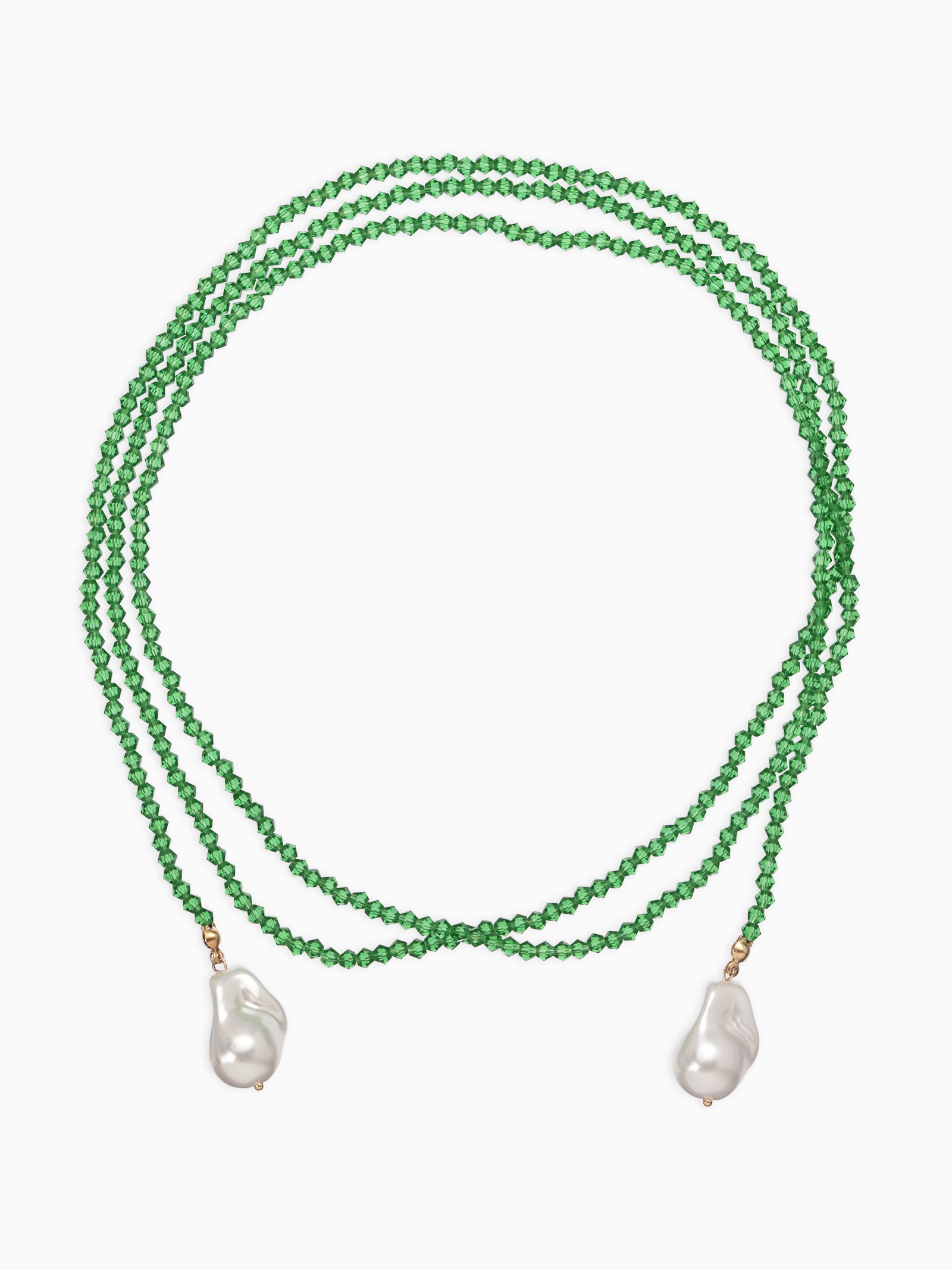 Бусы "Нить стекла" с подвесами жемчуг, L=120см №2, цвет бело-зелёный, 2x120x1.5 см., QF, Китай