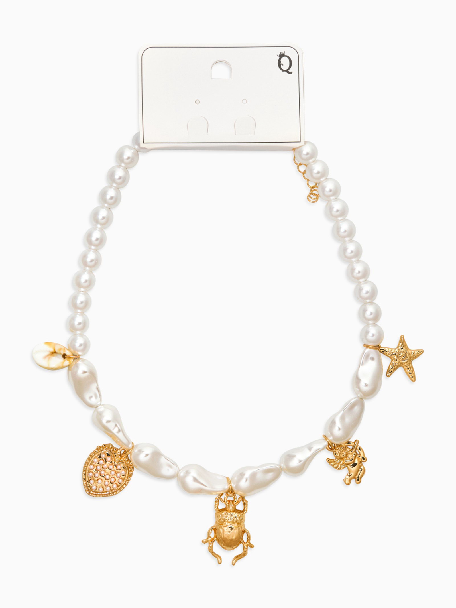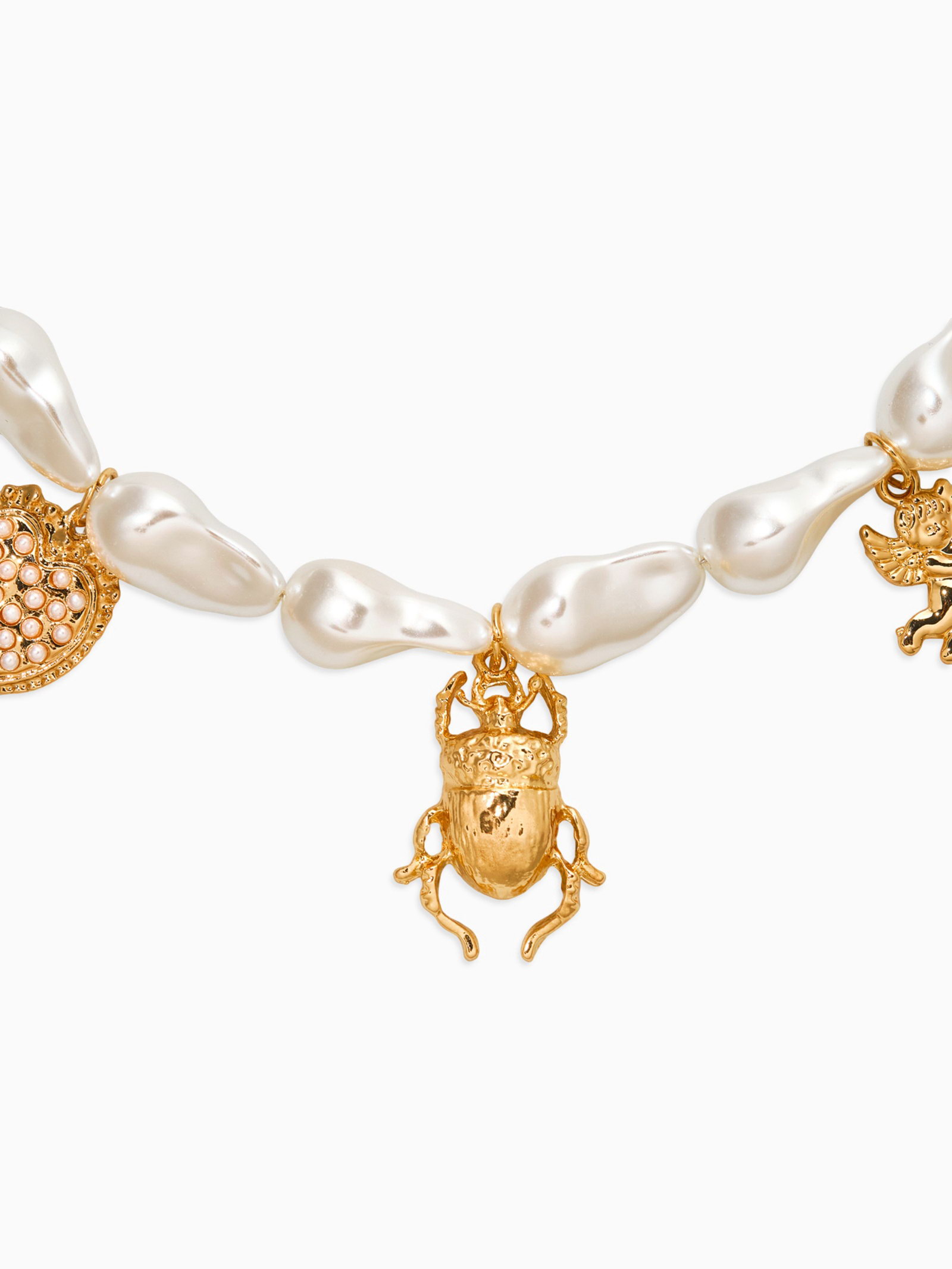 Бусы "Жемчуг. Скарабей", 40 см, №10, белые в золоте, 4x40x2 см., QF, Китай