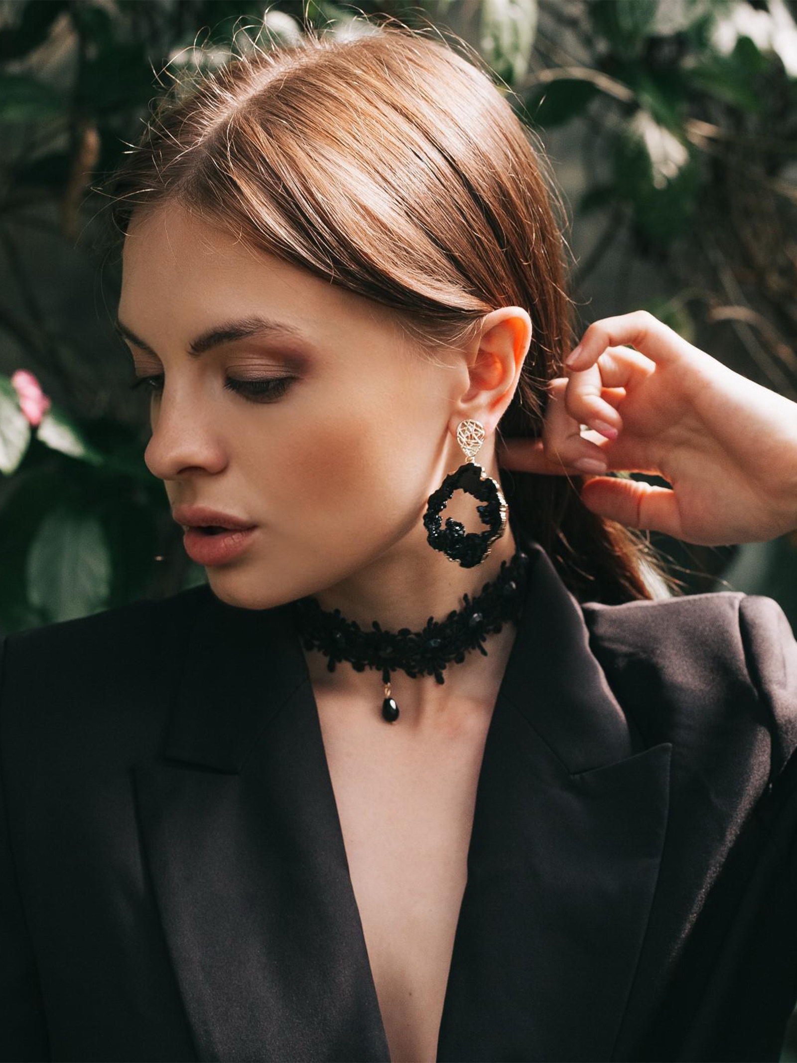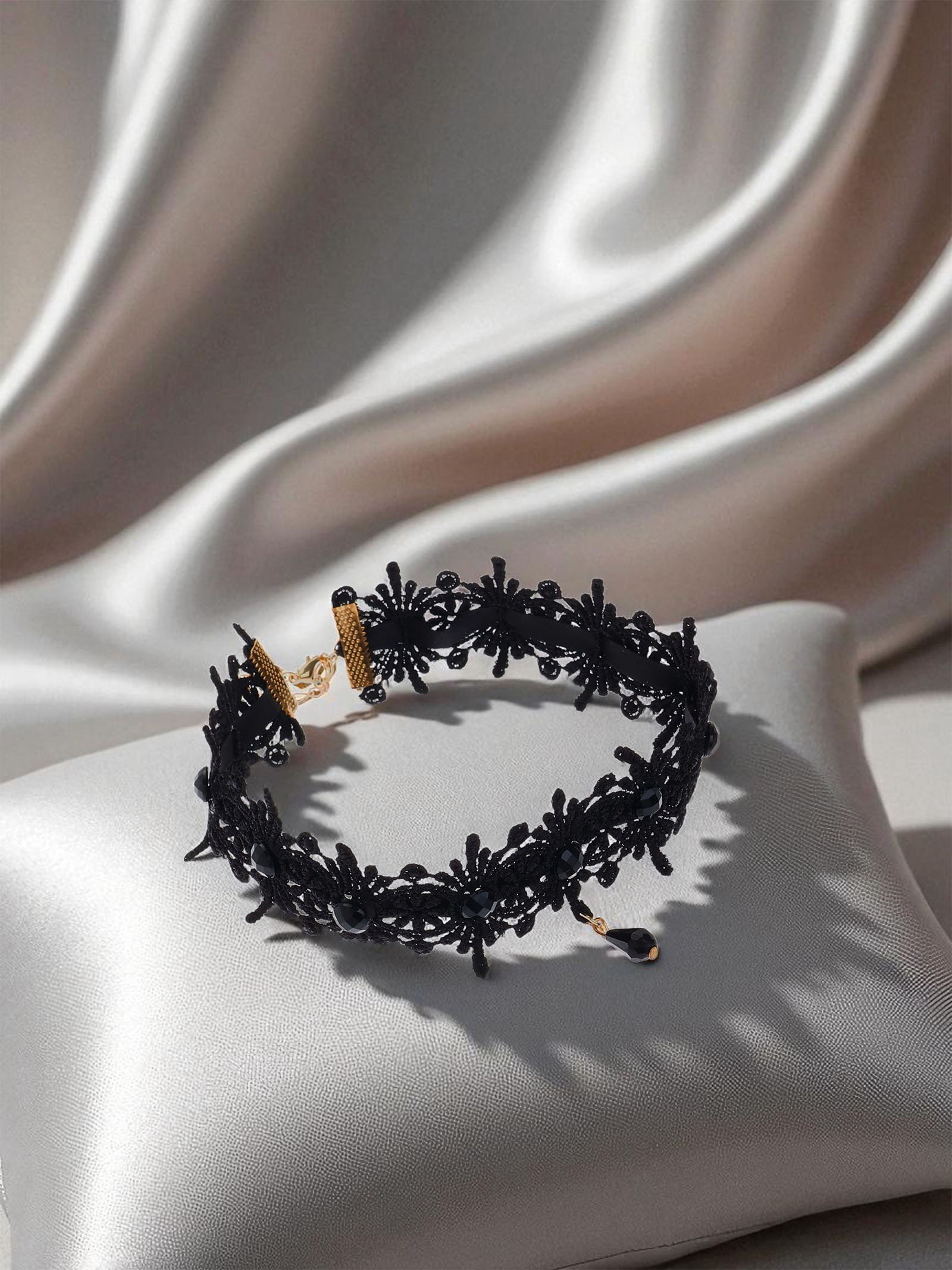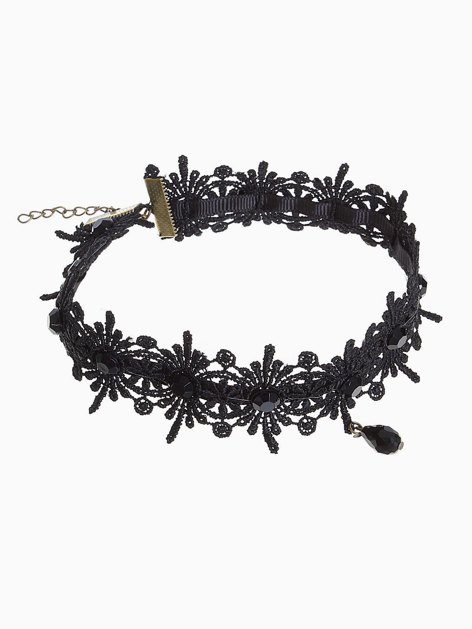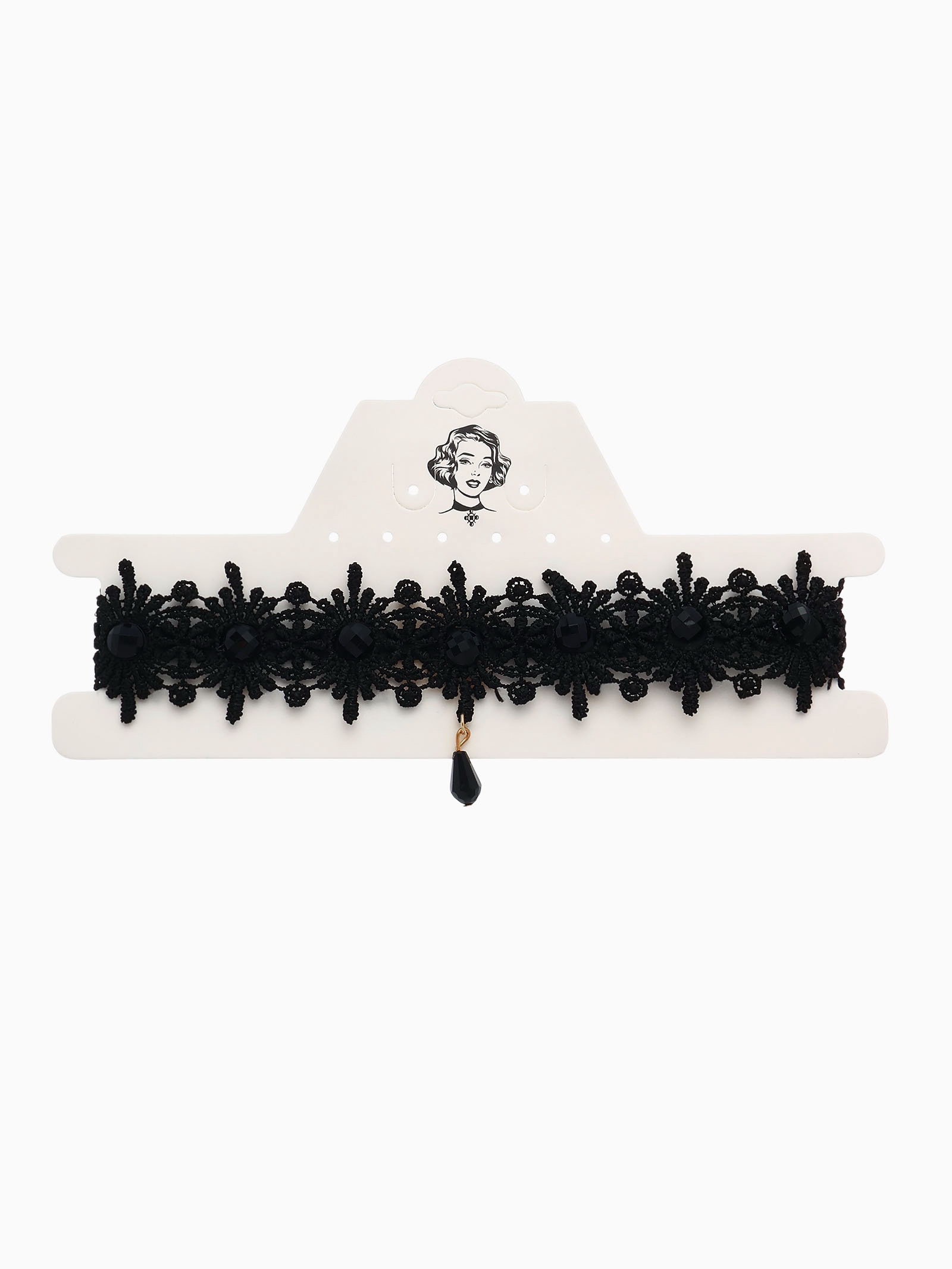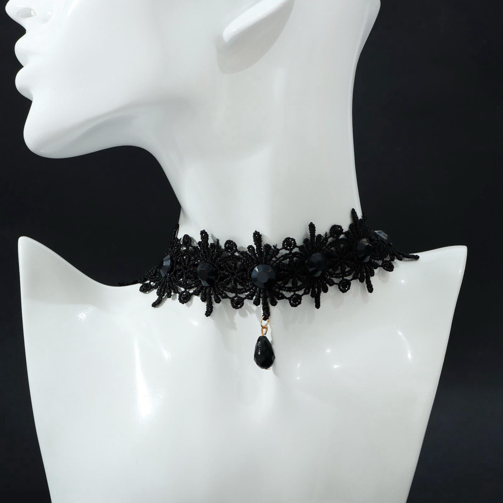 Чокер "Александрия" кружево, капля, цвет чёрный, длина 30см, 3.5x18x0.8 см., QF, Китай
