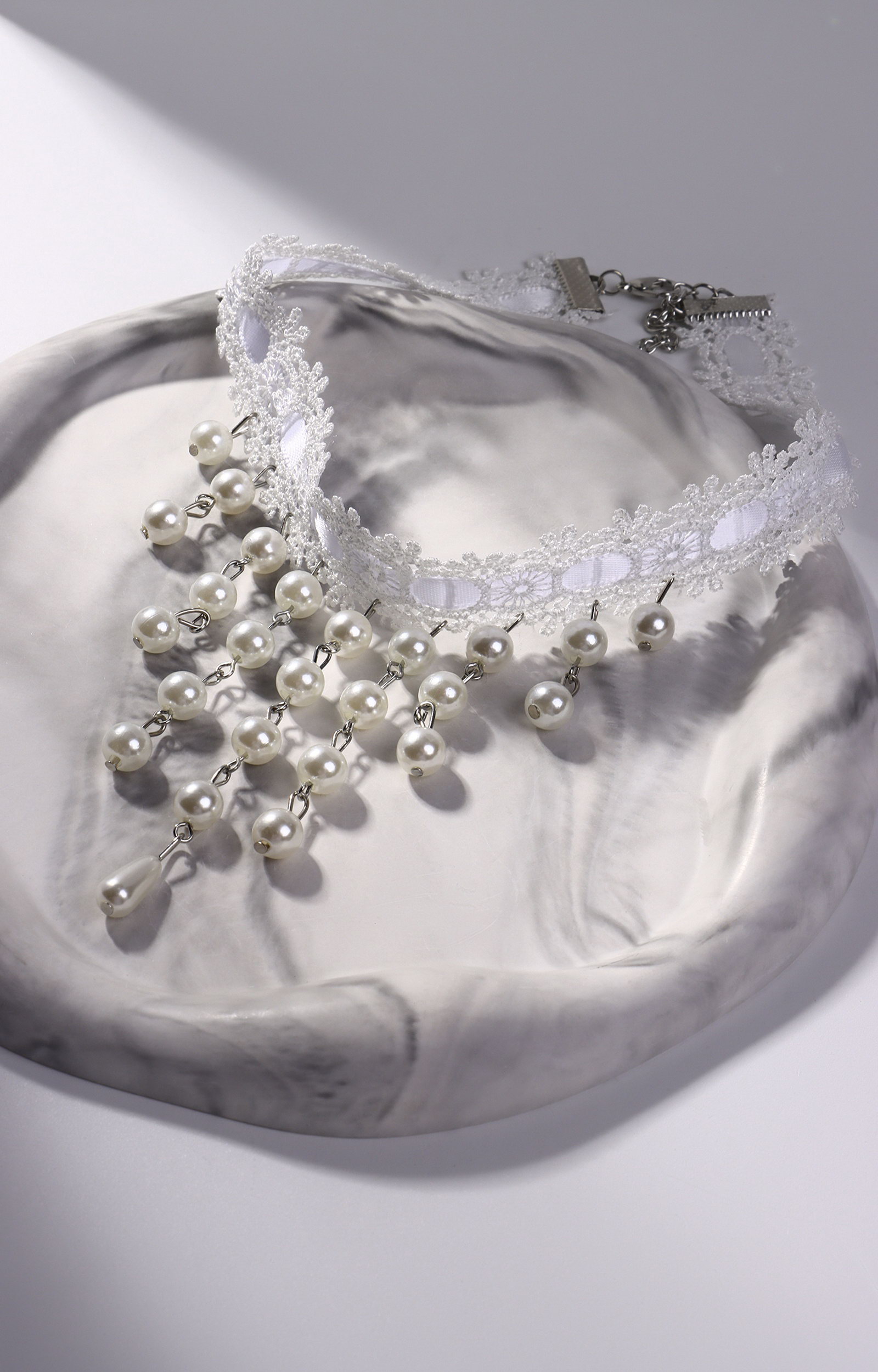 Чокер "Александрия" кружево, бусины, цвет белый, L=30 см, 7.5x30x0.6 см., QF, Китай