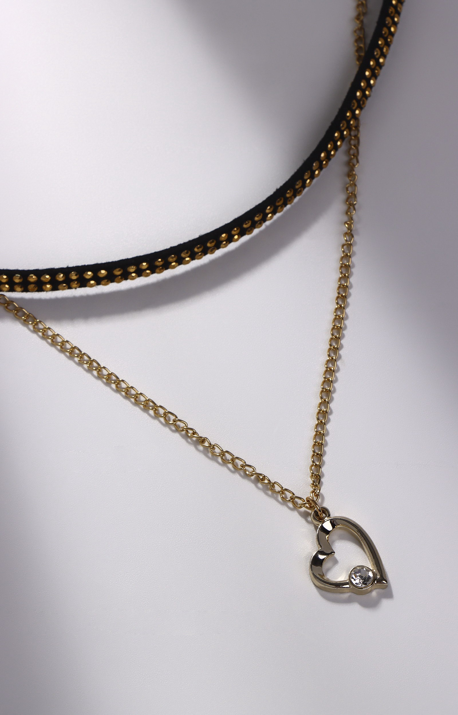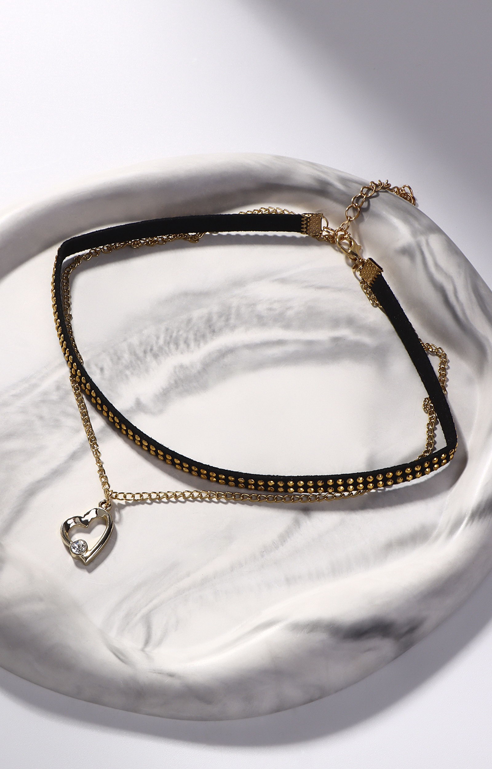 Чокер "Дуэт" сердце, цвет чёрно-золотой, L=30 см, 2x30x0.4 см., QF, Китай
