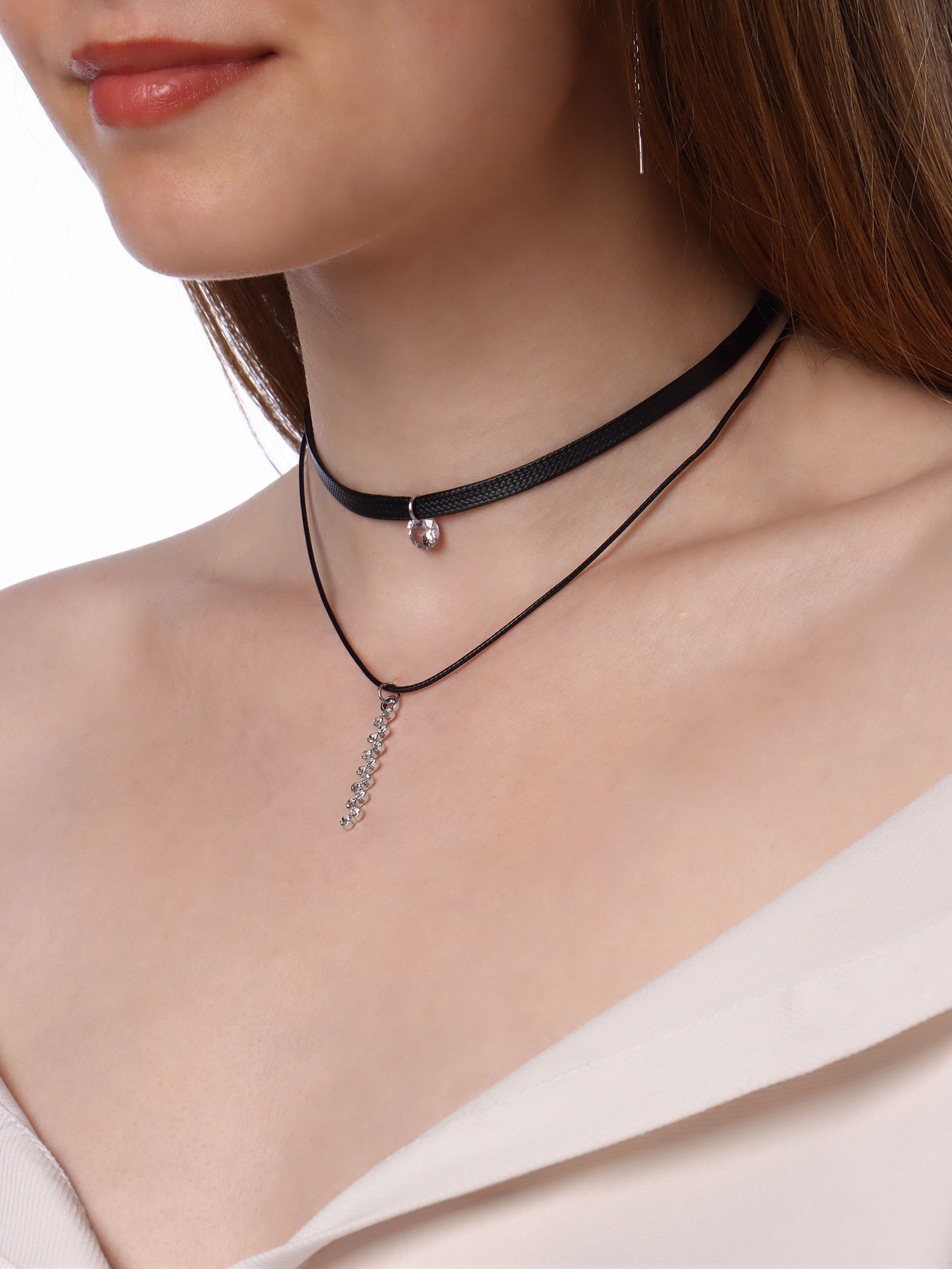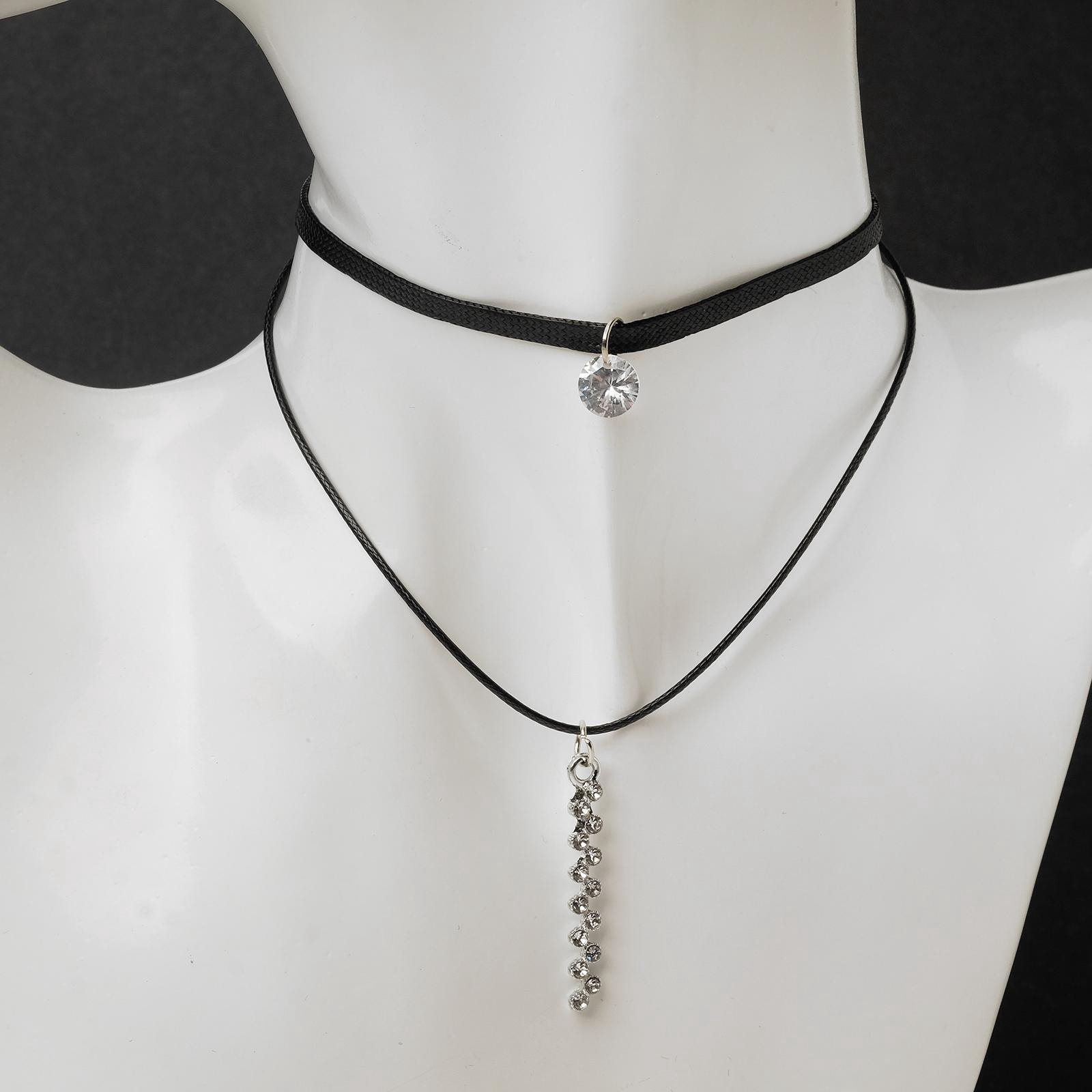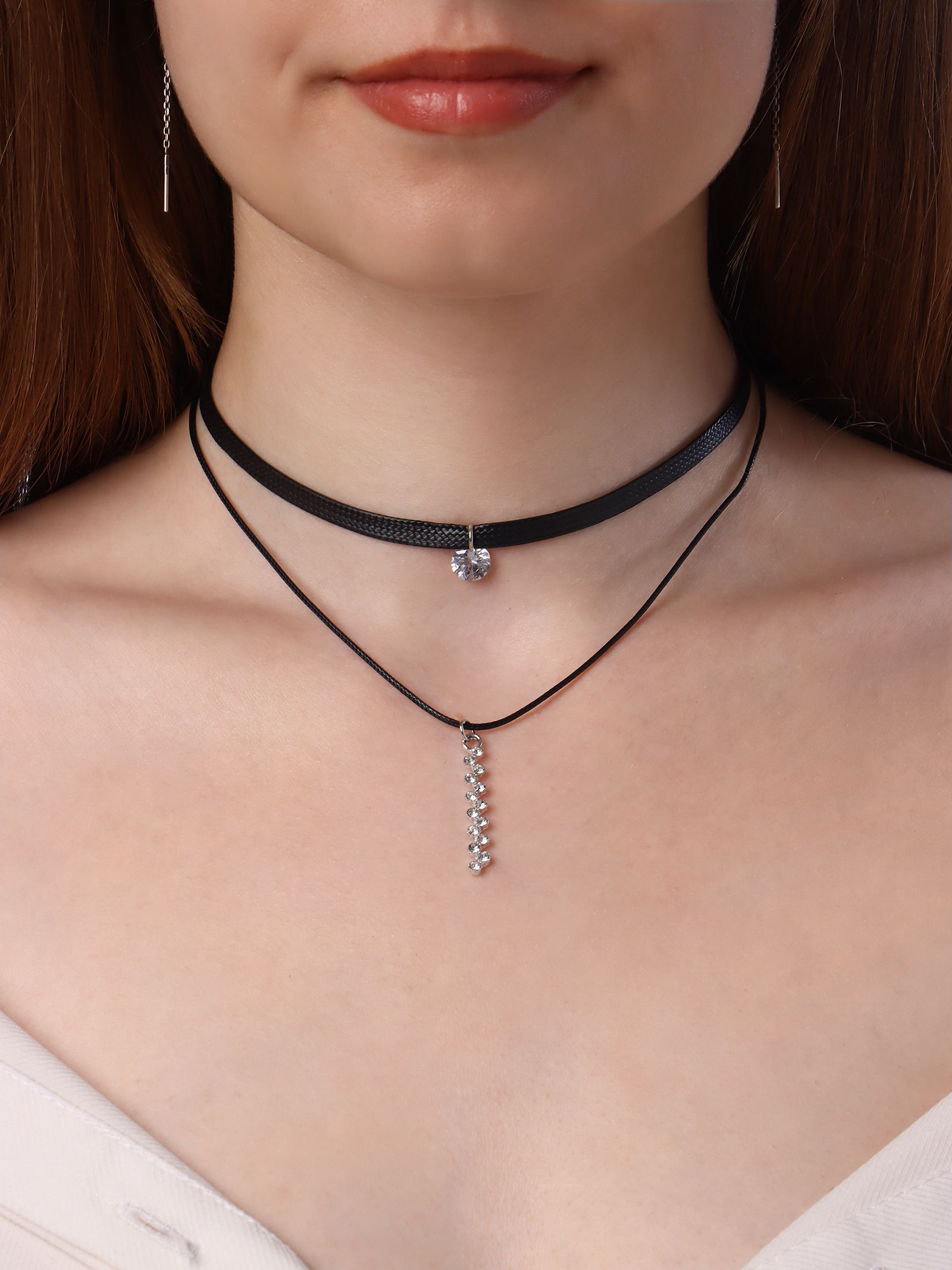Вставка/Подвеска: Металл, Стразы Вид: Чокер, Чокер с подвеской, Чокеры Тематика праздника: 8 Марта, День рождения, Новый год, Универсальная тематика Адресат: Дочке, Маме, Подруге Материал основы: Искусственная замша, Текстиль Размер упаковки: 4 x 0.5 x 23 см. Длина, см: 35.5 Для кого: Для женщины Тематика подарка: Бижутерия Тематика подарка: Бижутерия tnved: 7117190000 С подвеской: Да Тематика: Кристаллы Многослойное украшение: Да Температурное ограничение: Нет Цвет фурнитуры: Серебряный Цвет: Чёрный Набор: Нет Количество ярусов: 2 Количество нитей: 2 Лёгкий и изящный двухслойный чокер в белом цвете с эффектной "ступенькой" из страз это аксессуар, который придаст вашему образу свежесть и утончённость. Изготовленный из искусственной замши и текстиля, он сочетает в себе нежность материалов и долговечность конструкции, обеспечивая комфорт при длительном ношении. Длина 35,5 см позволяет чокеру гармонично обрамлять шею, подчёркивая изящество и женственность. Серебристая фурнитура и металлические вставки с блеском страз создают эффект сияния, который привлекает внимание и добавляет нотку праздничного настроения.