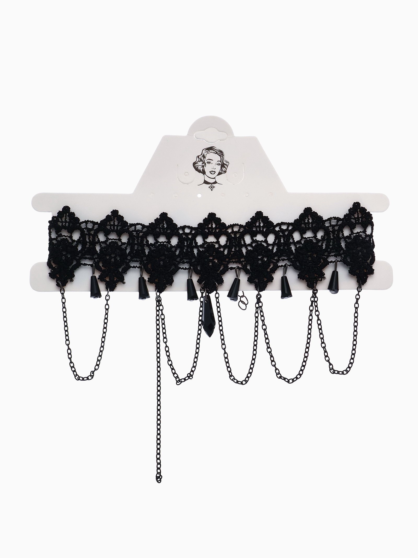 Чокер "Госпожа" осколки и цепочки, цвет чёрный,30см, 6.5x30x0.8 см., QF, Китай
