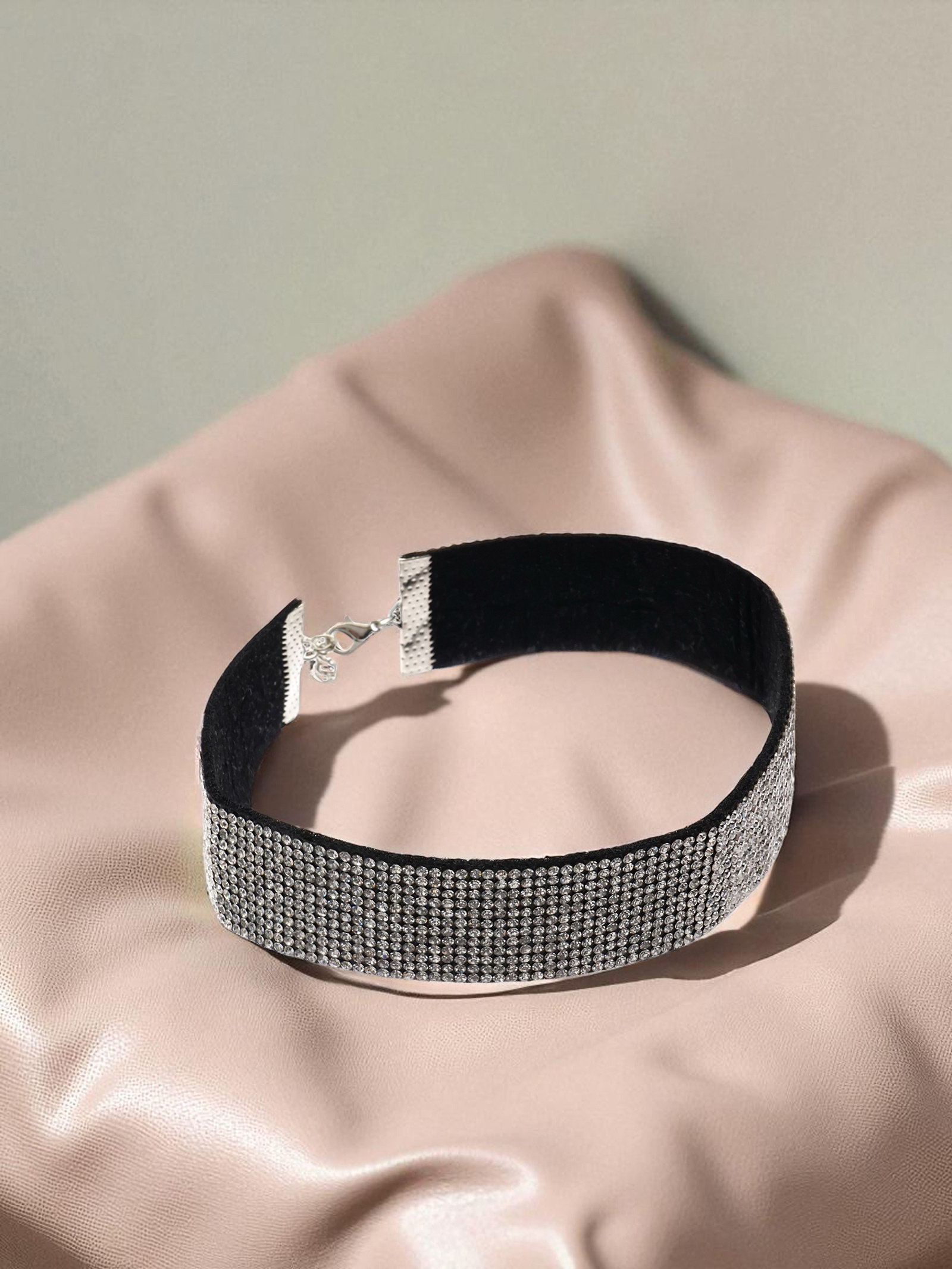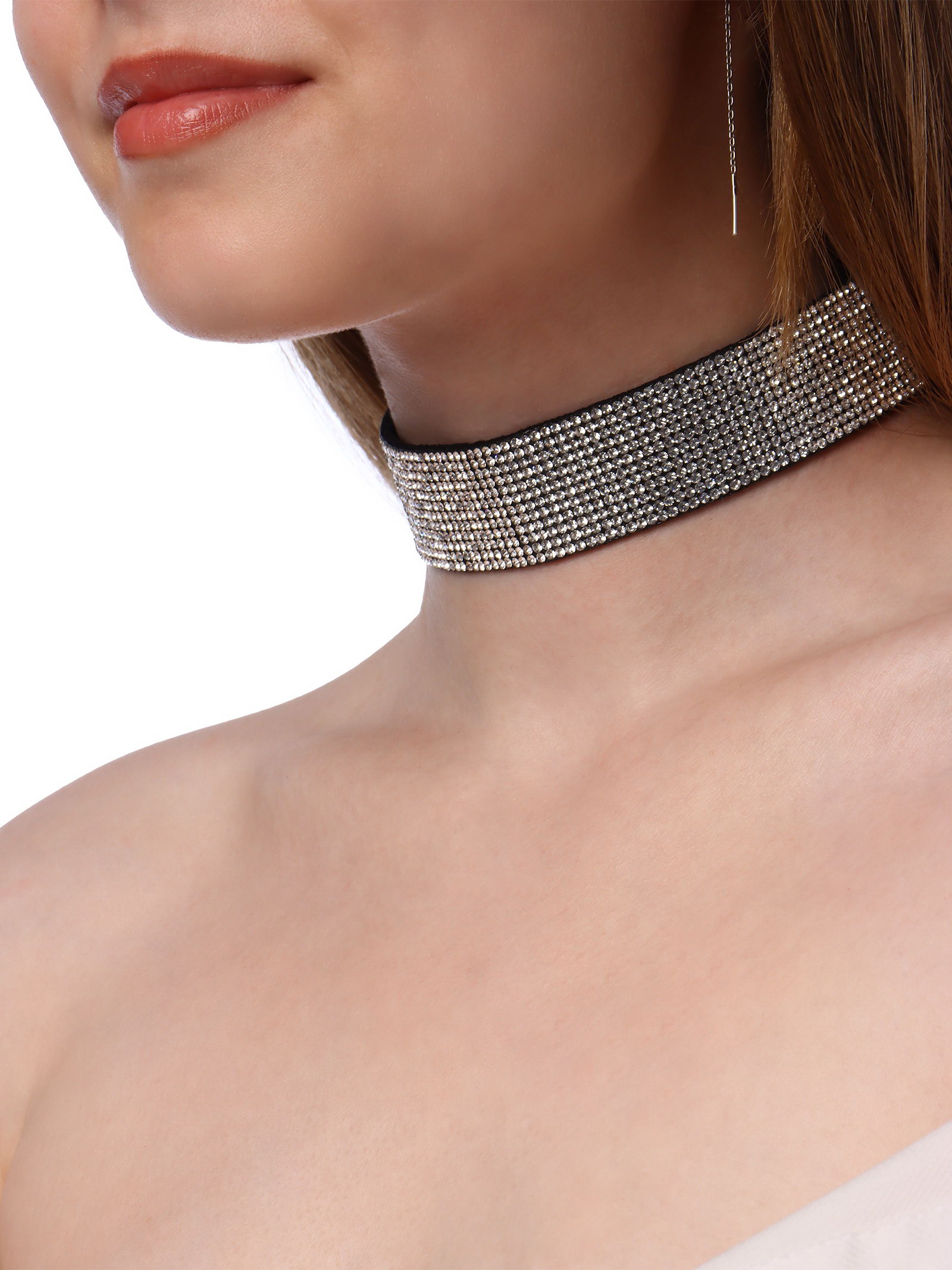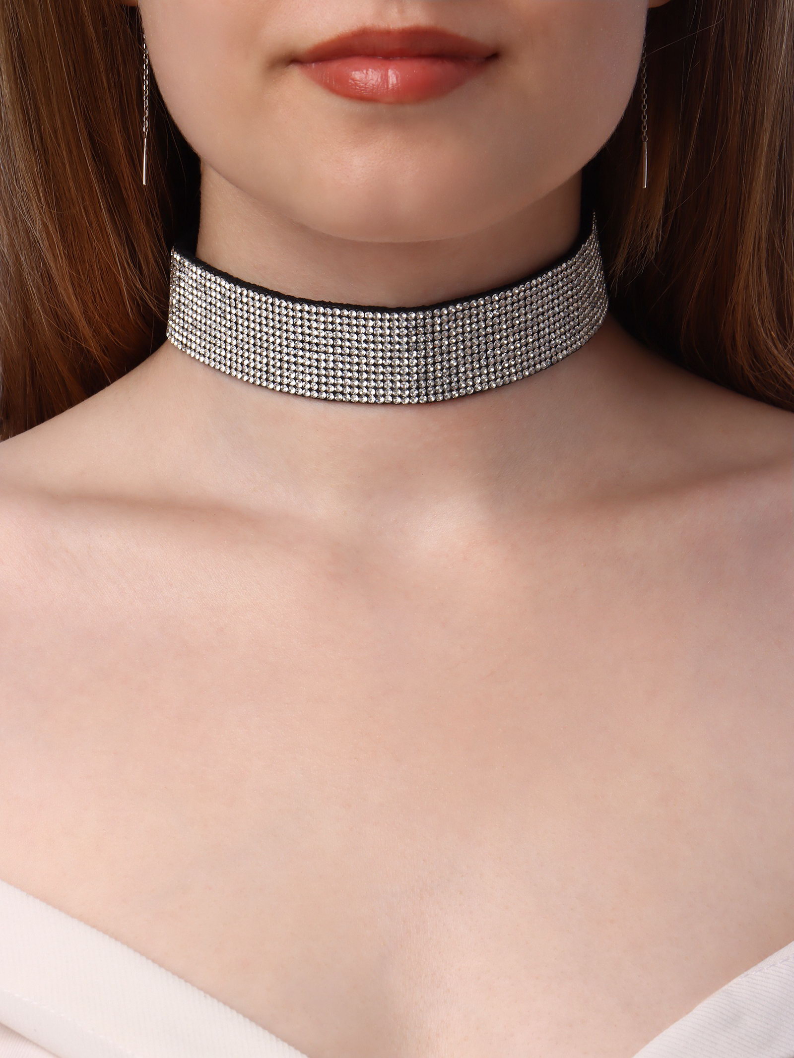 Чокер "Грация искр" средний, цвет чёрно-серебряный, L=31 см, 2.2x31x0.3 см., QF, Китай