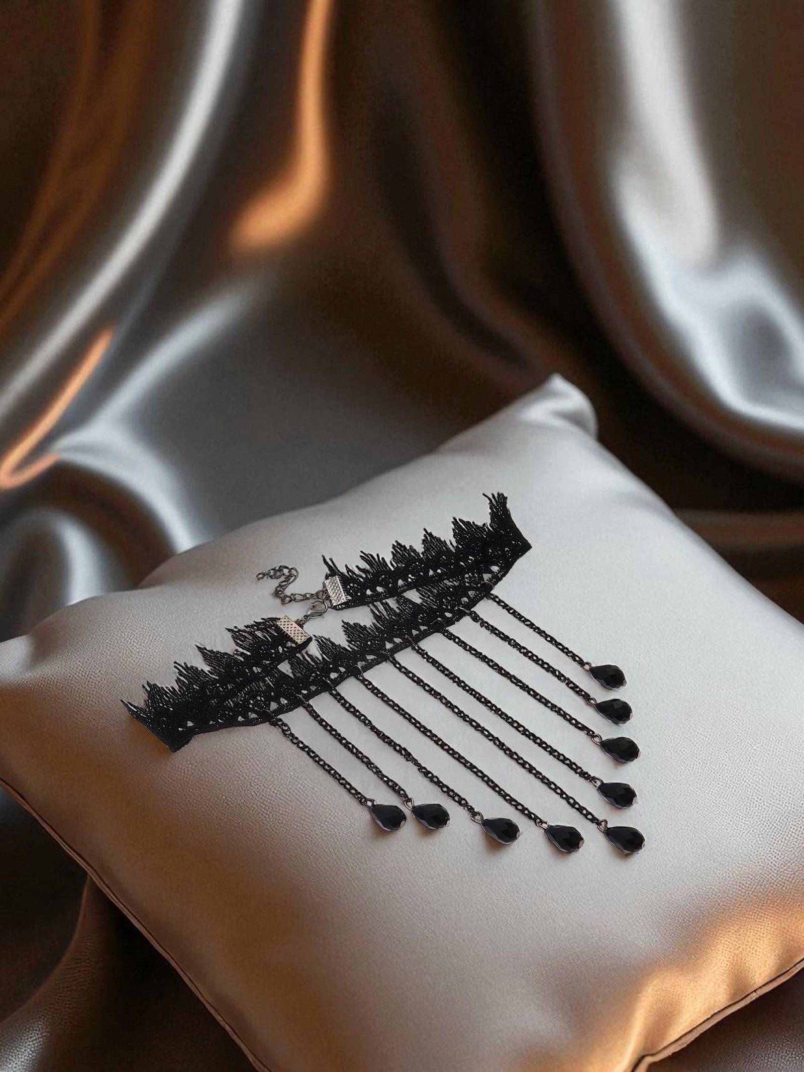 Вид: Чокер, Чокер ажурный, Чокер с подвеской, Чокеры Тематика праздника: 8 Марта, День рождения, Универсальная тематика Адресат: Дочке, Маме, Подруге Материал основы: Металл, Текстиль Вставка/Подвеска: Металл, Пластик Размер упаковки: 9 x 1 x 18 см. Для кого: Для женщины Тематика подарка: Бижутерия Тематика подарка: Бижутерия tnved: 7117900000 С подвеской: Да Тематика: Готическая Многослойное украшение: Нет Температурное ограничение: Нет Цвет: Чёрный Цвет фурнитуры: Чёрный Длина, см: 31 Набор: Нет Количество нитей: 1 Количество ярусов: 1 Чёрный чокер с вытянутыми бусинами это стильный аксессуар, который подчёркивает индивидуальность и добавляет образу выразительности. Длина 31 см и одна нить из текстиля и металла создают лёгкую и комфортную посадку, идеально обрамляя шею. Элегантность изделия достигается за счёт сочетания матового текстиля с блеском металлических и пластиковых вставок, что делает украшение универсальным для повседневного и праздничного образа. Такой чокер станет прекрасным подарком для мамы, дочери или подруги на 8 Марта, день рождения или любой другой повод.