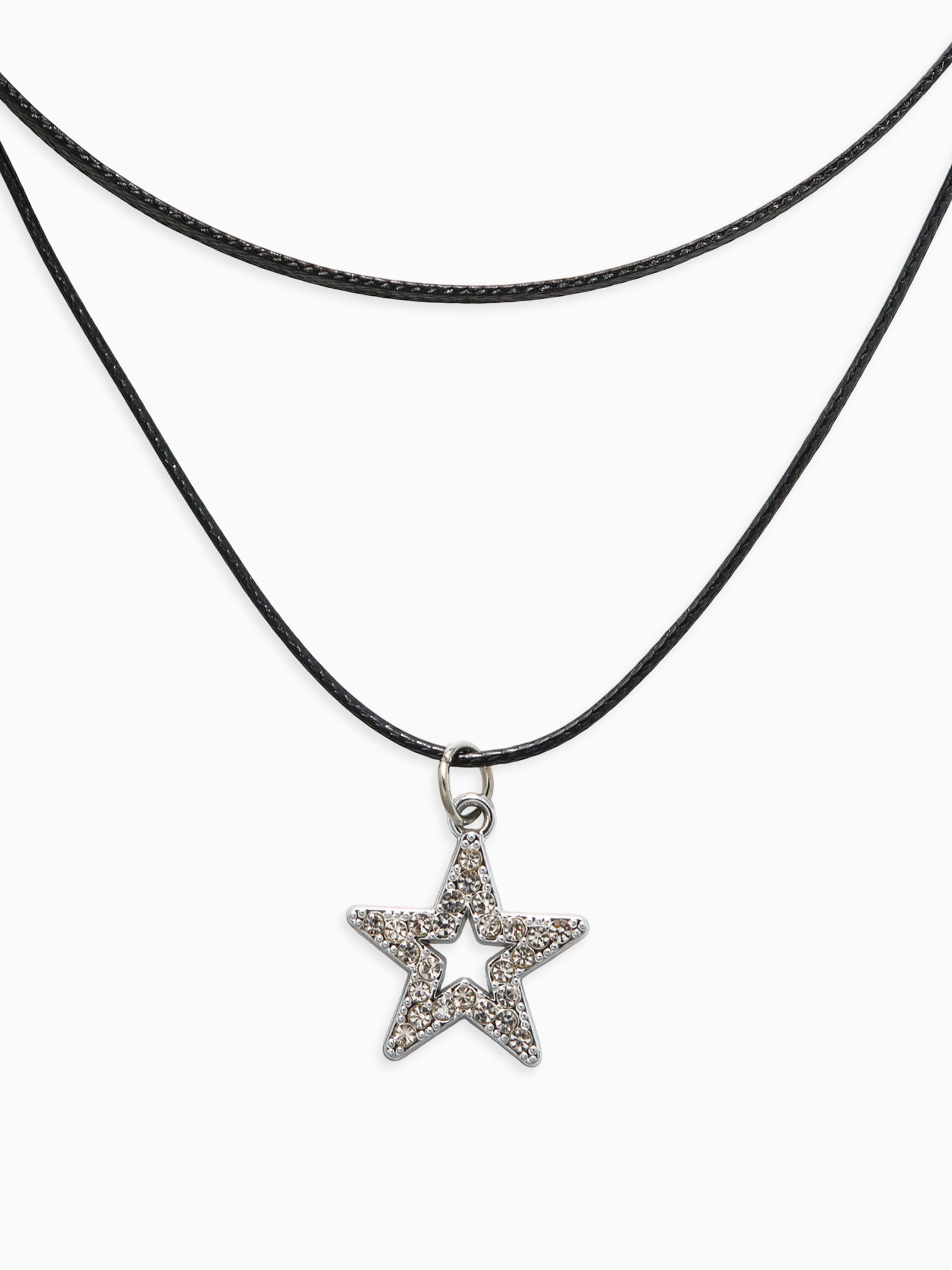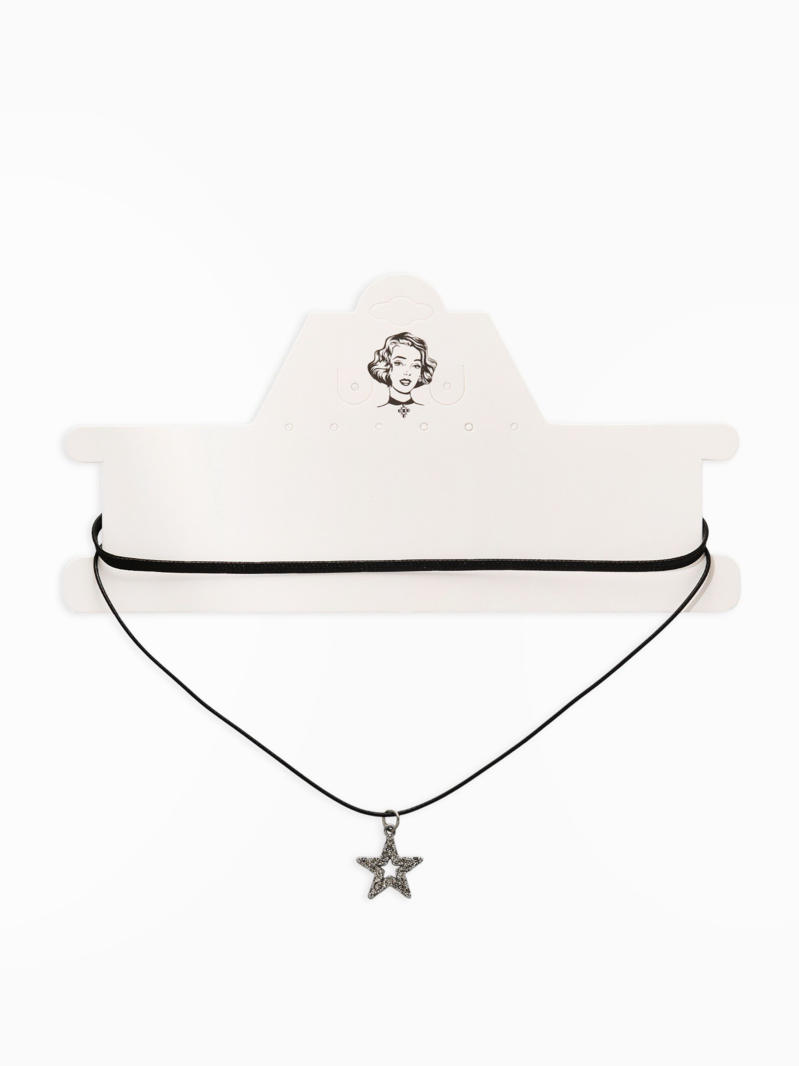 Чокер "Двойной" с нитью, звезда, цвет бело-чёрный в серебре, L=40 см, 2x40x2 см., QF, Китай