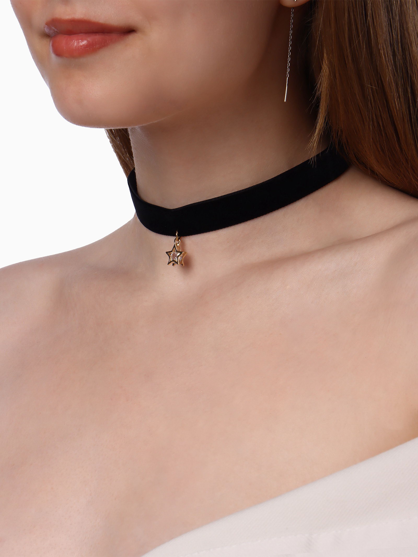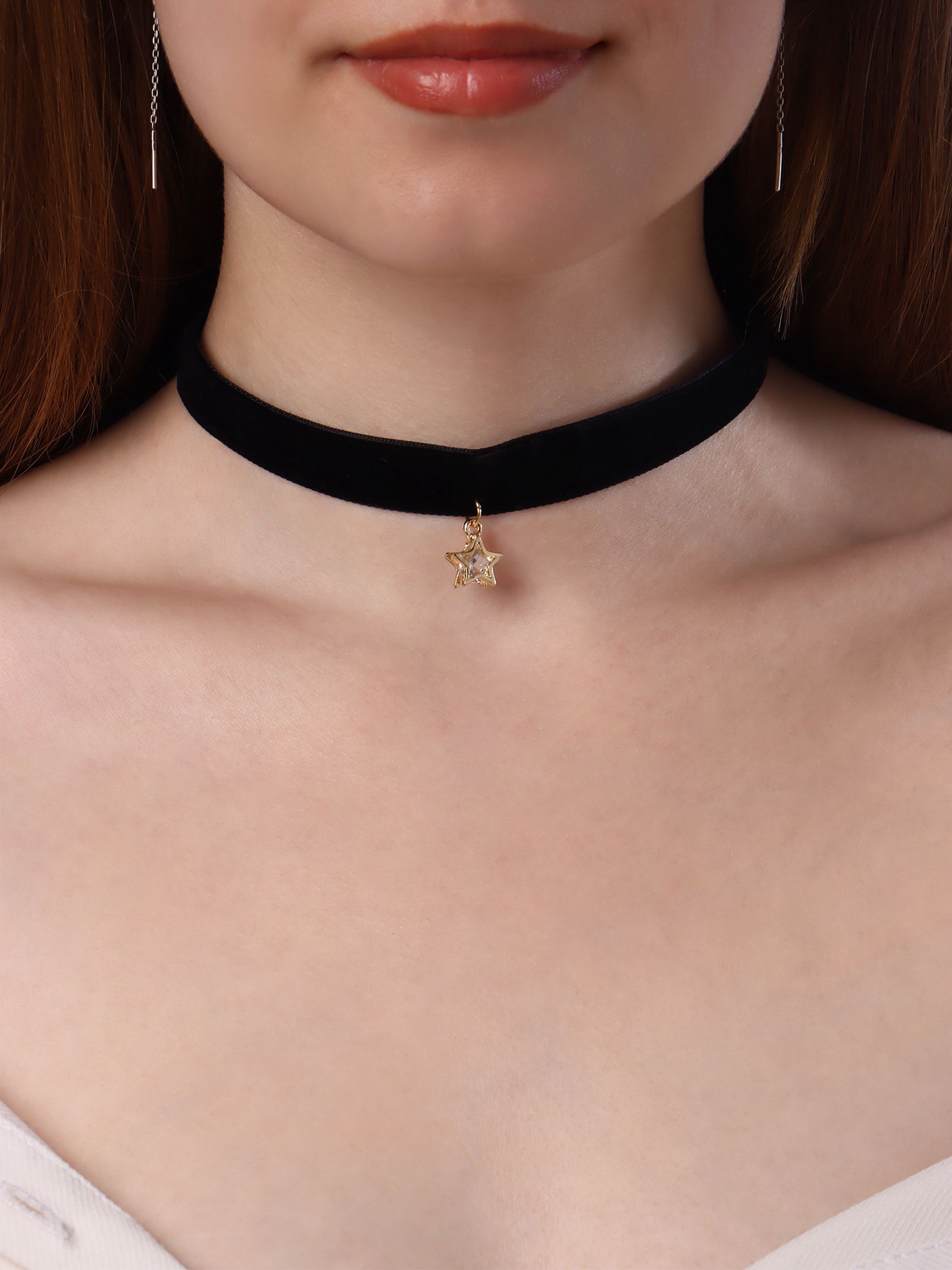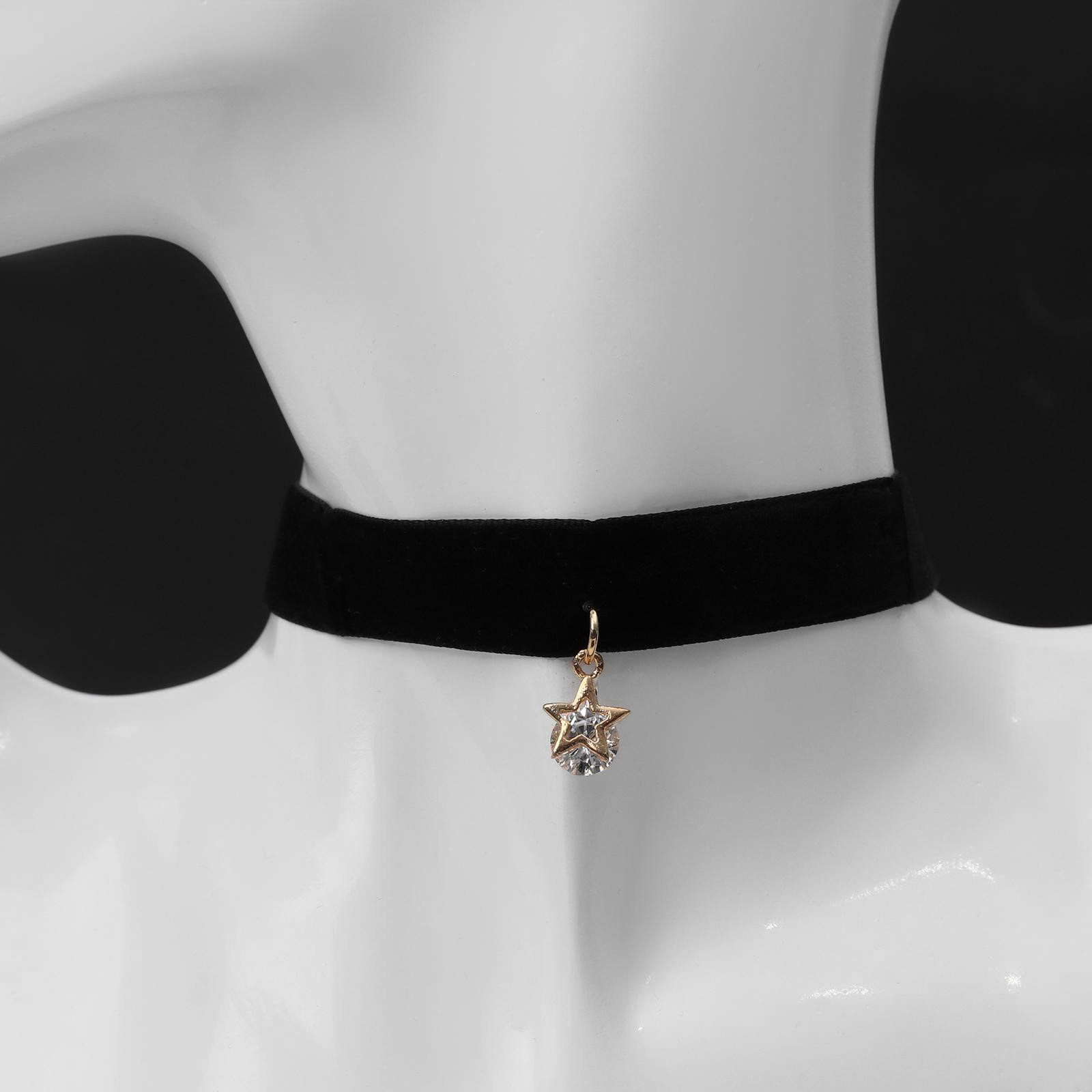 Чокер "Стразинка" звезда, цвет белый в золоте, L=32 см, 1x32x1 см., QF, Китай