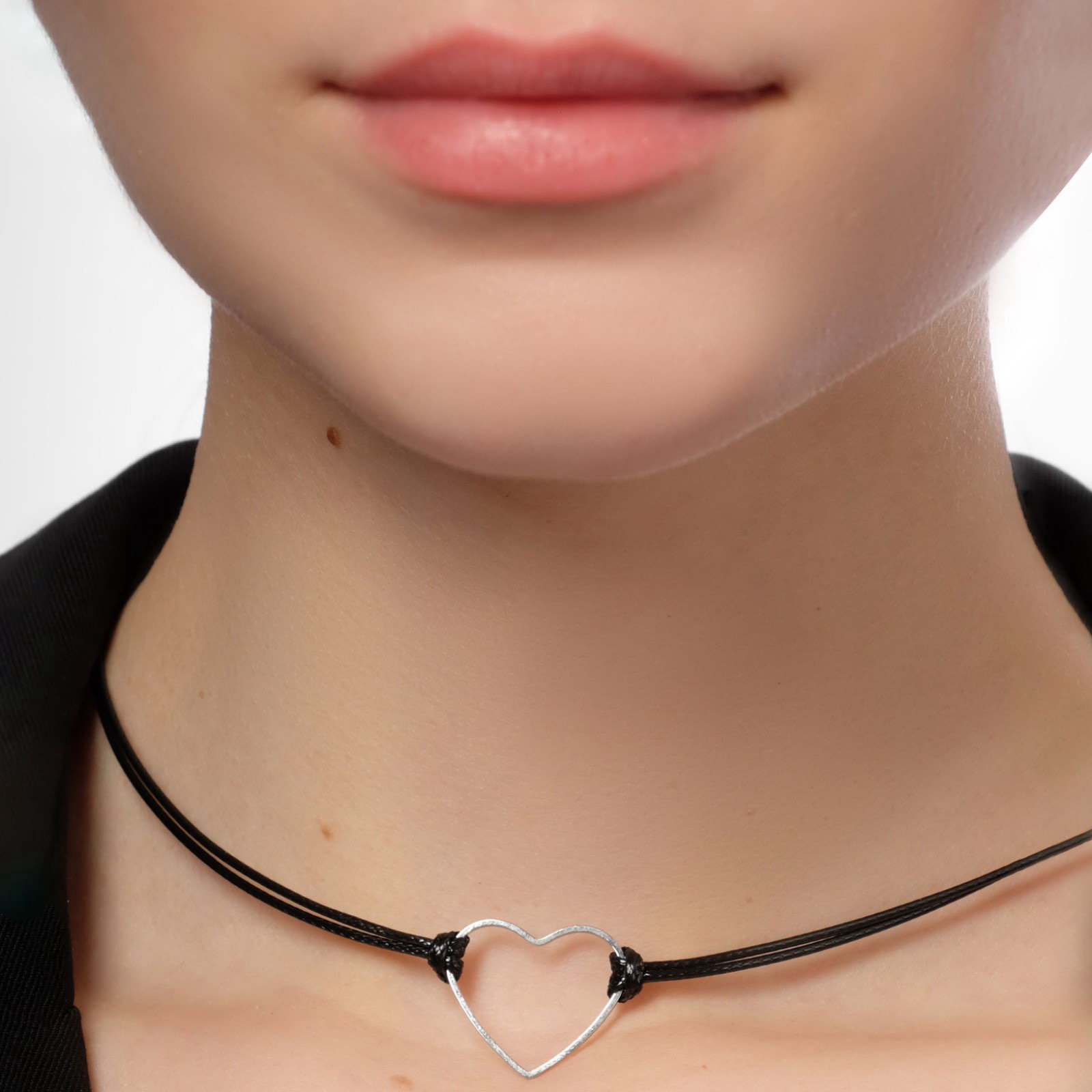 Чокер "Сердце", цвет чёрный в серебре, L= 35 см, 0.3x35x0.3 см., QF, Китай