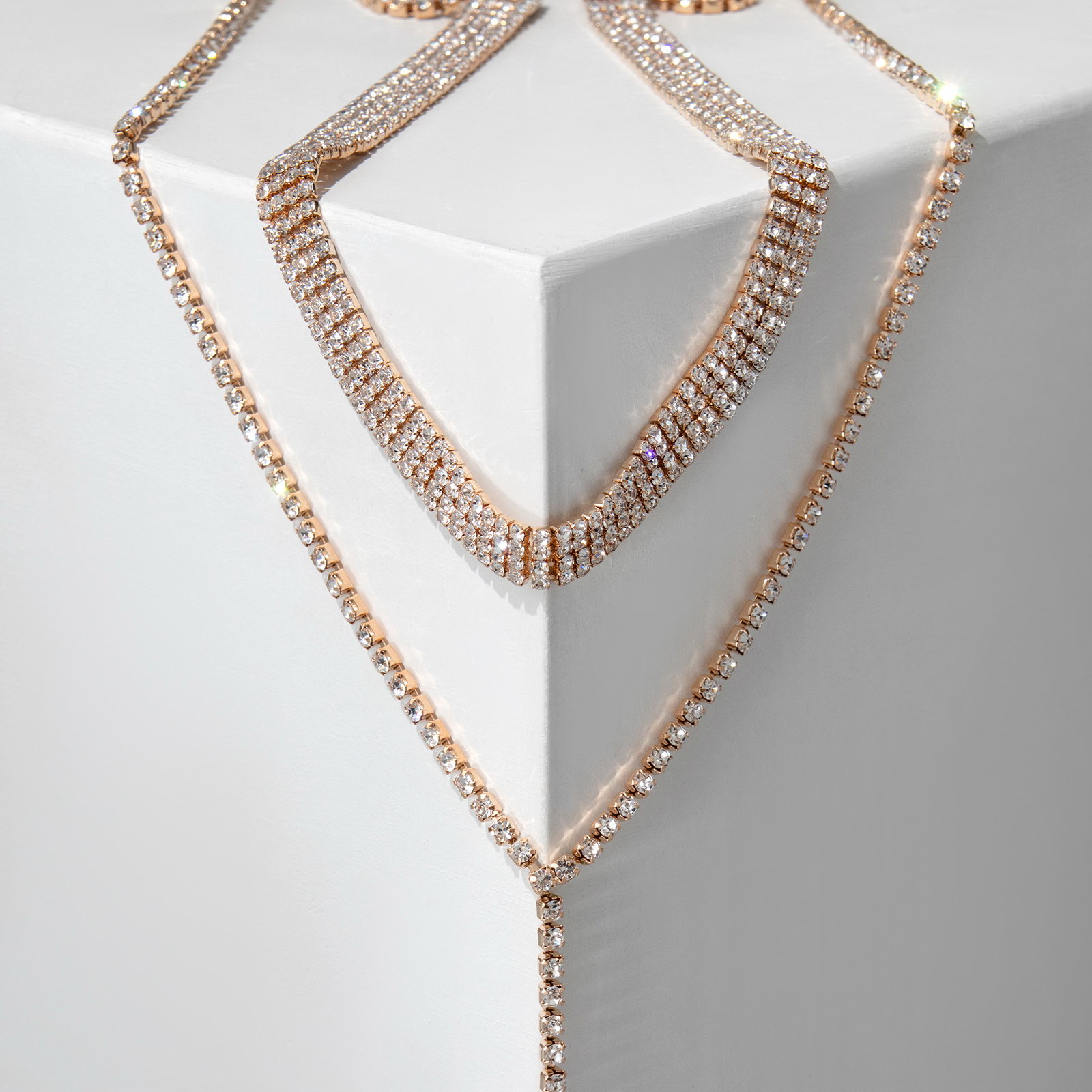 Чокер "Лёд", цвет белый в золоте 4 ряда, 44.5 см, 1x44.5x0.2 см., QF, Китай