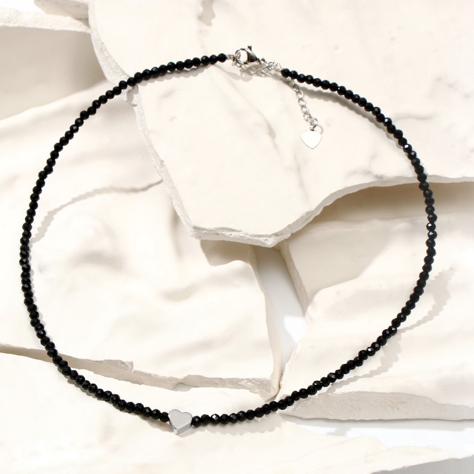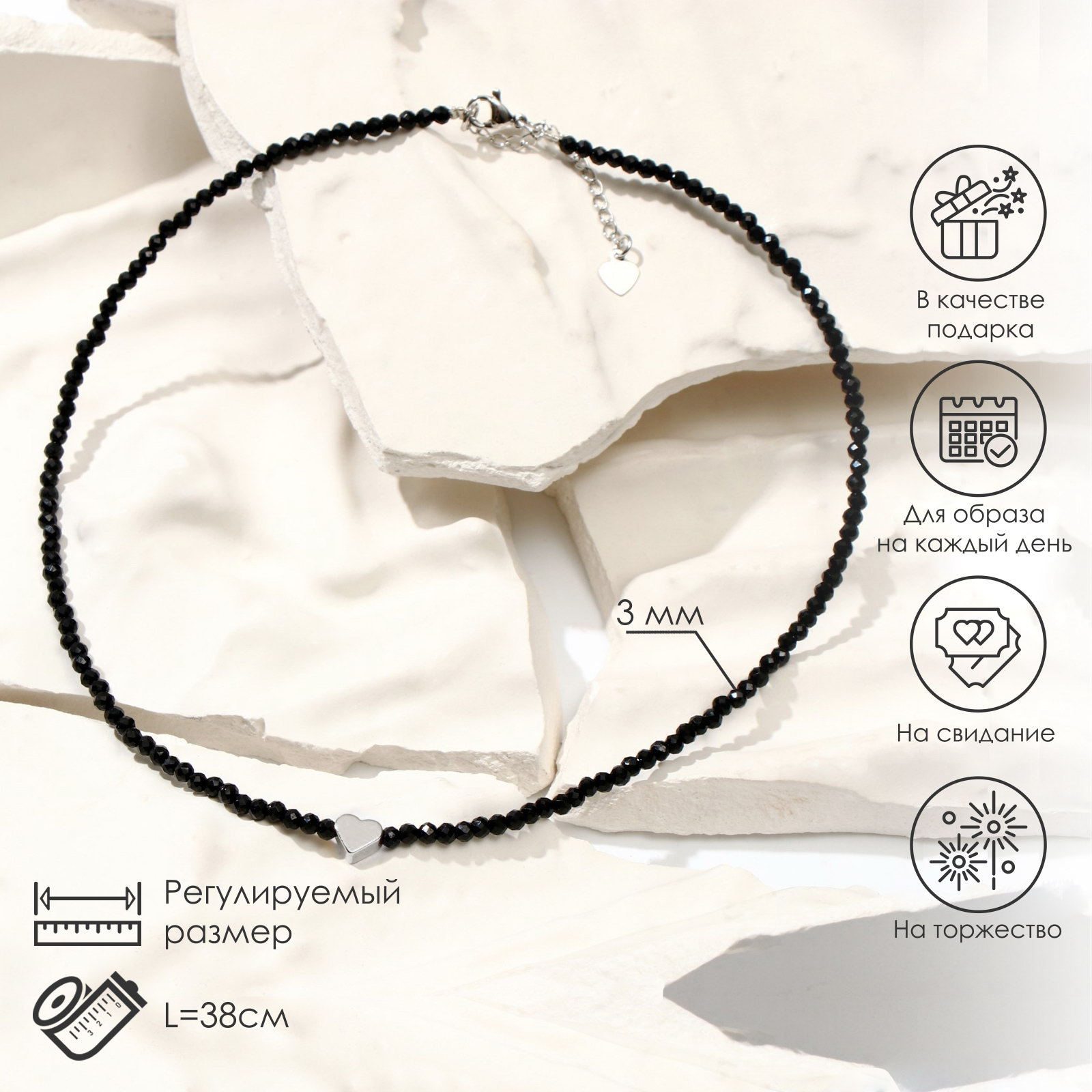 Чокер шар №3 "Шпинель" сердце в серебре, 38 см + 5 см удлинитель, 0.3x38x0.3 см., Китай