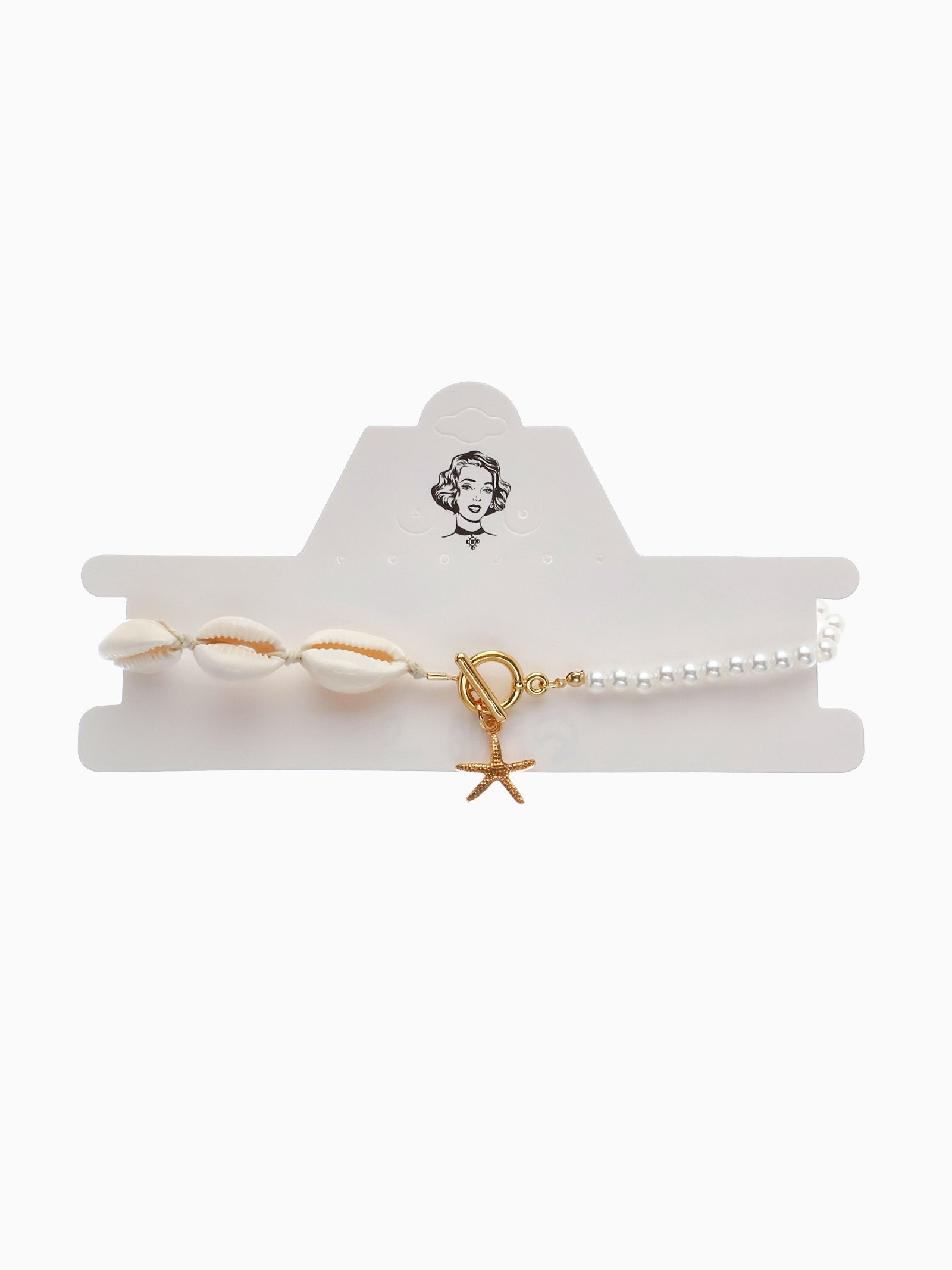 Вид: Браслет из бусин, Браслет с подвеской, Чокер, Чокер из бисера, Чокер с подвеской Вставка/Подвеска: Пластик, Ракушка Размер упаковки: 9 x 1.5 x 18 см. Набор: Нет Вид застёжки: Т-образная застёжка (тогл, костыль) Коллекция: Жемчуг Для кого: Для женщины tnved: 7117190000 tnved: 7117190000 С подвеской: Да Тематика: Морская Многослойное украшение: Нет Цвет фурнитуры: Золотой Длина, см: 42 Цвет: Белый Материал основы: Металл Жемчужный браслет с морской тематикой и золотистой фурнитурой украшение длиной 42 см, выполненное из бусин, пластика и натуральных ракушек. Его нежный белый оттенок и оригинальная подвеска в виде морской звезды подчёркивают женственность и создают лёгкий морской образ. Особенности