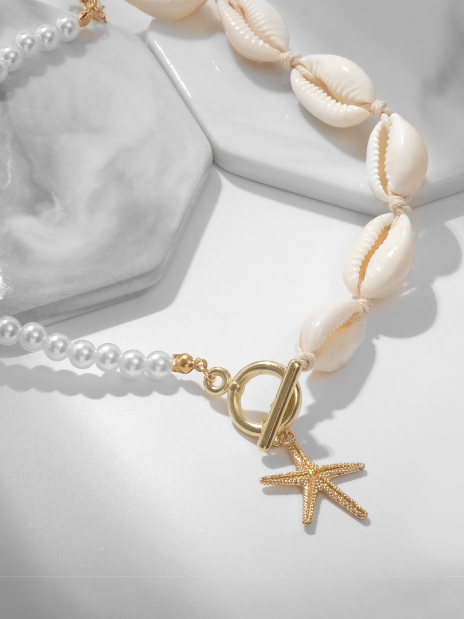 Чокер "Морская звезда", белый в золоте, 42 см, 2x42x1 см., QF, Китай