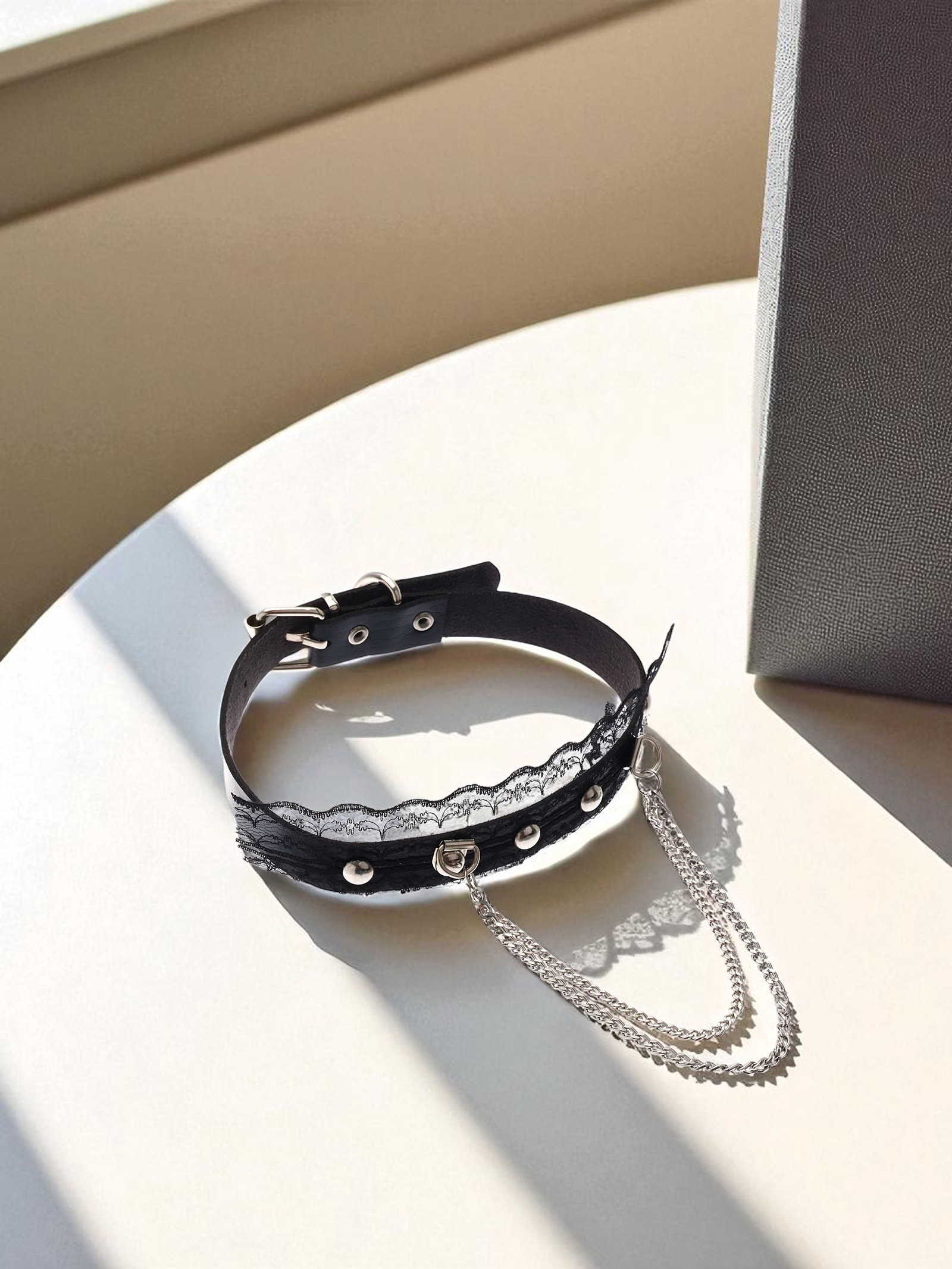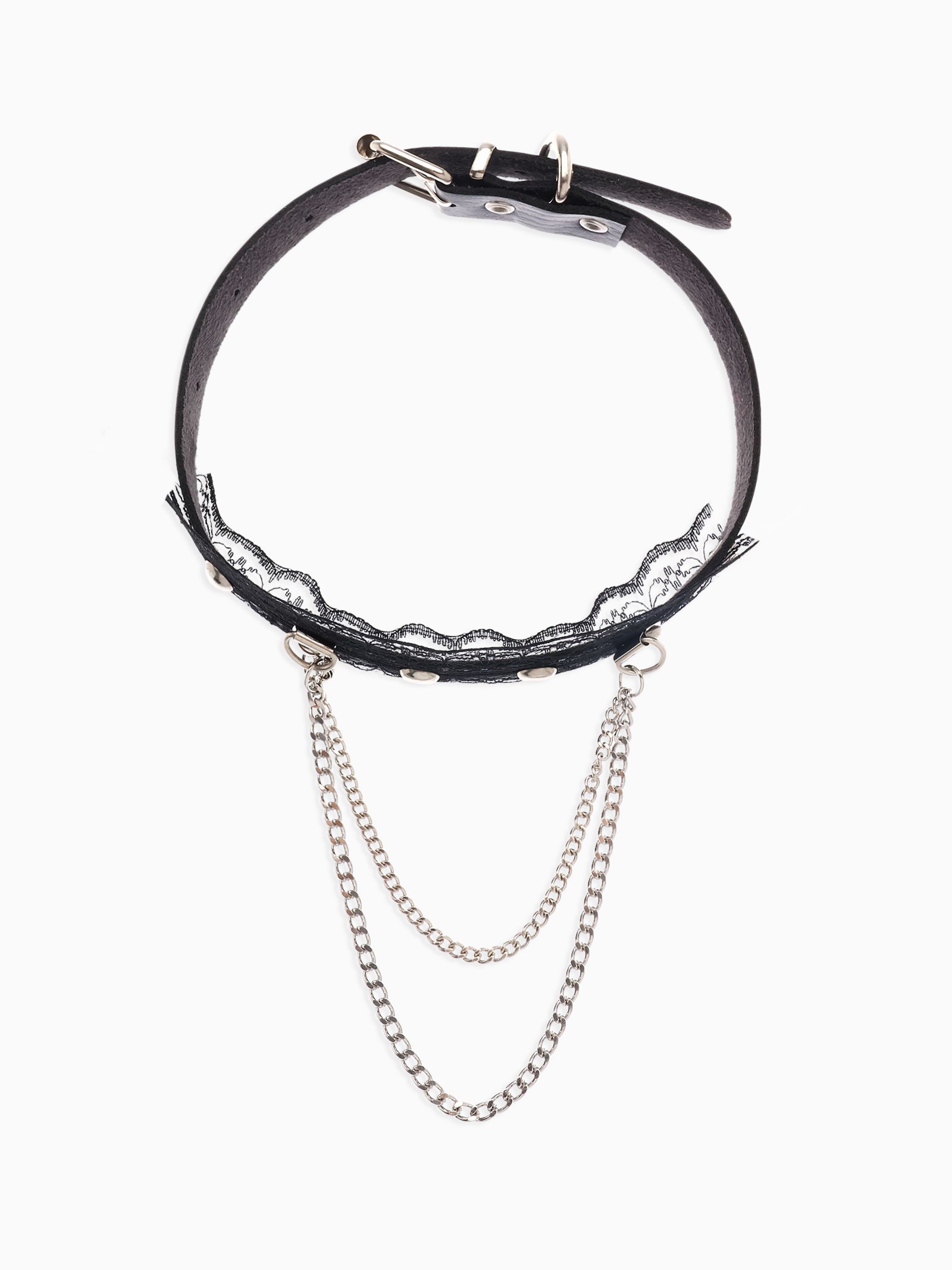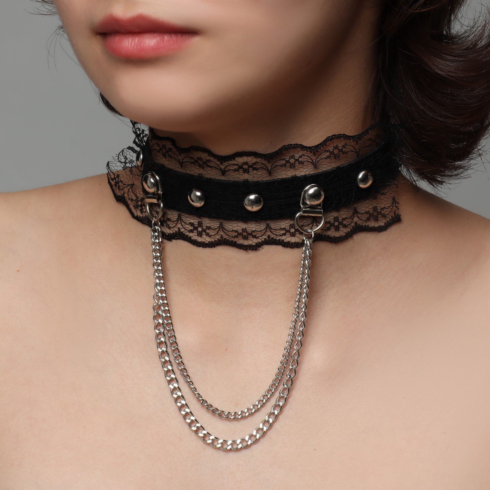 Чокер "Искушение" кружево с цепями, цвет чёрный в серебре, 40 см, 4.5x40x0.6 см., QF, Китай