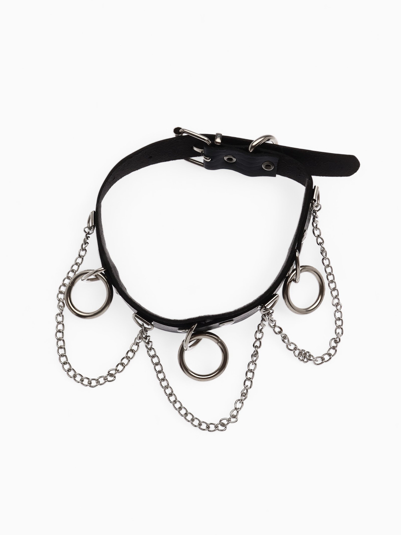 Чокер "Искушение" цепи и кольца, цвет чёрный в серебре, 40 см, 9.5x40x2 см., QF, Китай