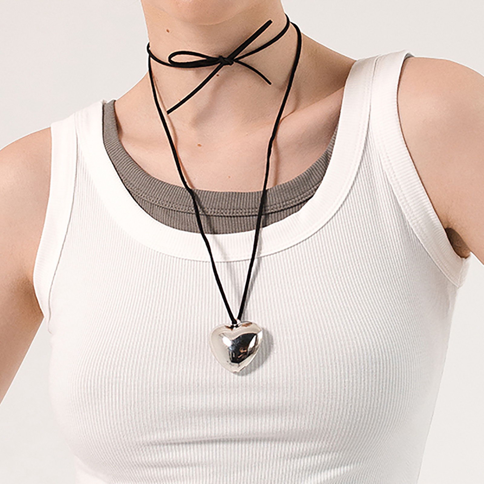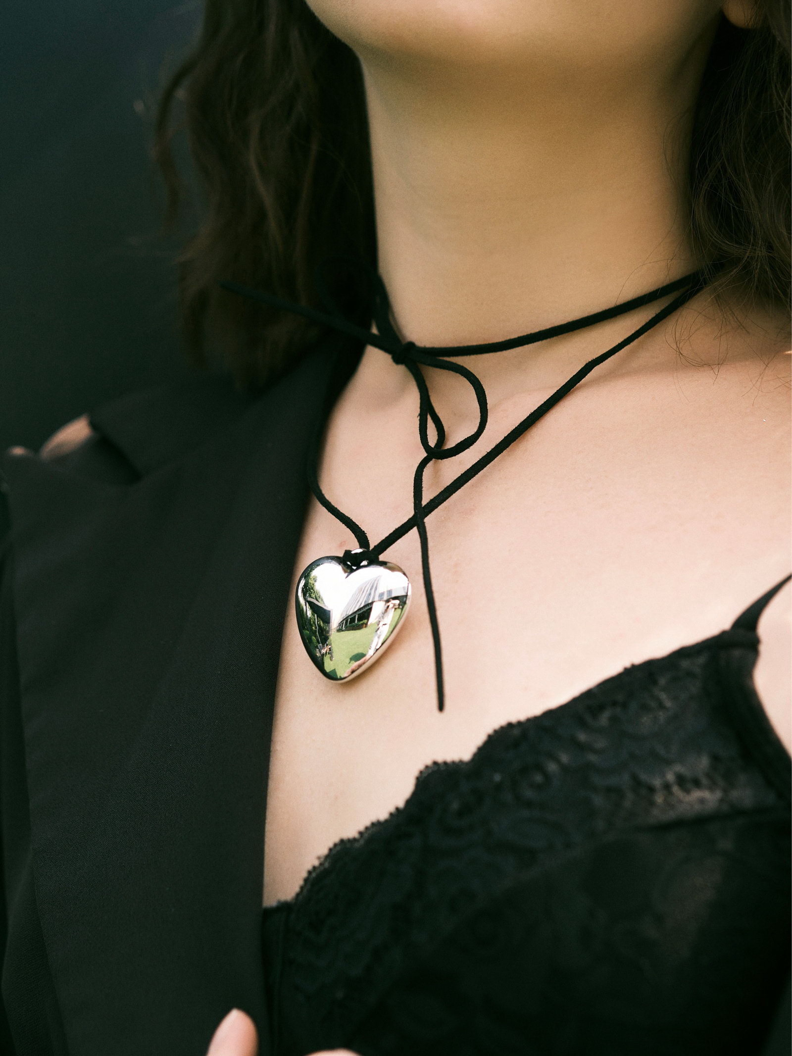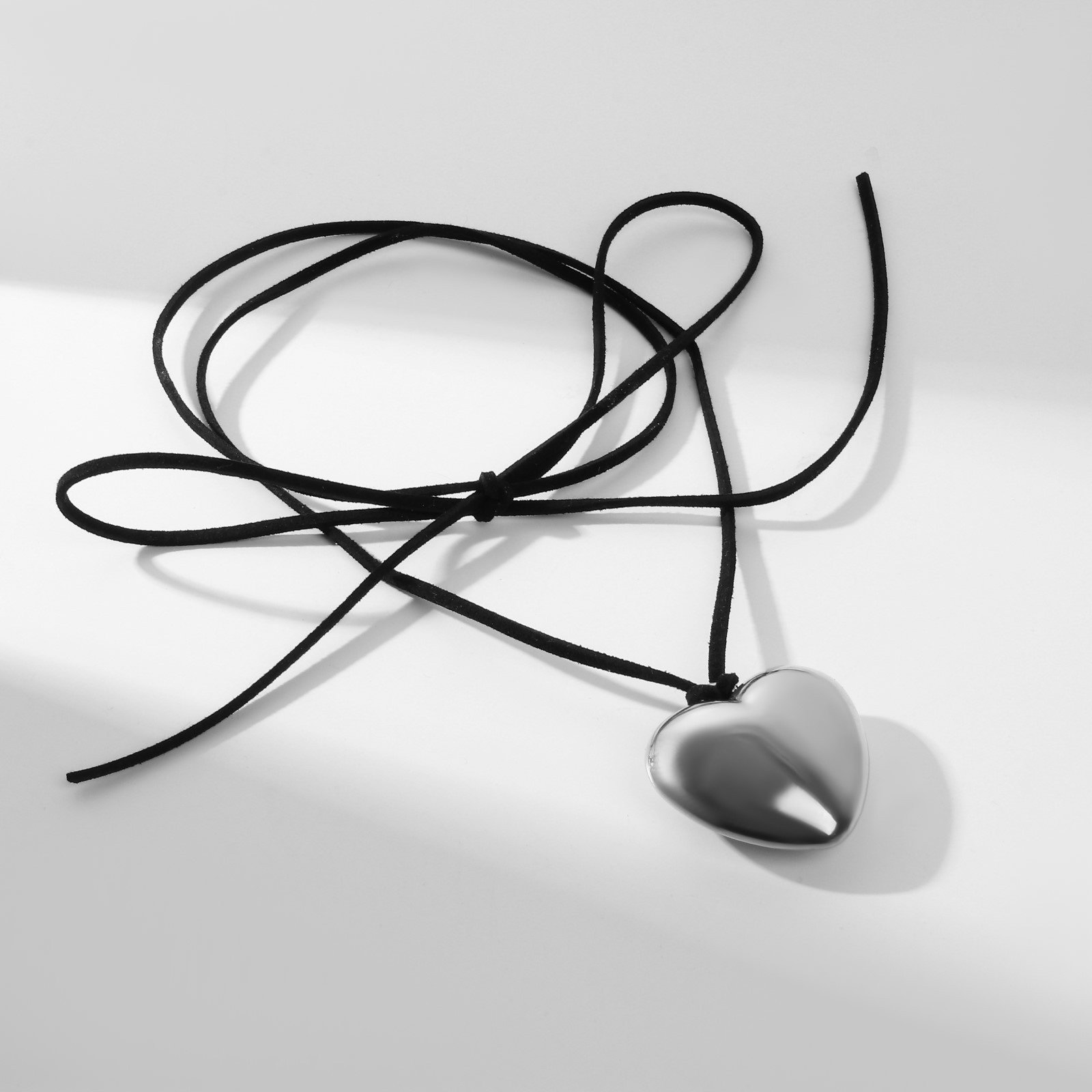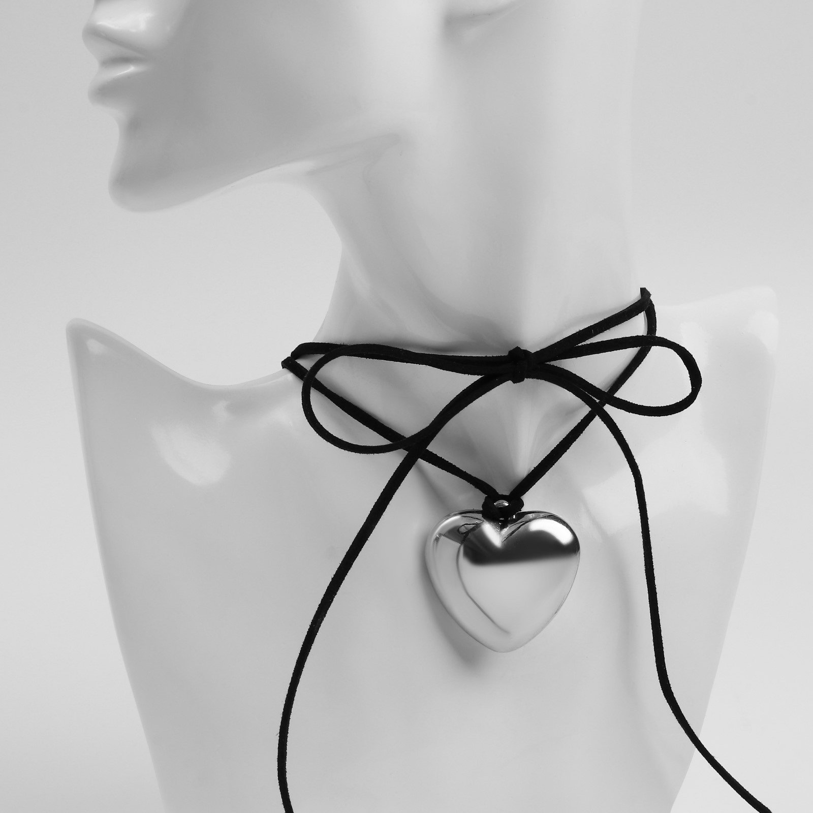 Чокер "Сердце" крупное, металлик, чёрный в серебре, 60 см, 2.5x60x1 см., QF, Китай