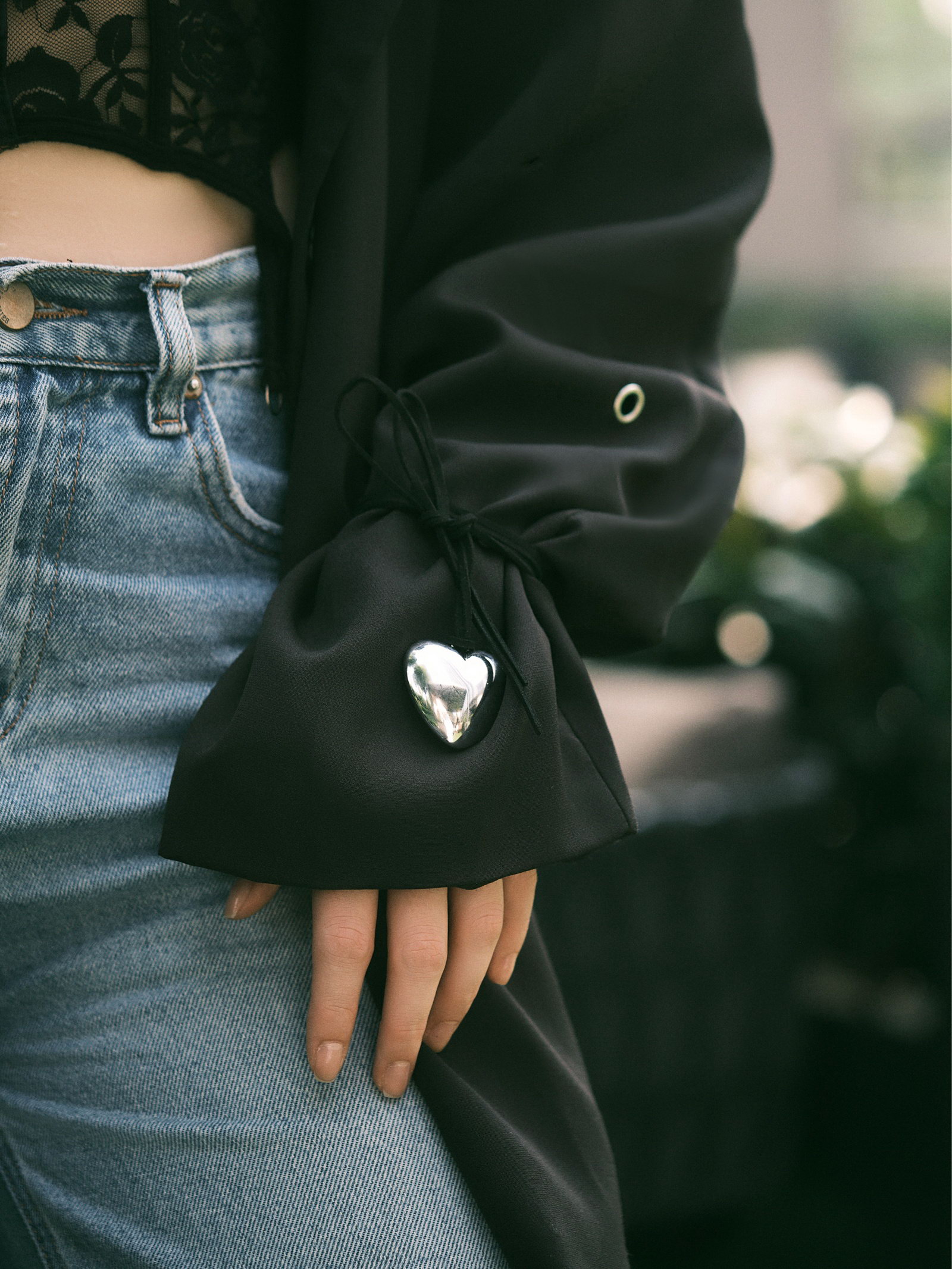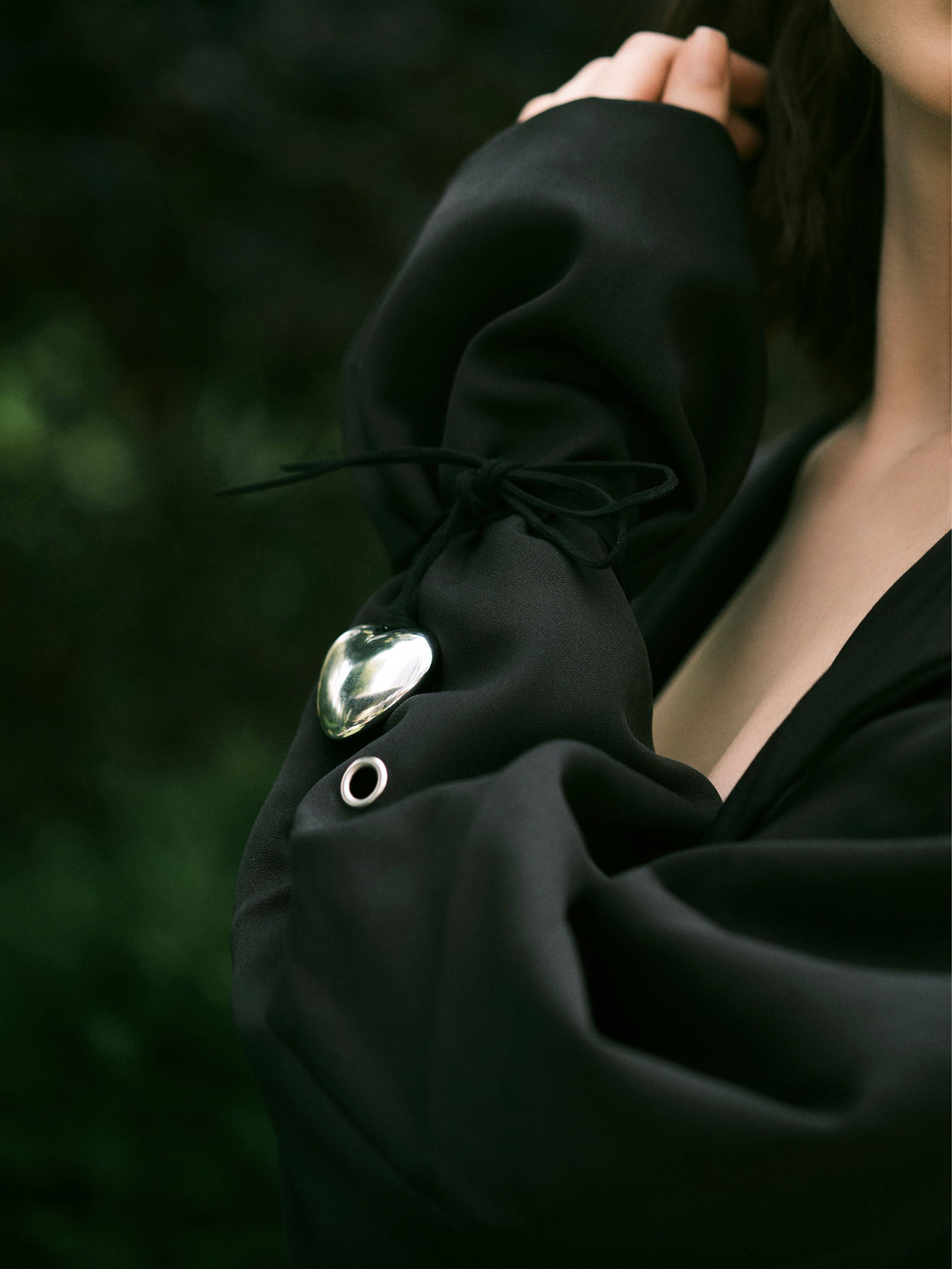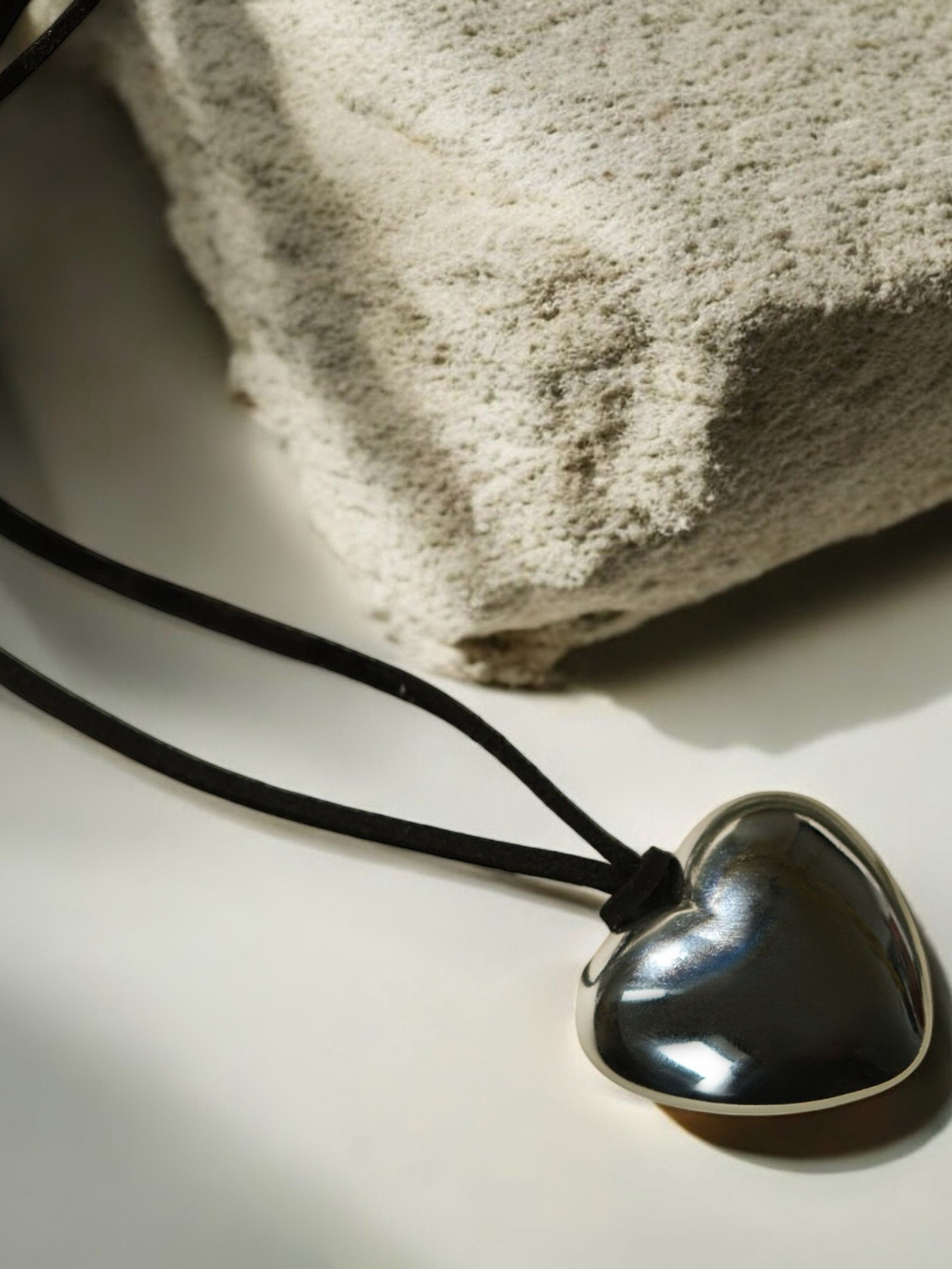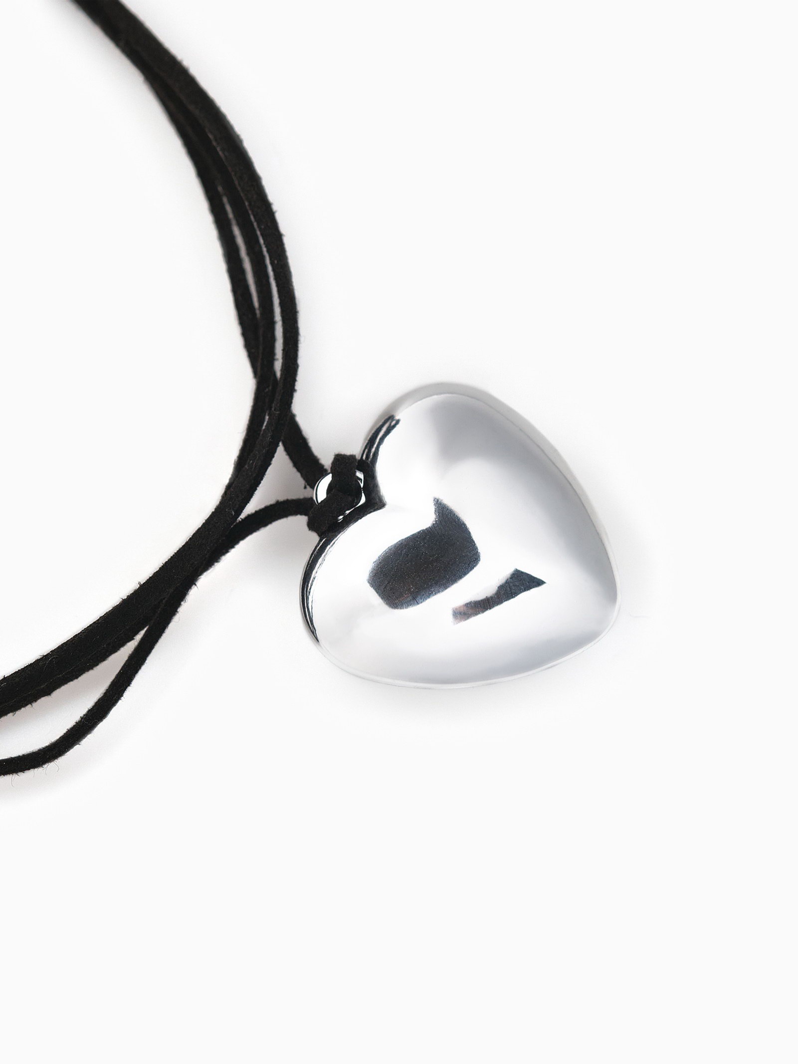 Чокер "Сердце" крупное, металлик, чёрный в серебре, 60 см, 2.5x60x1 см., QF, Китай