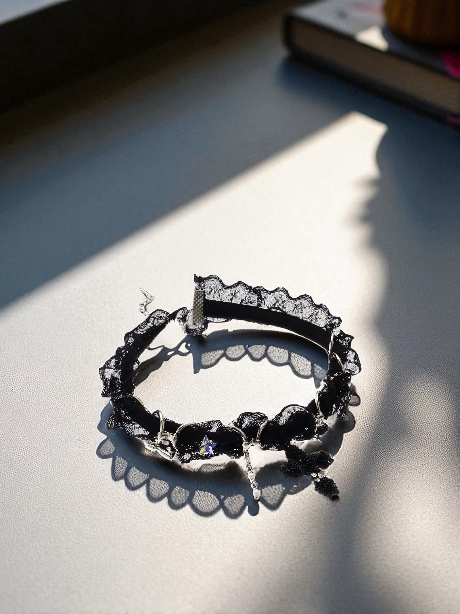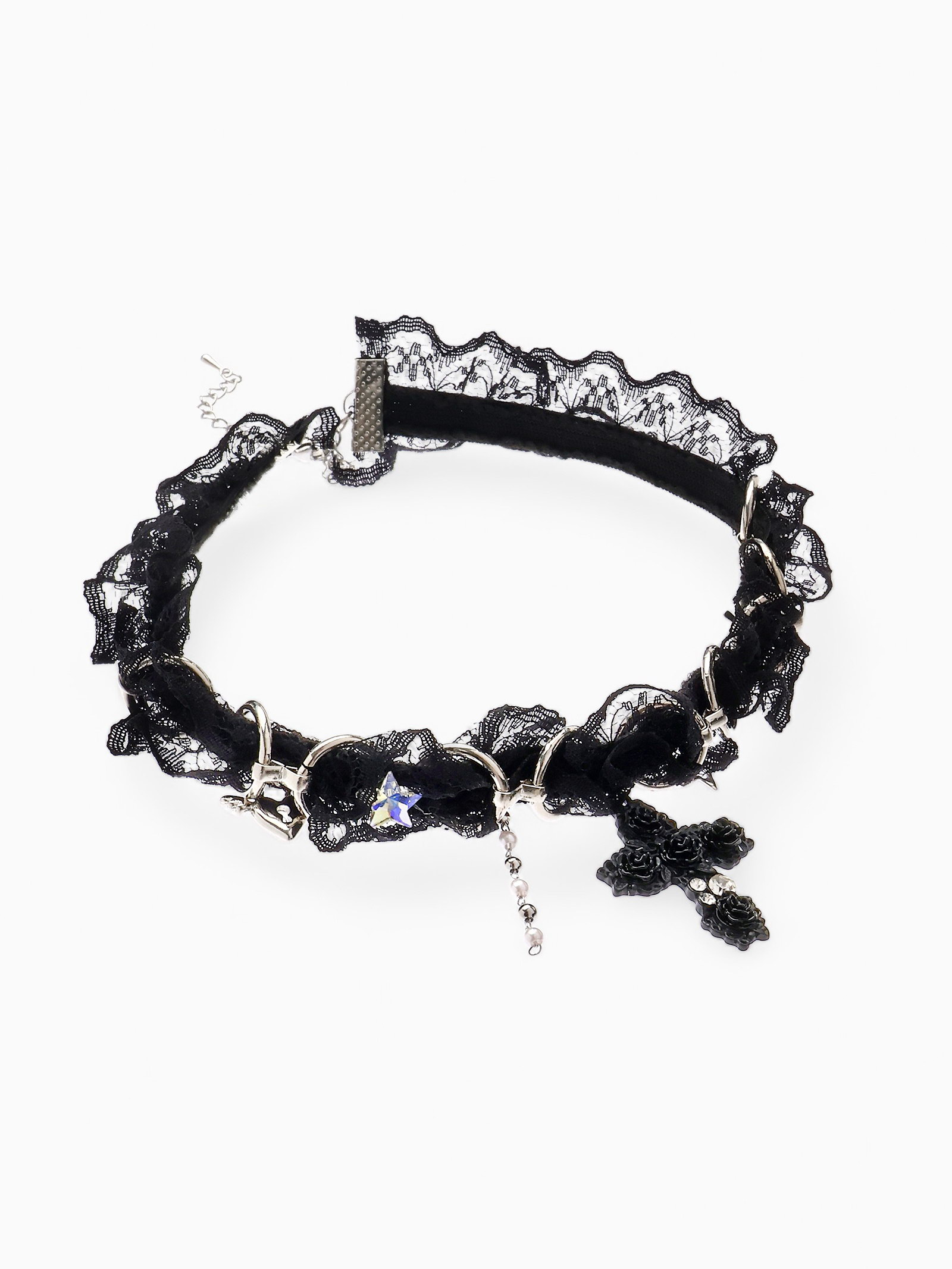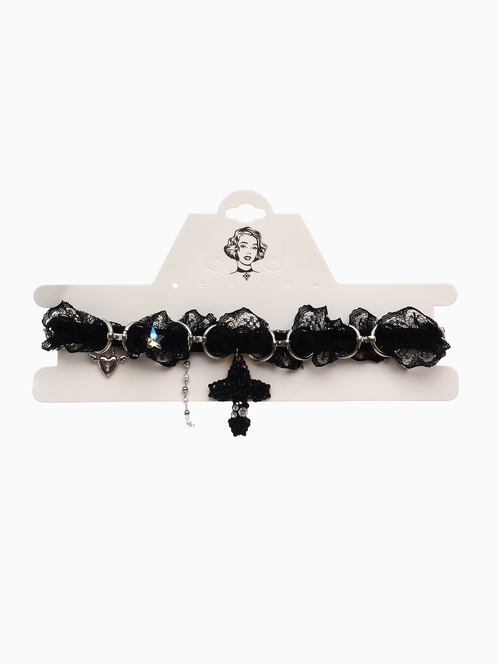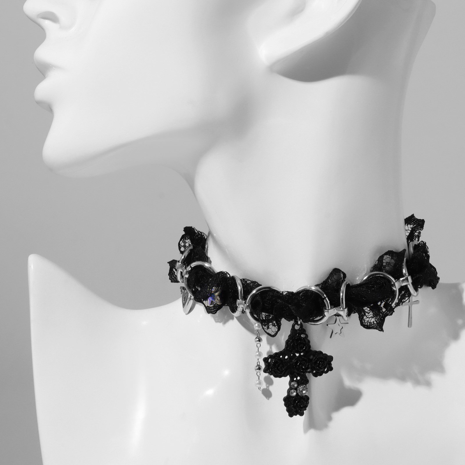 Выразительность сдержанной формы Этот чокер создаёт баланс между минимализмом и выразительностью за счёт простого текстильного ремешка и акцентного крестика. Он подчёркивает линию шеи, добавляя лёгкий готический или рок-штрих в повседневный или праздничный образ. | ||
