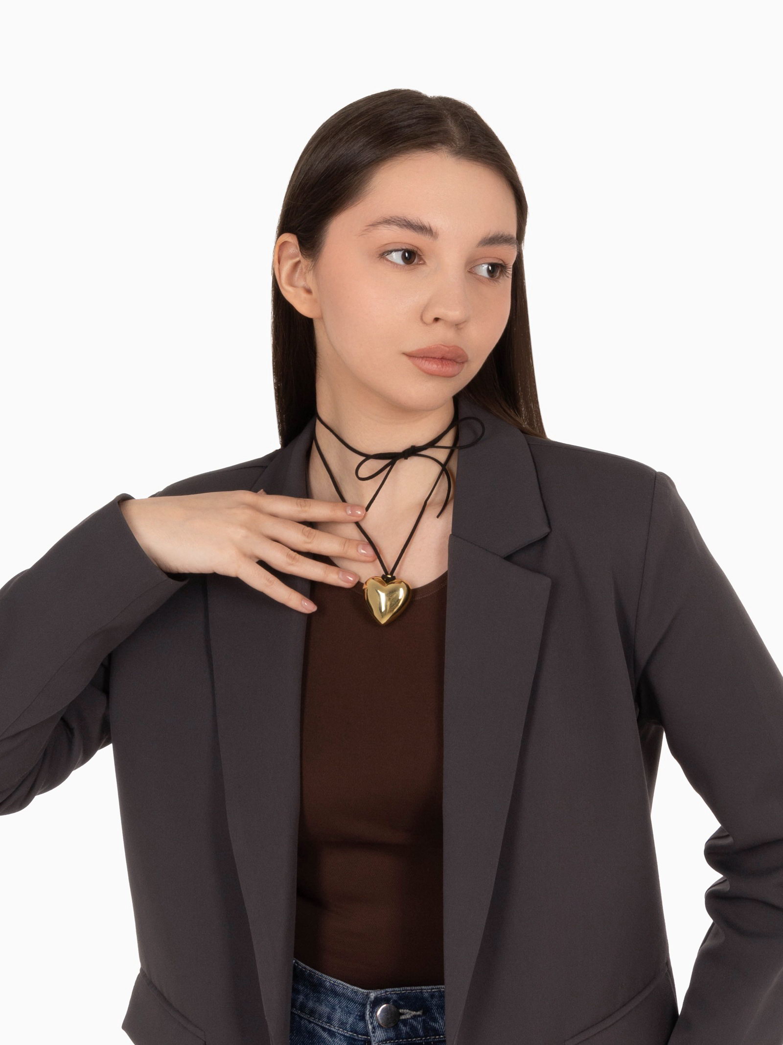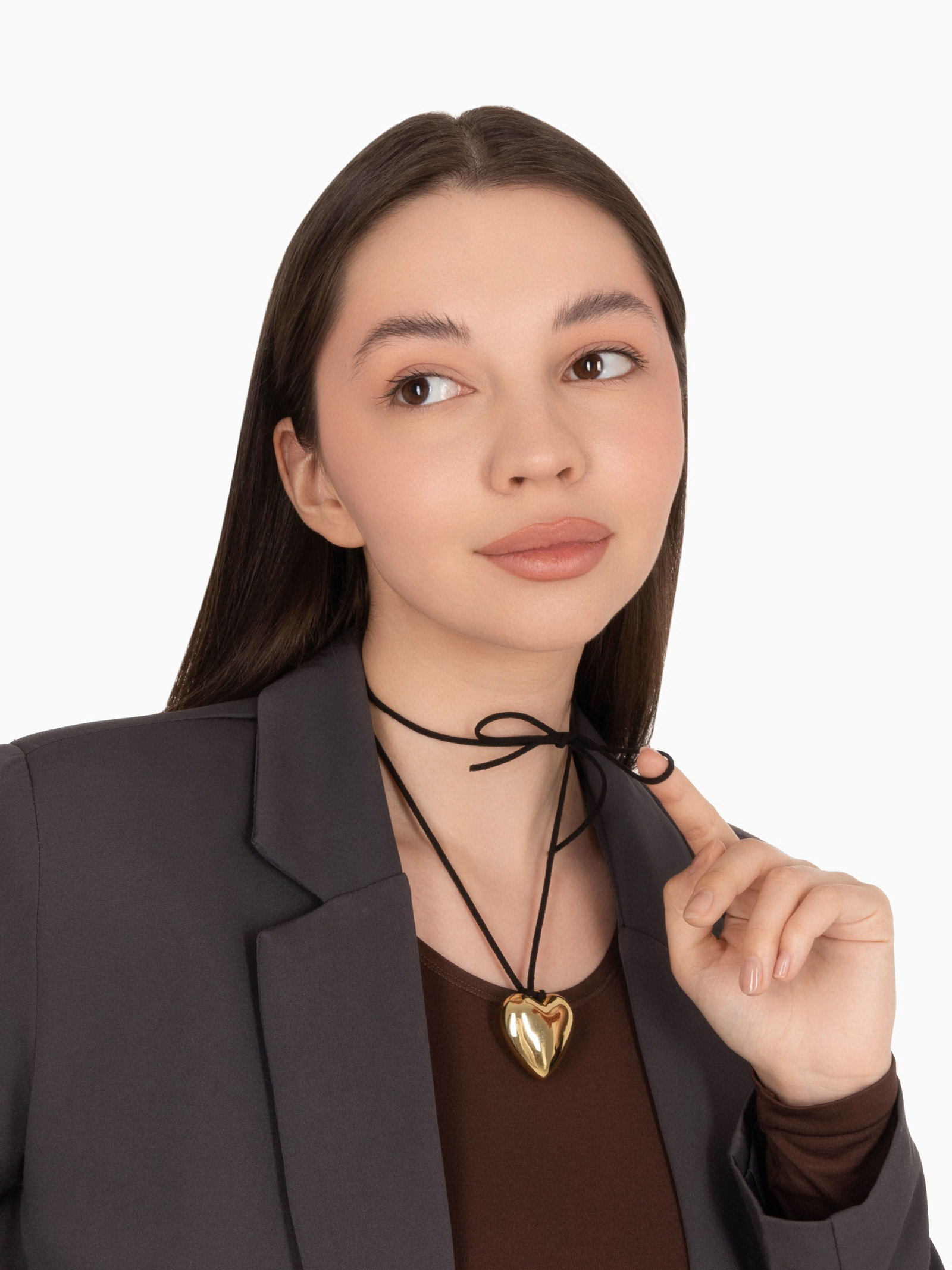 Чокер/кулон на шнурке "Сердце" крупное, металлик, цвет чёрный в золоте, 60 см, 2.5x60x1 см., QF, Китай