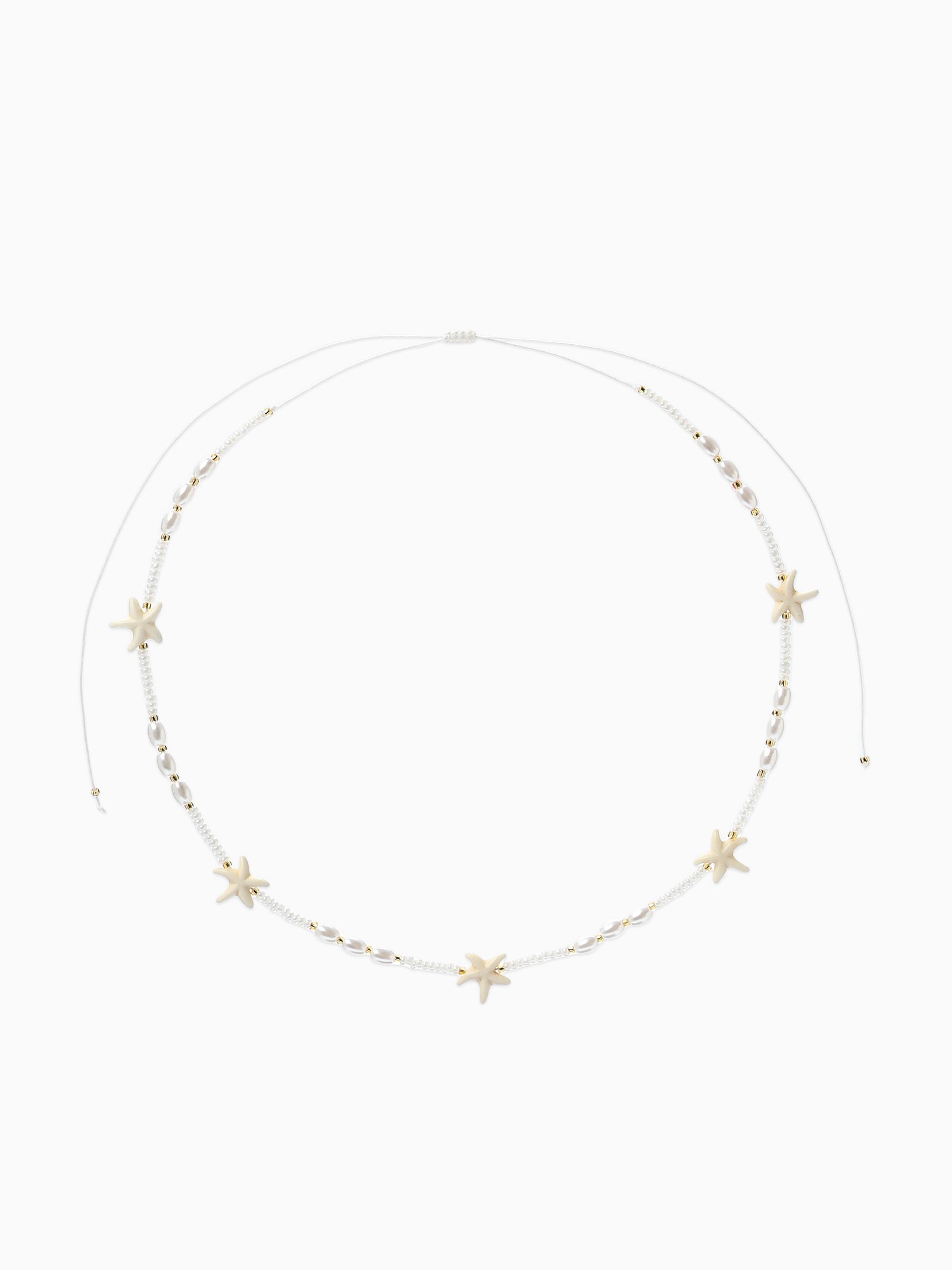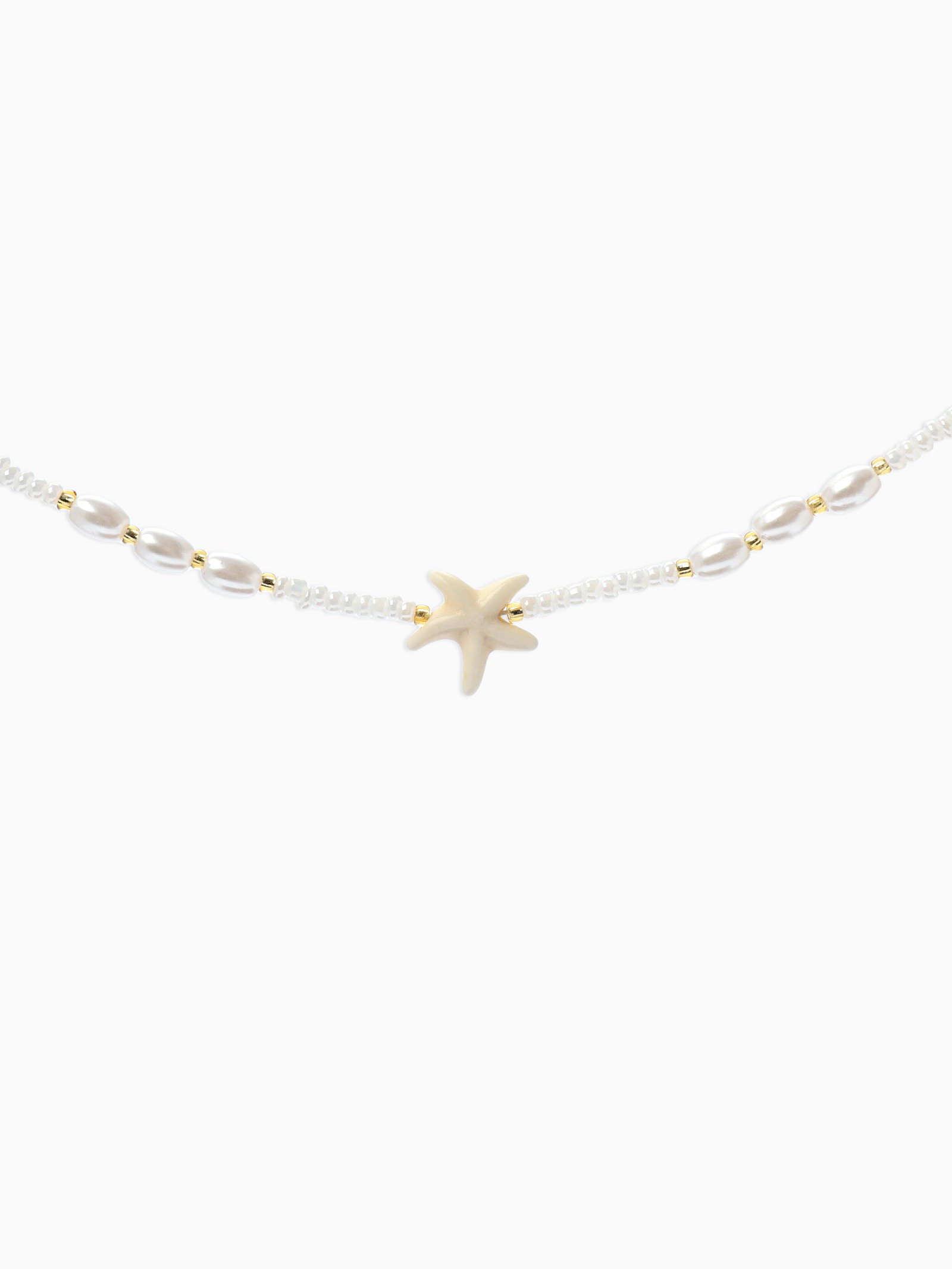 Чокер "Морской мир. Звезда, жемчуг", белый в золоте, 1x40x0.4 см., QF, Китай
