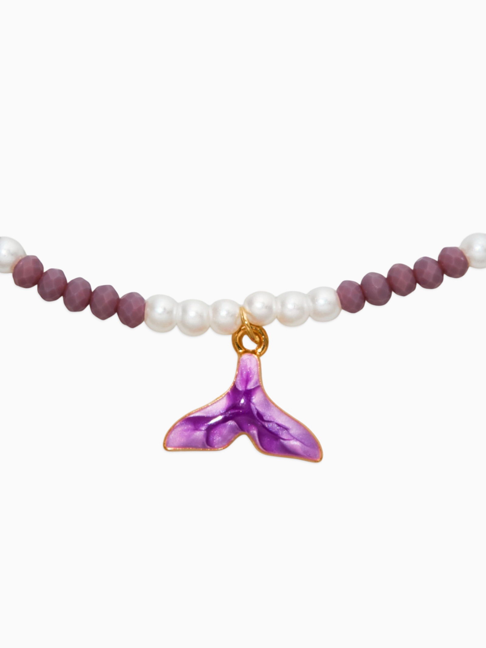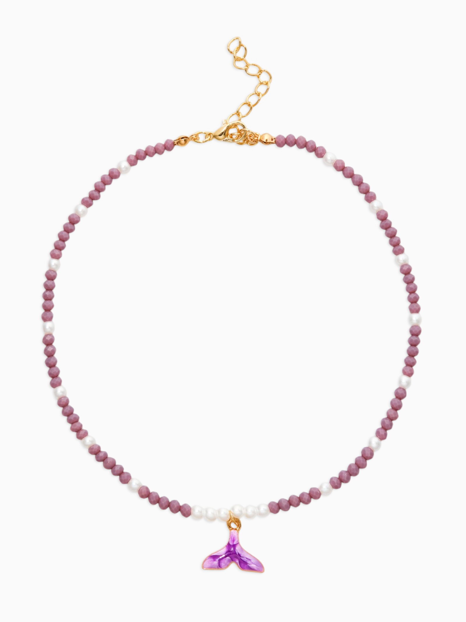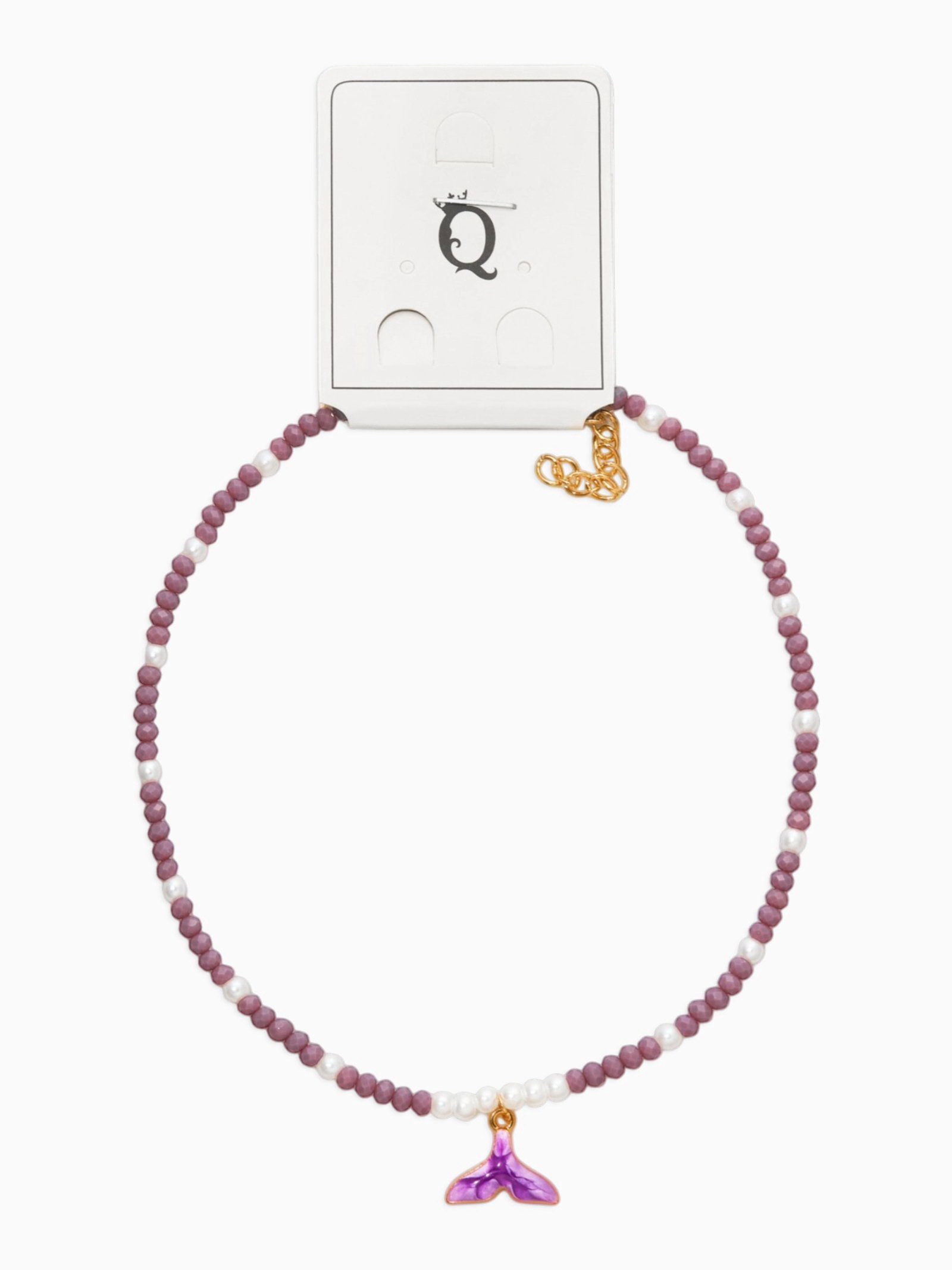 Чокер "Морской мир. Хвост русалки с жемчугом", фиолетовый, белый в золоте, 0.9x40x0.4 см., QF, Китай