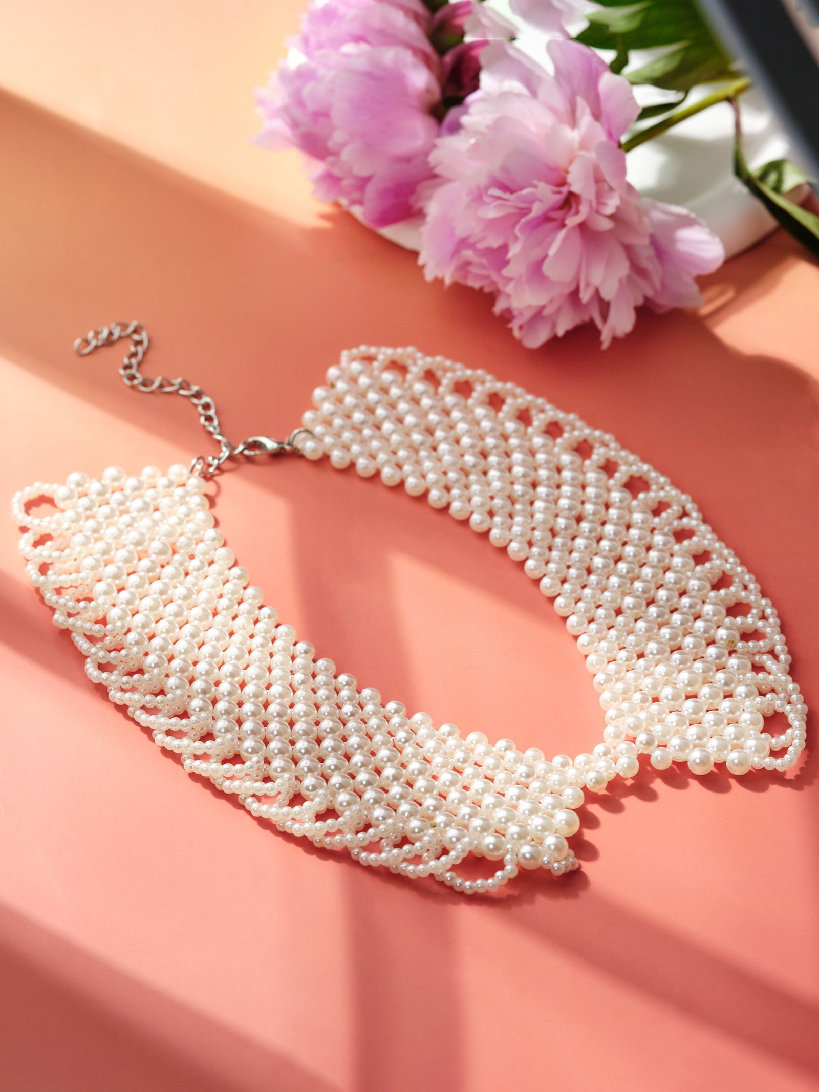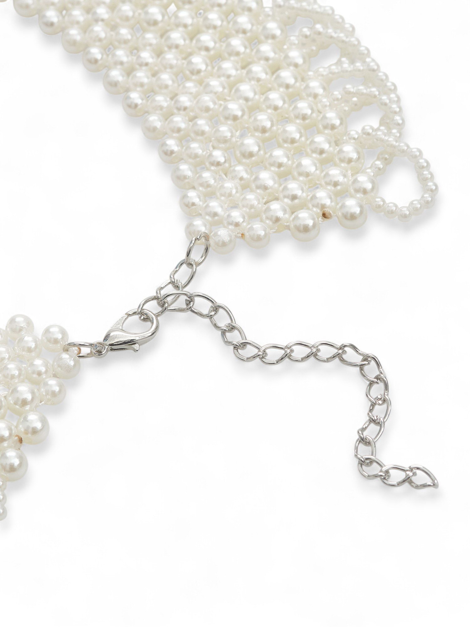 Колье "Жемчужное ассорти" воротничок ажур, шар №2.4,6, белое, L= 36 см, 5x36x0.5 см., QF, Китай