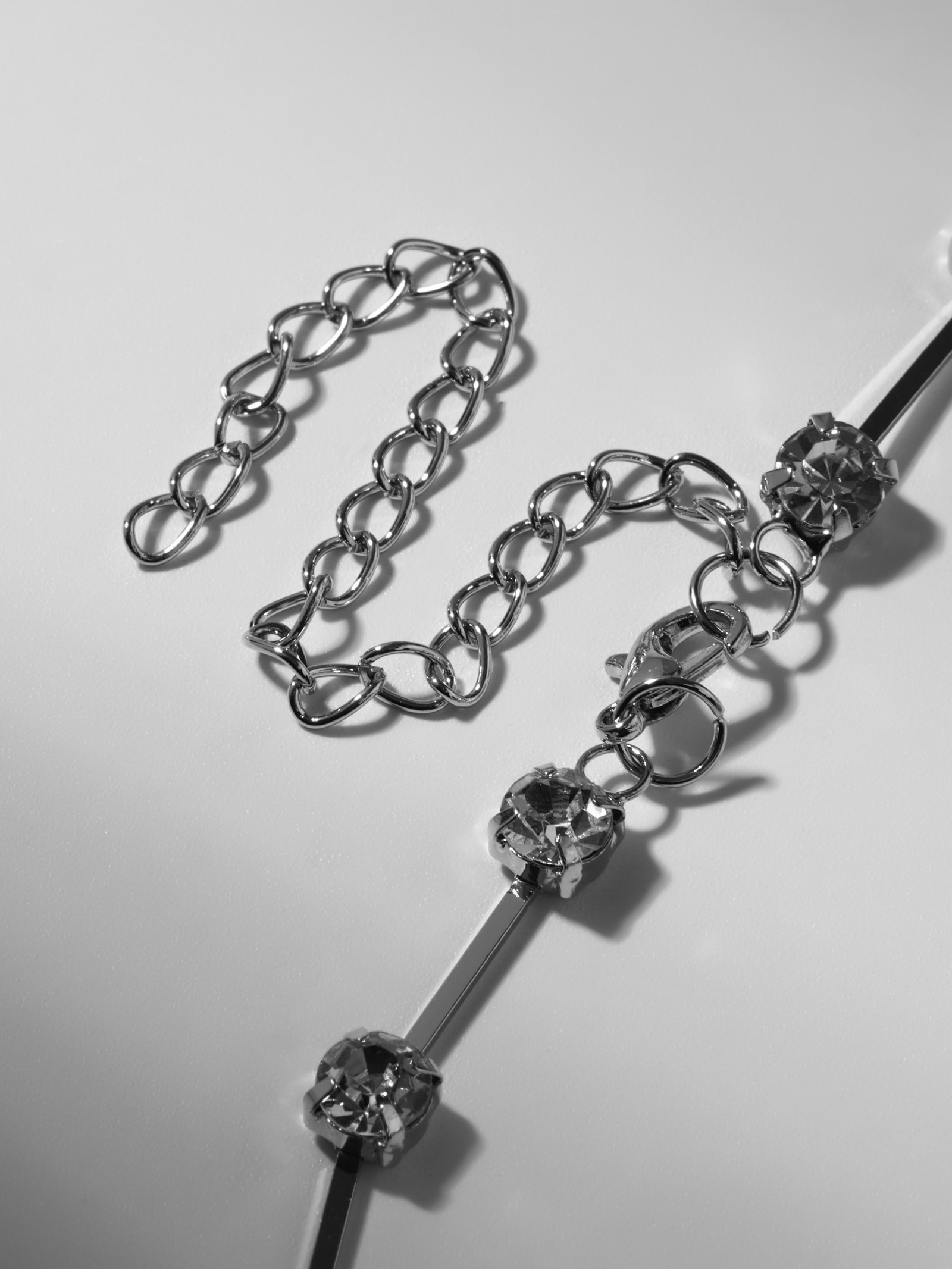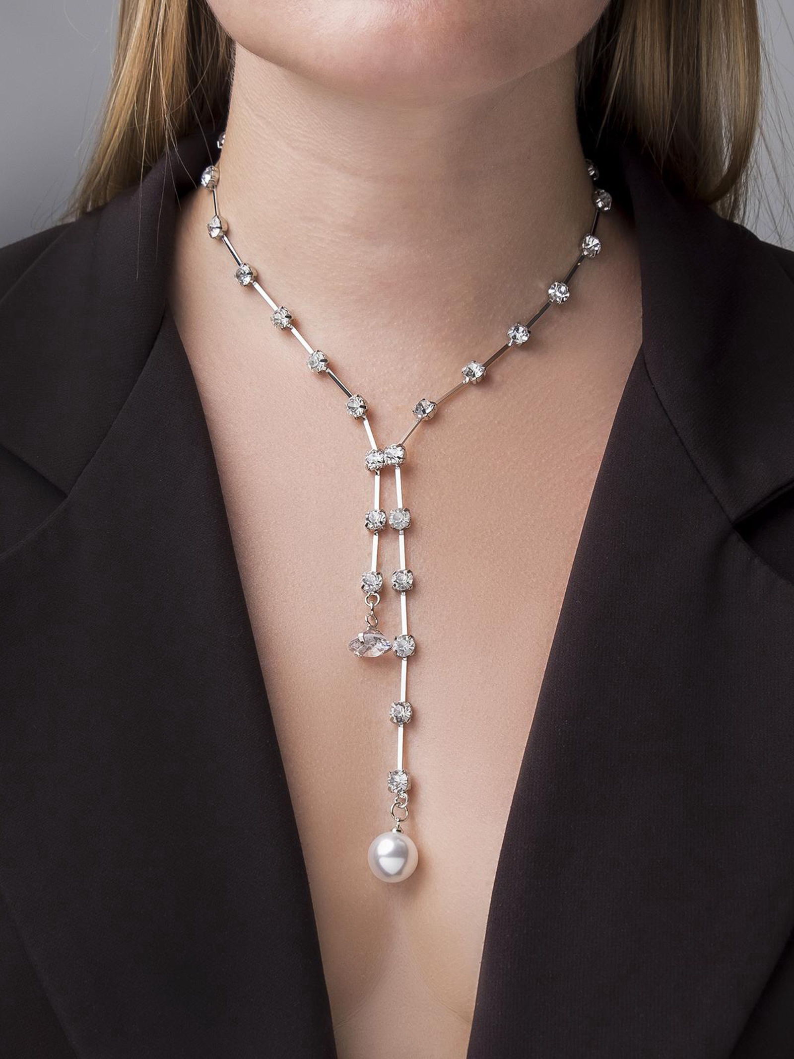 Колье с жемчугом "Цепь" импровизация, шар №8, белое в серебре, L= 40 см, 1.4x40x1.4 см., QF, Китай