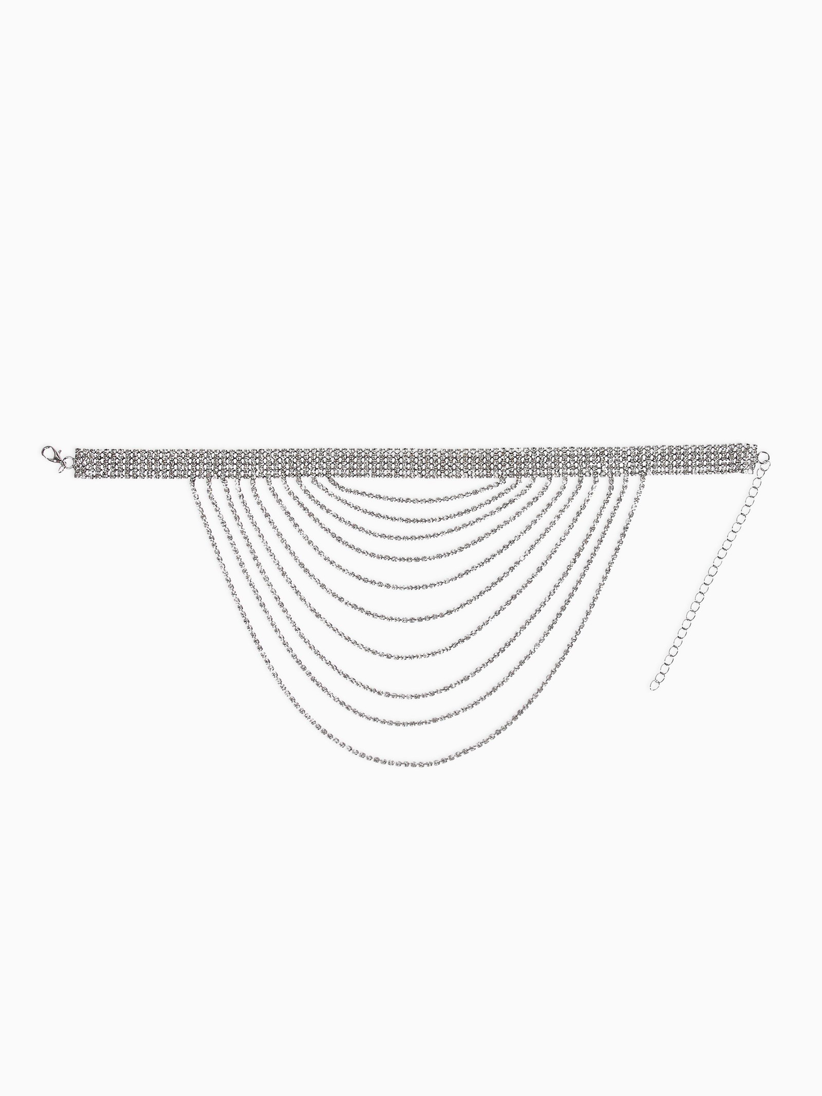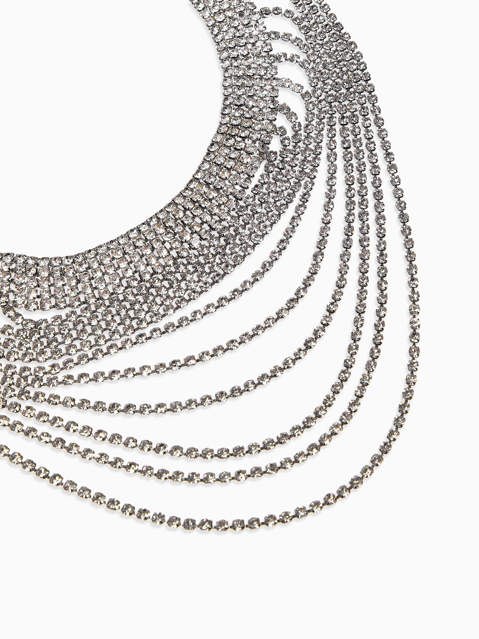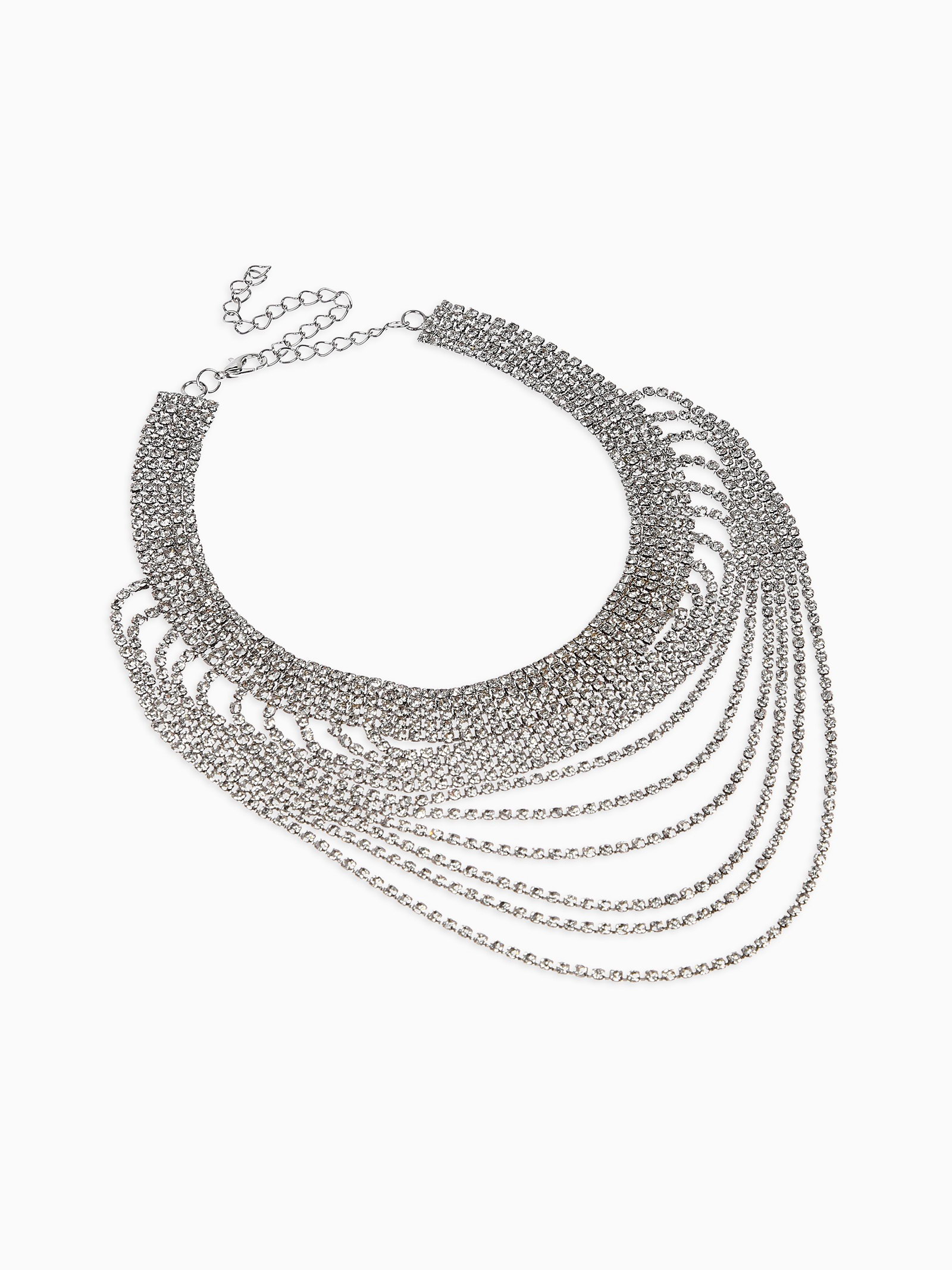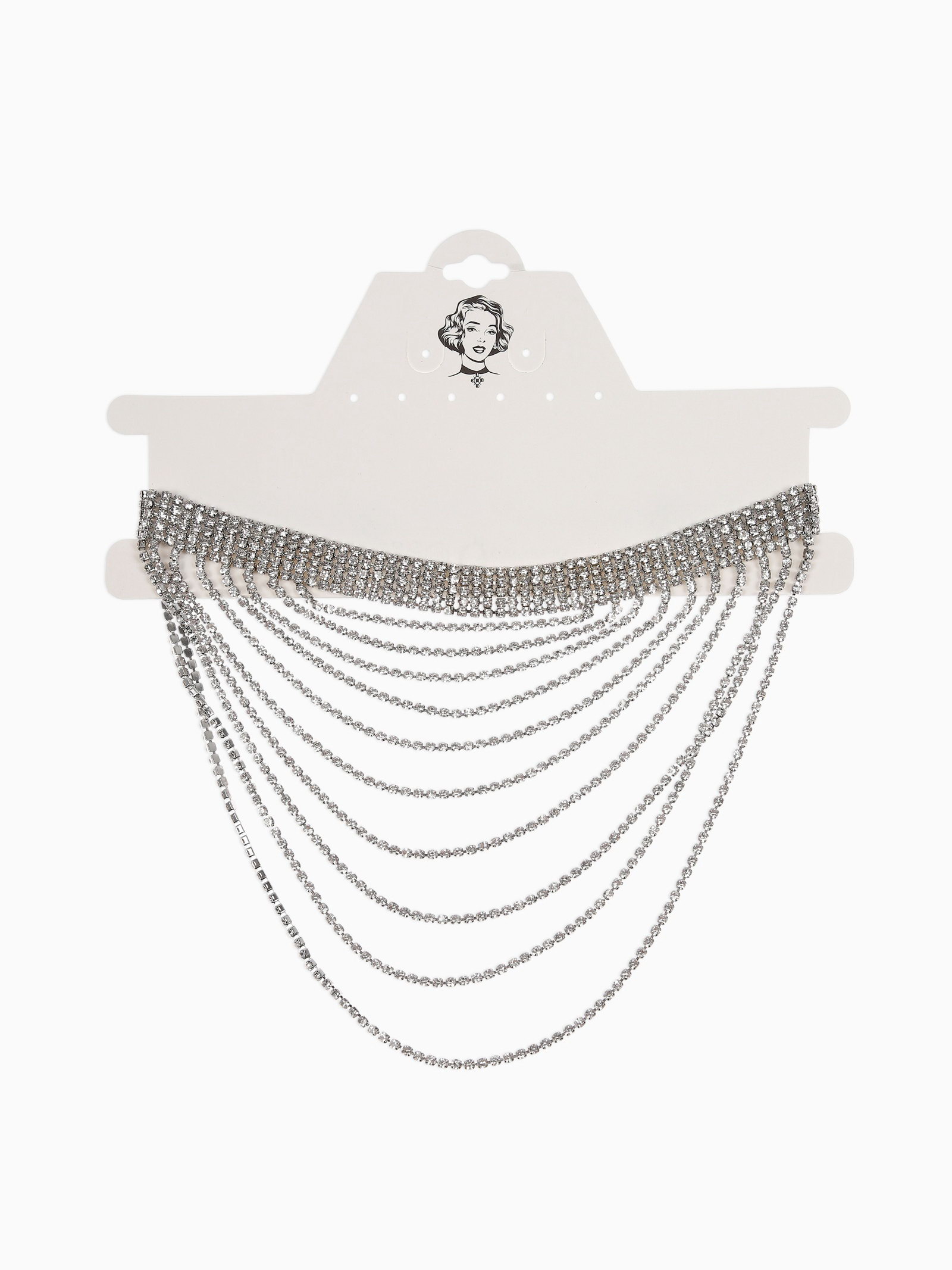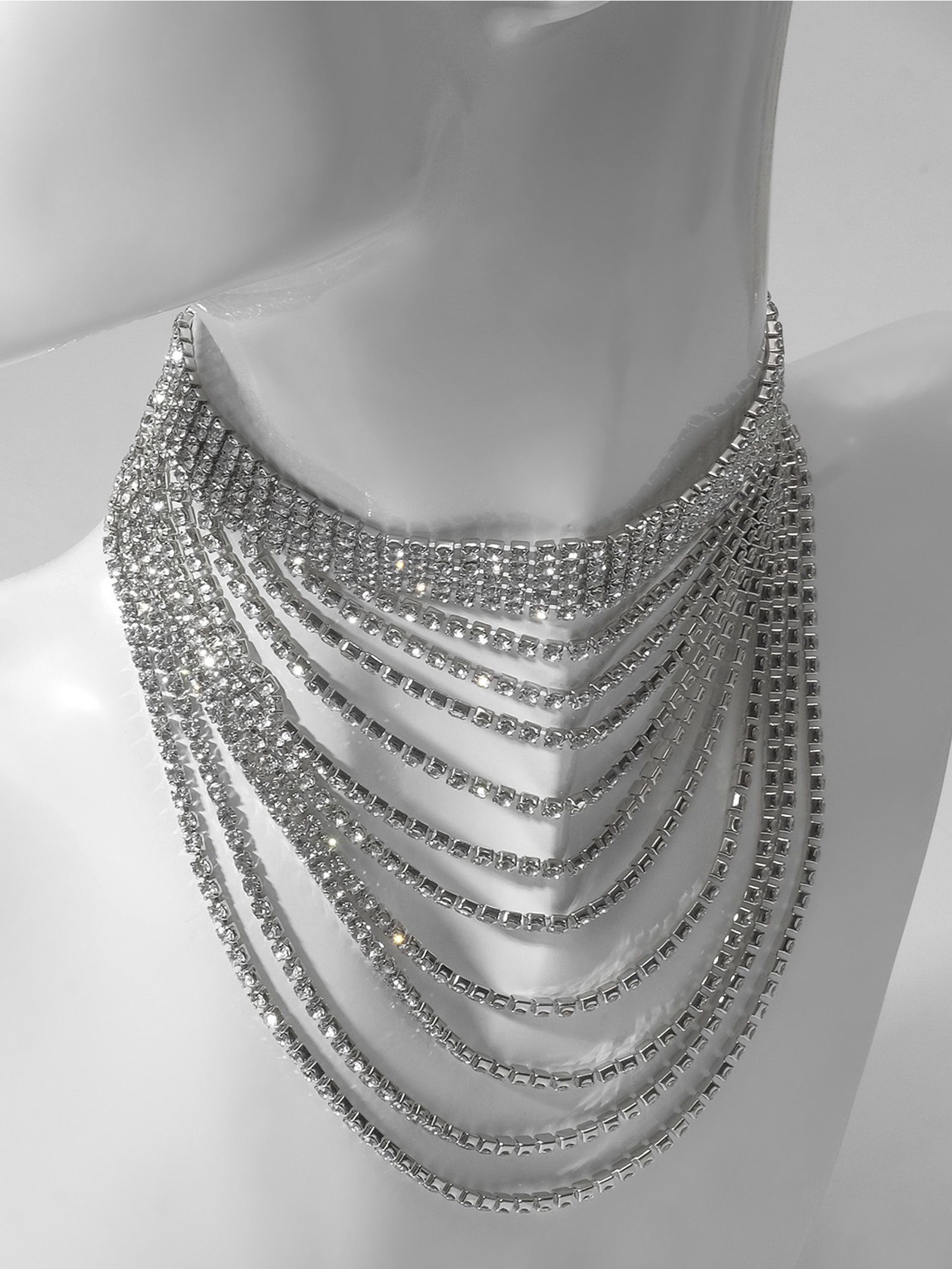 Колье "Водопад" волна, цвет белый в серебре, 25 см, 13x25x0.5 см., QF, Китай