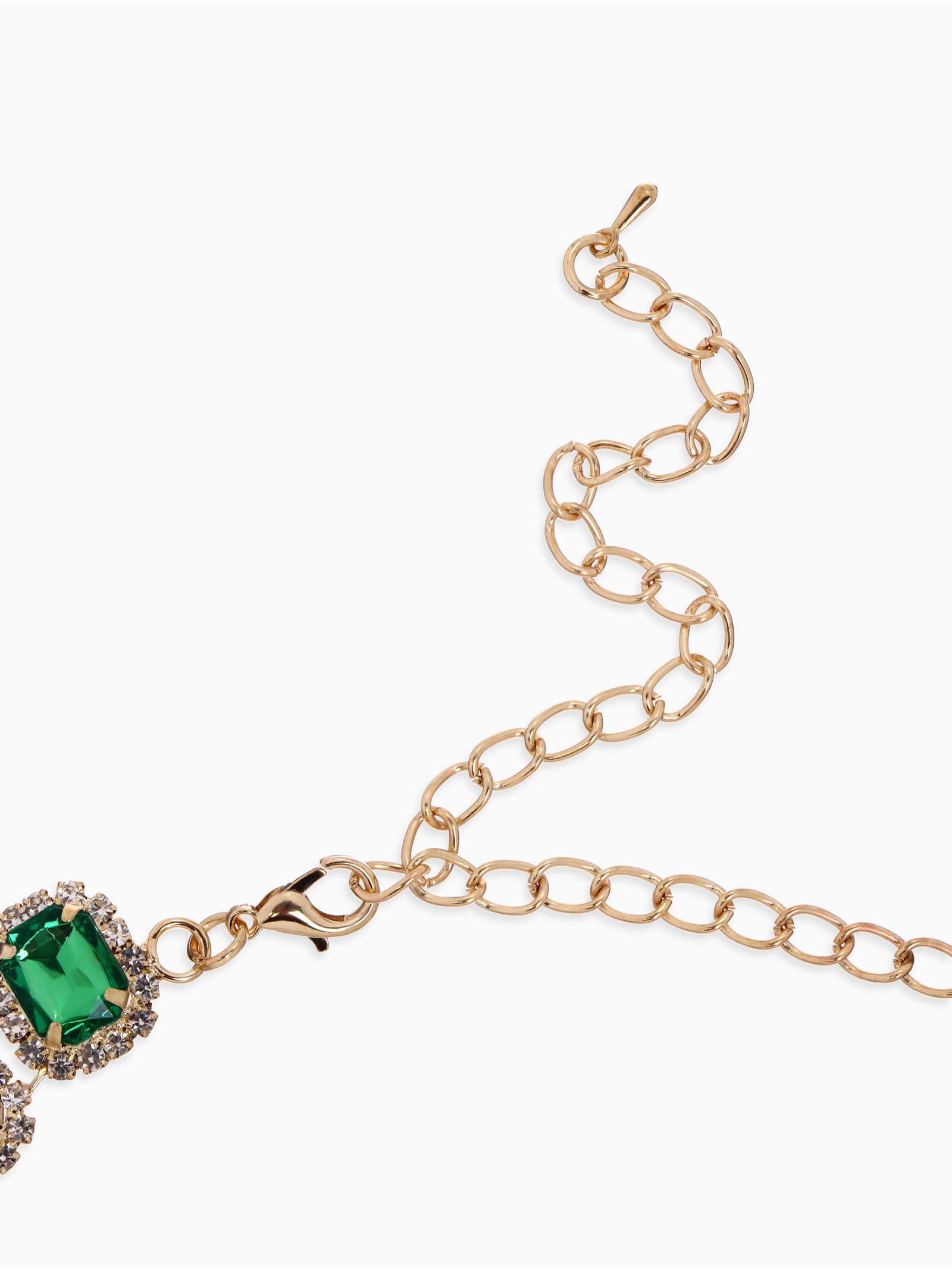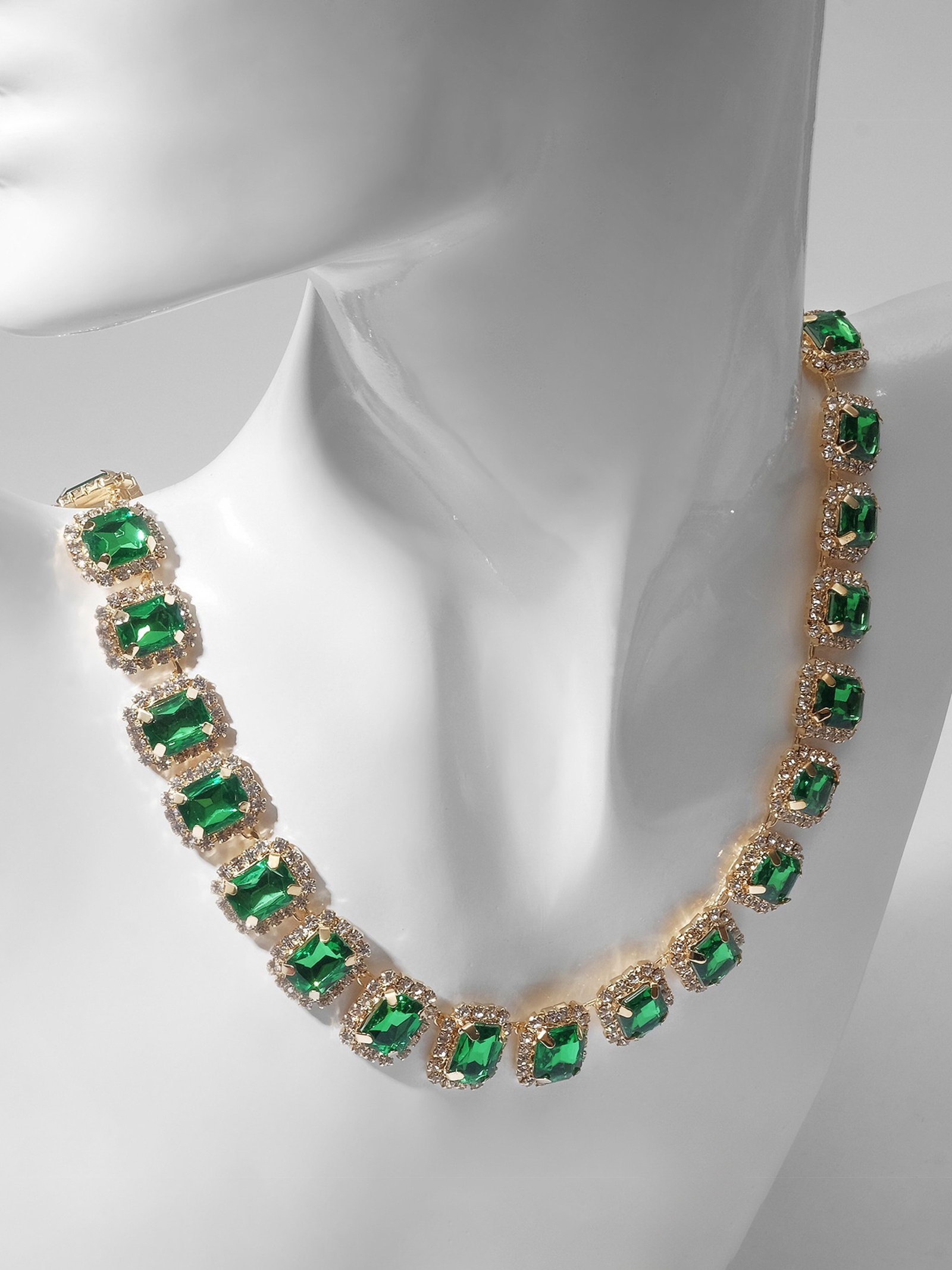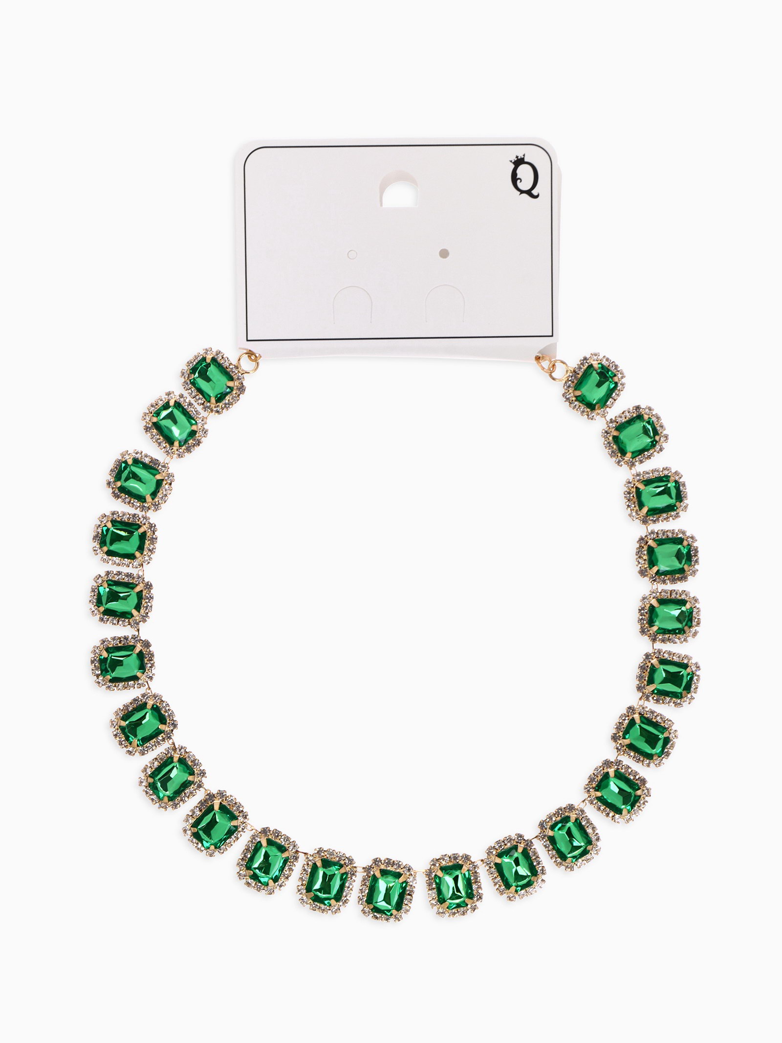 Колье "Драгоценность" квадраты в стразах, цвет бело-зелёный в золоте, 32 см, 1.5x32x1.2 см., QF, Китай