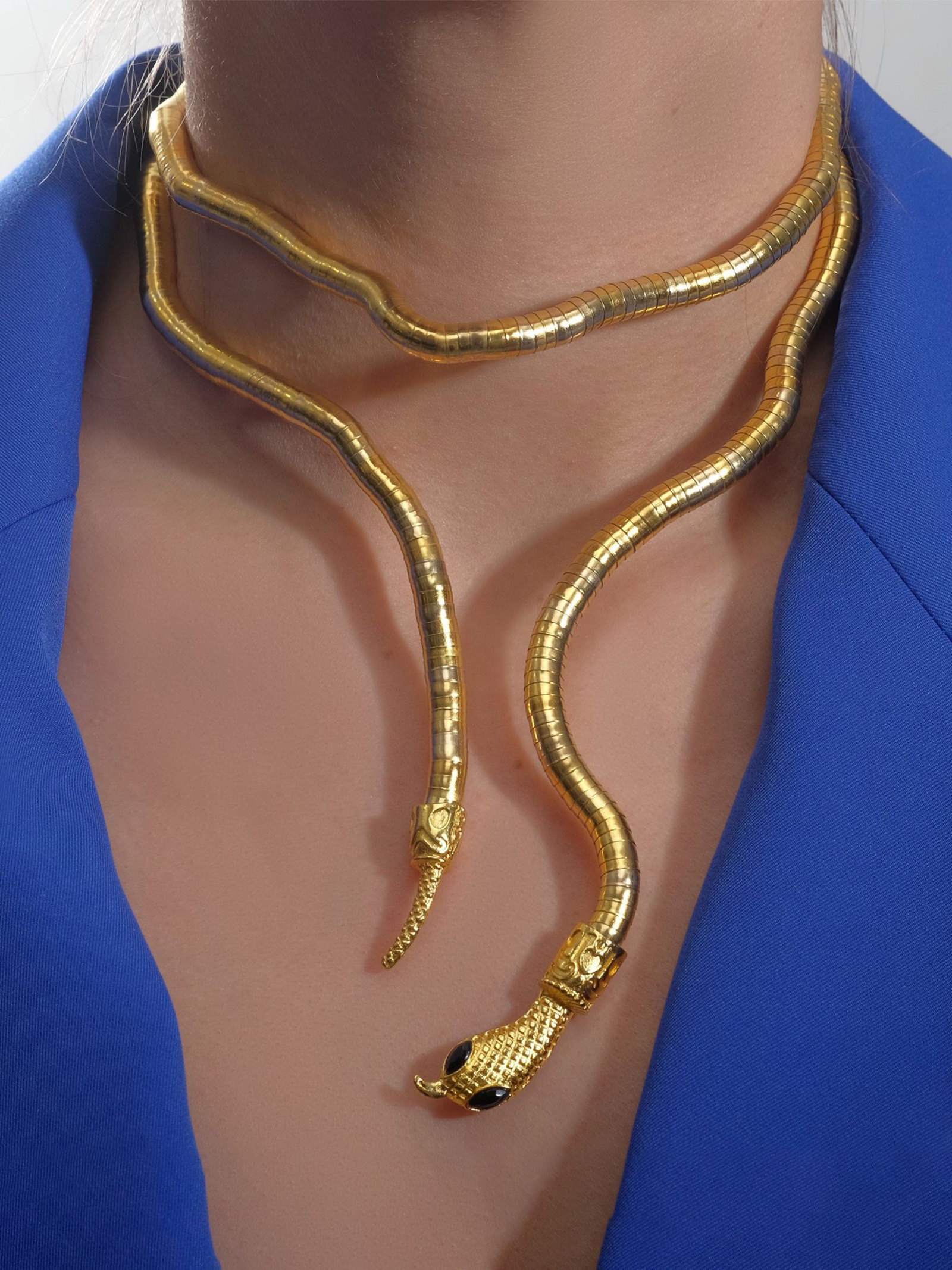Колье-трансформер "Змея", цвет чернёное золото, 90 см, 0.6x90x0.6 см., QF, Китай
