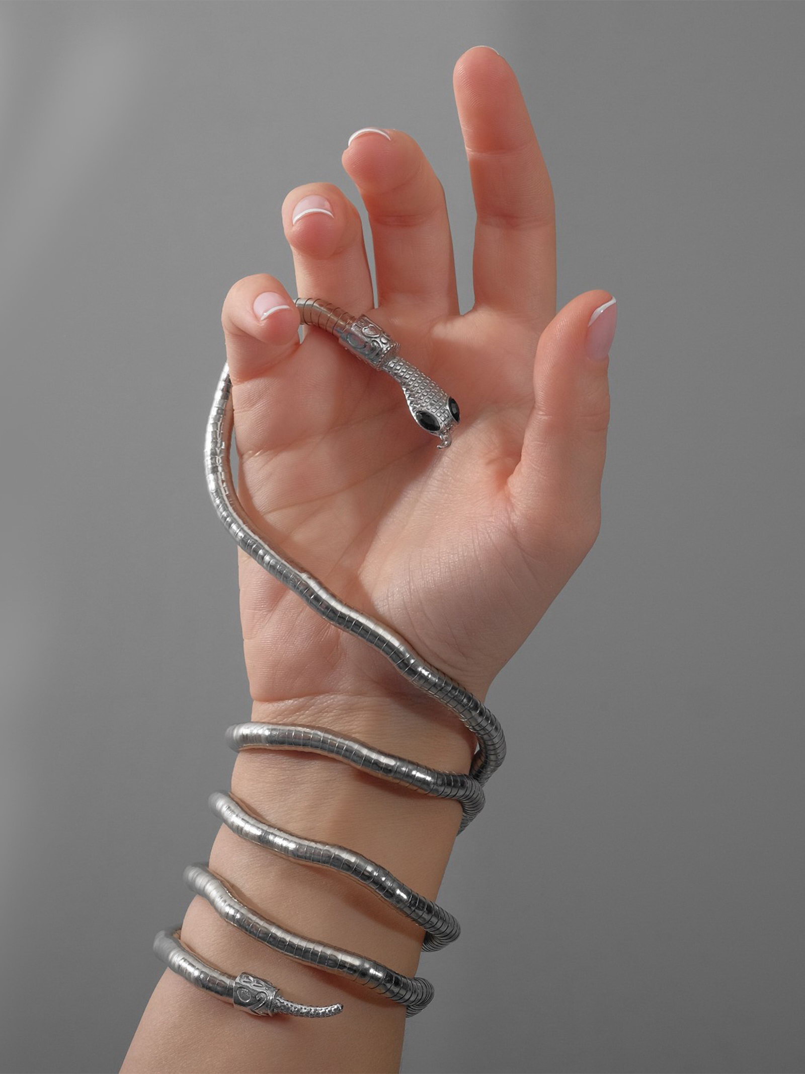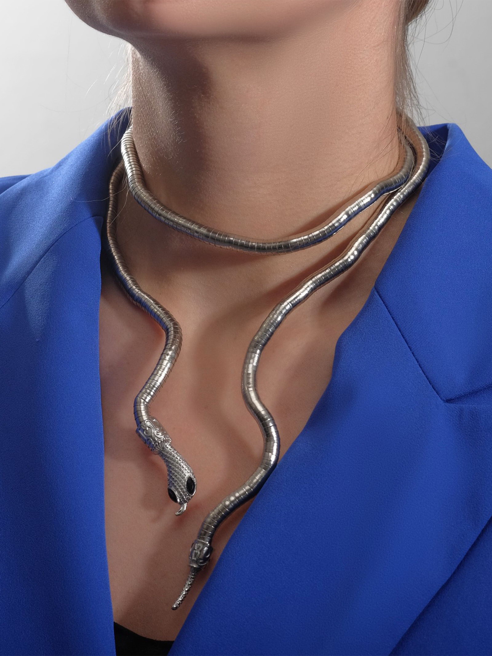 Колье-трансформер "Змея", цвет чернёное серебро, 90 см, 0.6x90x0.6 см., QF, Китай