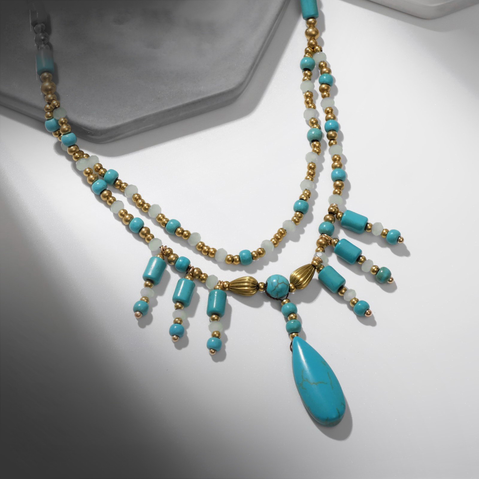 Колье "Индия" бирюза, цвет золотисто-голубой, 32 см, 1.5x32x1.5 см., QF, Китай