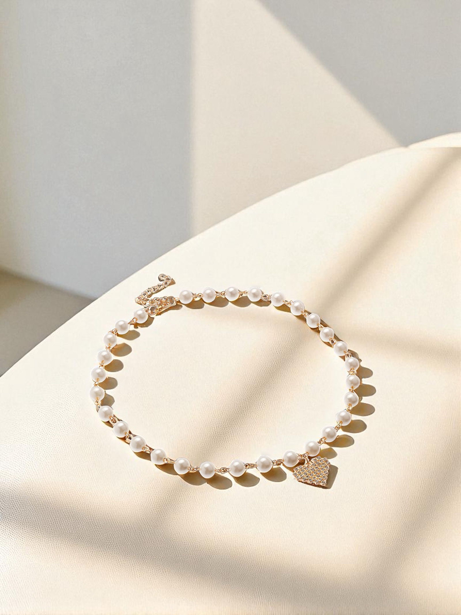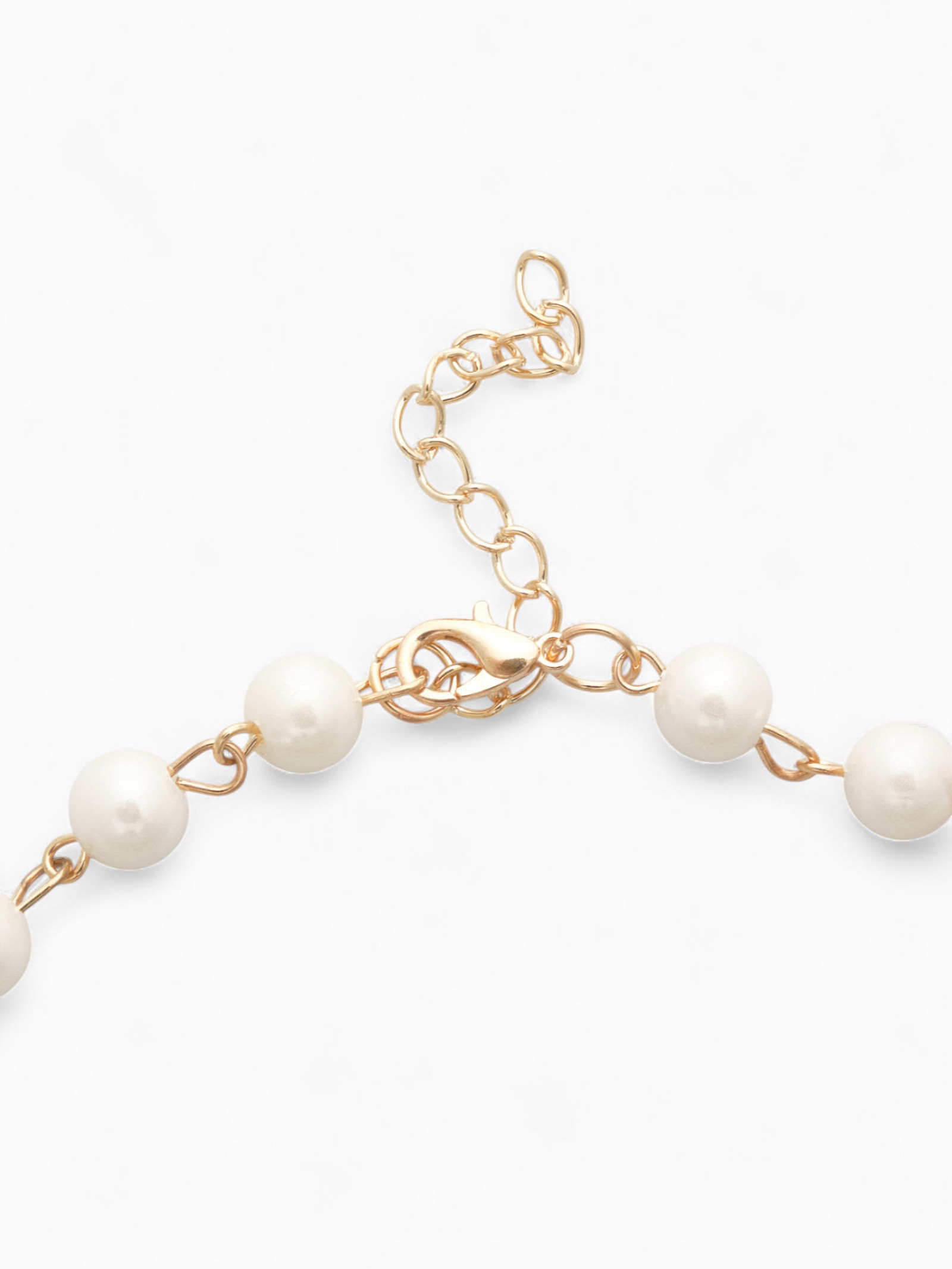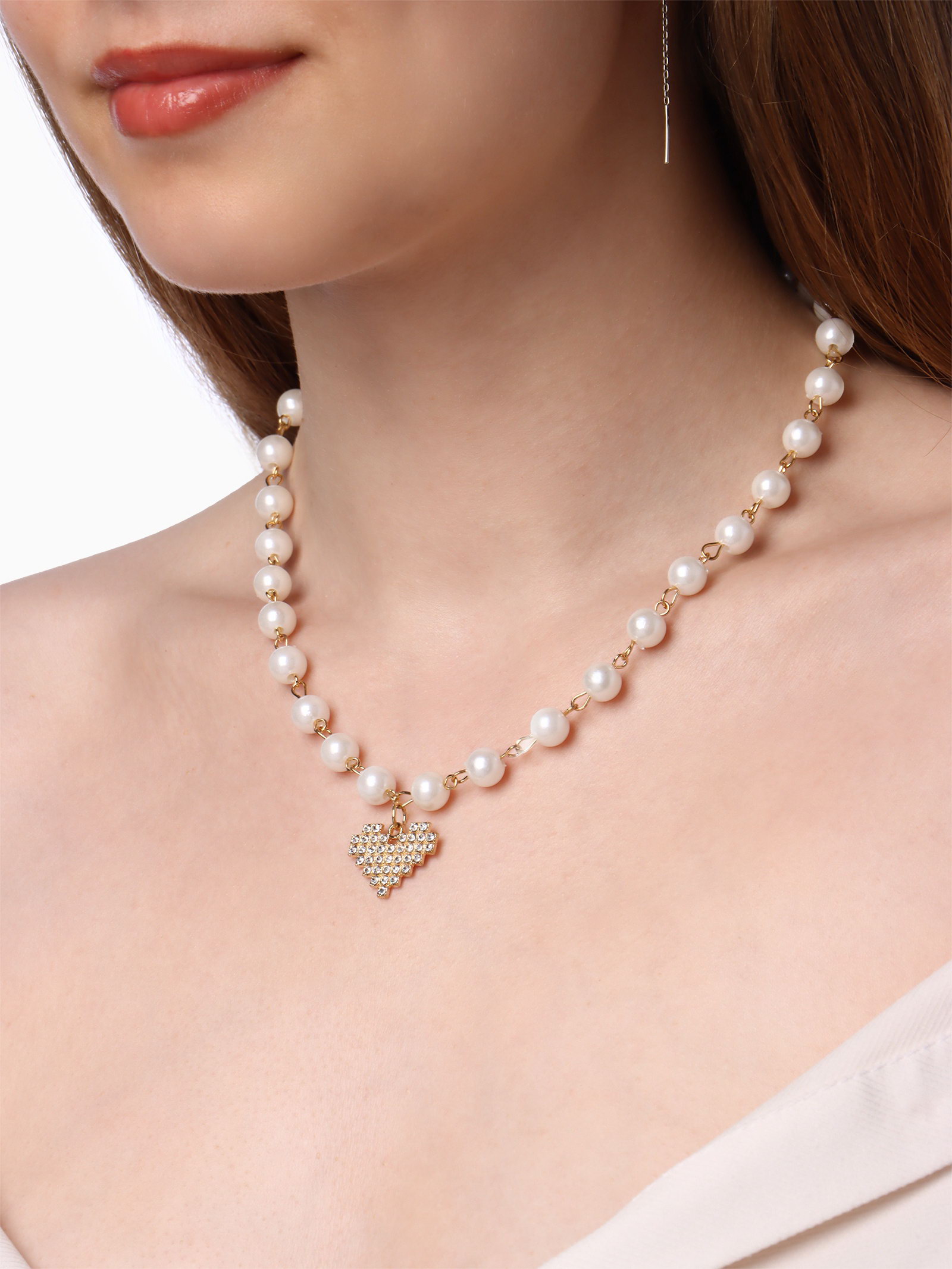 Колье с жемчугом "Сердце" квадратное, шар №6, белое в золоте, L=40 см, 1.2x40x2.5 см., QF, Китай